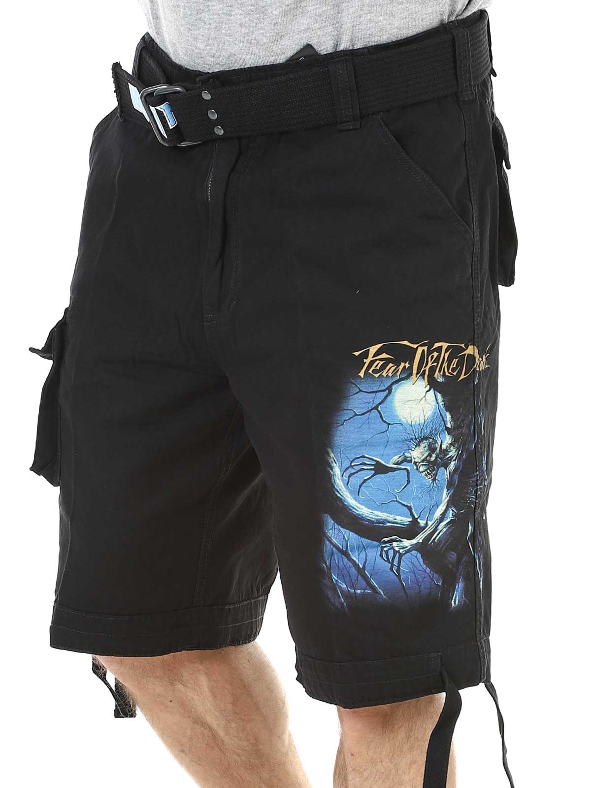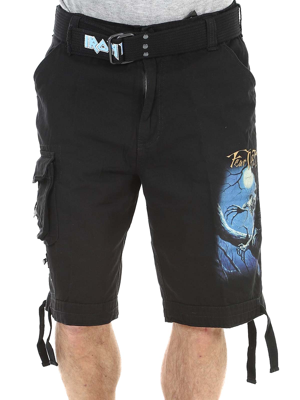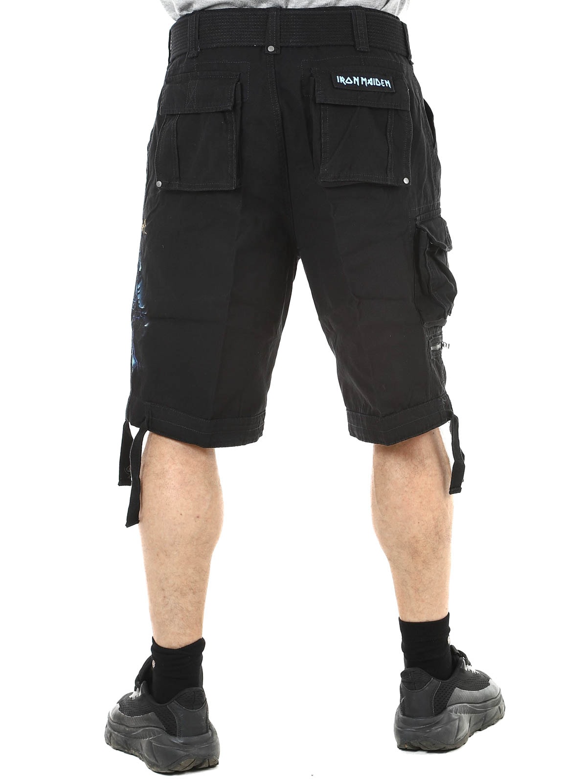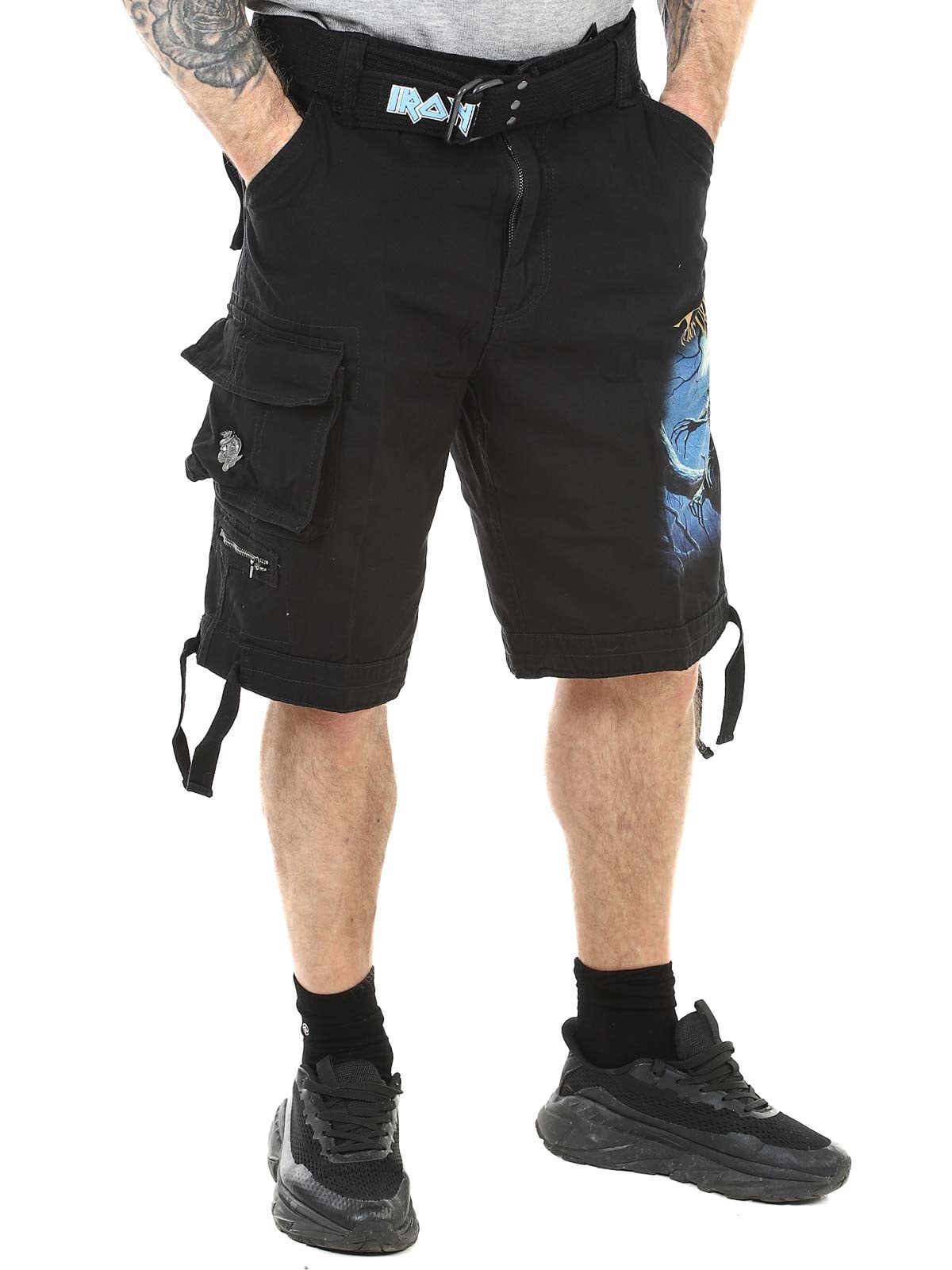 Tøffe cargo-shorts for fans av Iron Maiden og klassisk rockestil. Disse shortsene kombinerer et robust, militærinspirert design med ikoniske detaljer fra albumet Fear of the Dark. De er utstyrt med flere praktiske lommer samt justerbare stoffremmer i midjen og ved benåpningene, noe som gjør det enkelt å tilpasse passformen for optimal komfort.
