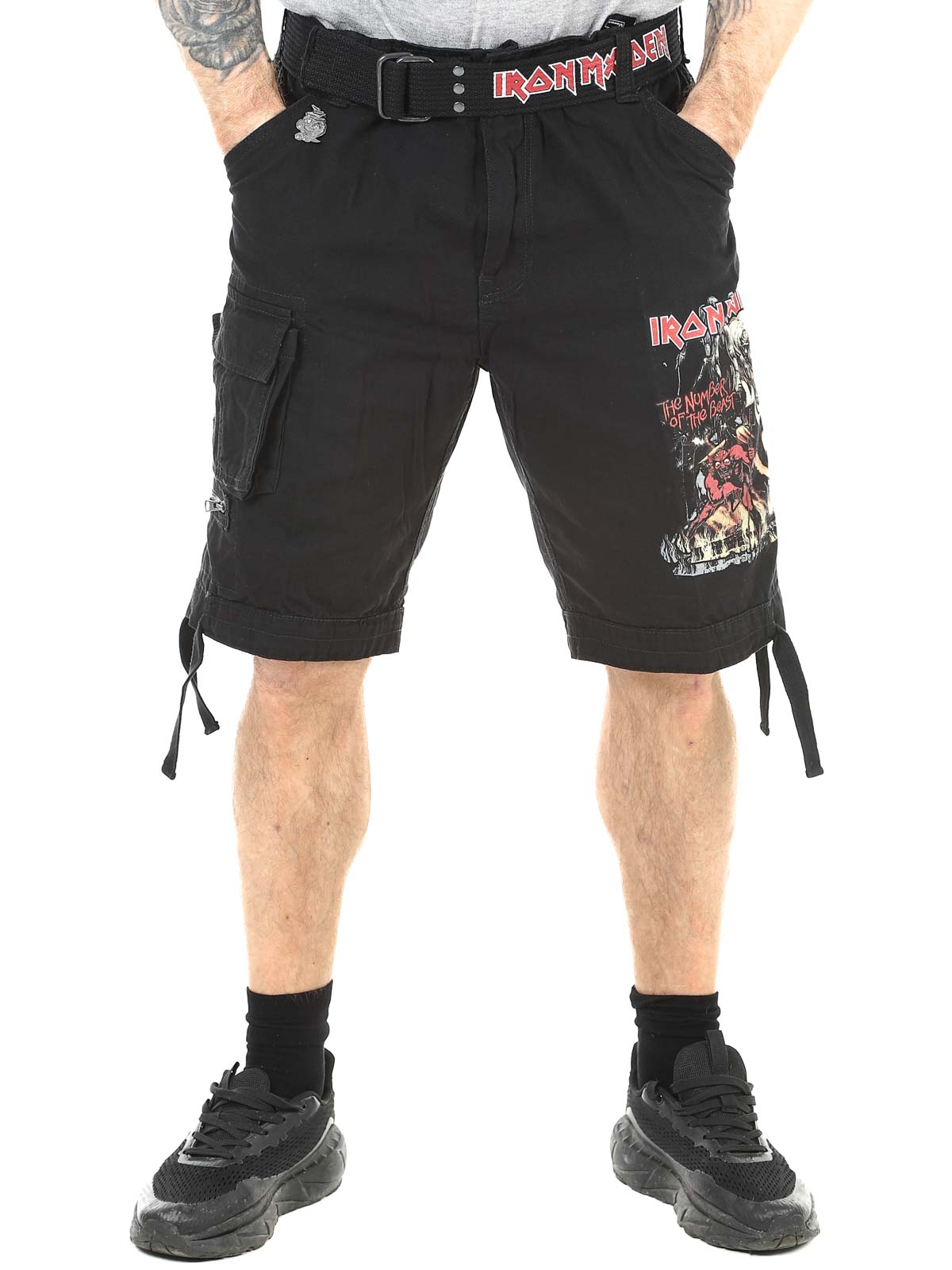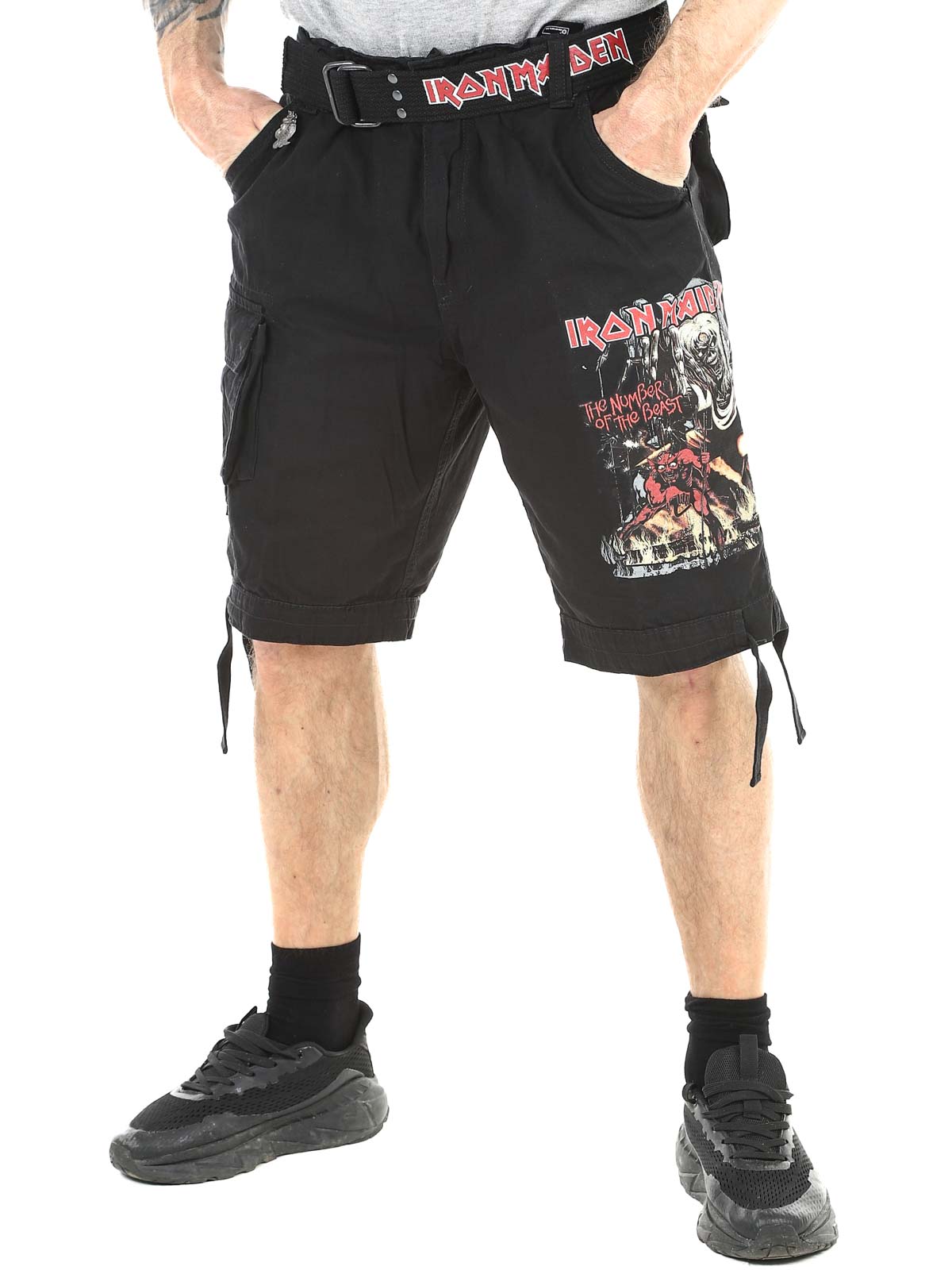 Tøffe cargo-shorts for fans av Iron Maiden og klassisk rockestil. Disse shortsene kombinerer et robust, militærinspirert design med ikoniske detaljer fra albumet "The Number Of The Beast". De er utstyrt med flere praktiske lommer samt justerbare stoffremmer i midjen og ved benåpningene, noe som gjør det enkelt å tilpasse passformen for optimal komfort.