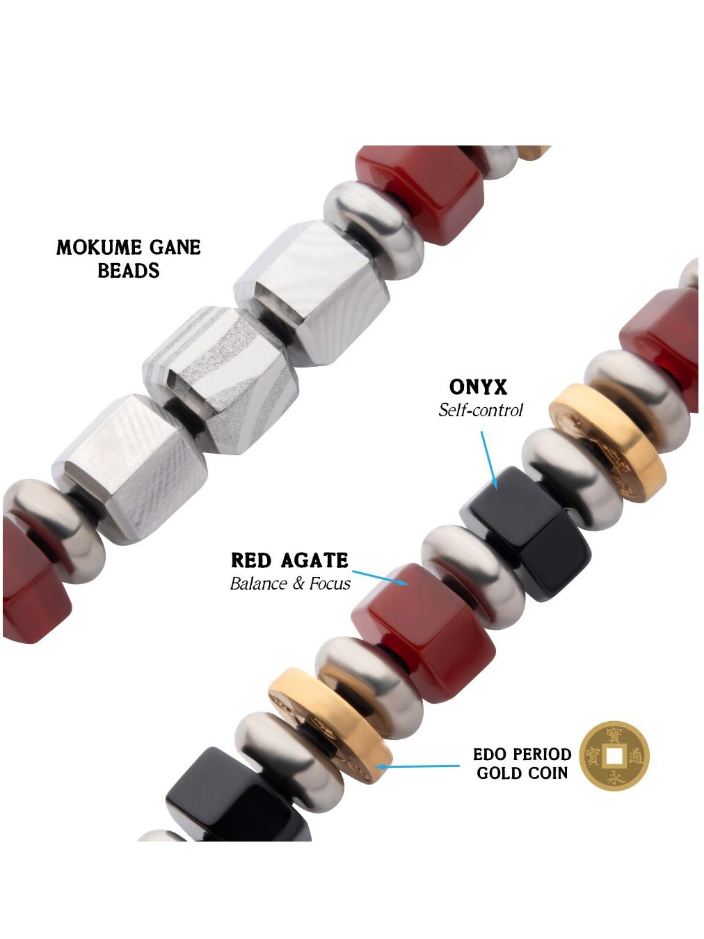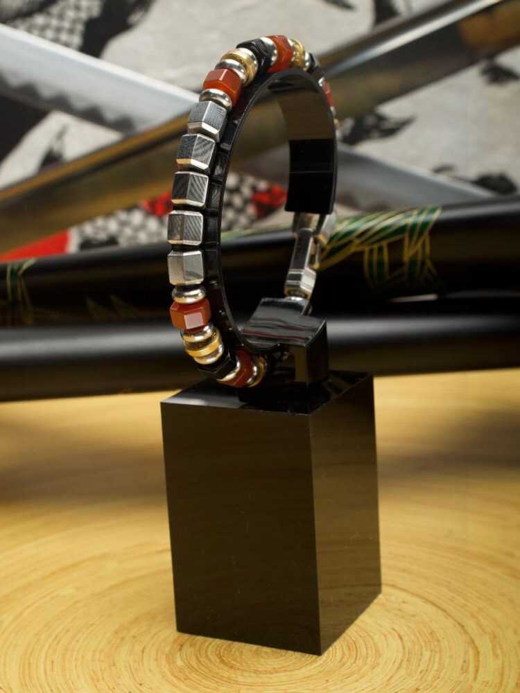 Et eksklusivt armbånd inspirert av den japanske Bushido-tradisjonen. Armbåndet kombinerer den tradisjonelle teknikken Mokume Gane – en unik metallkunst som skaper mønstre som minner om treverk – med vakre edelstener.