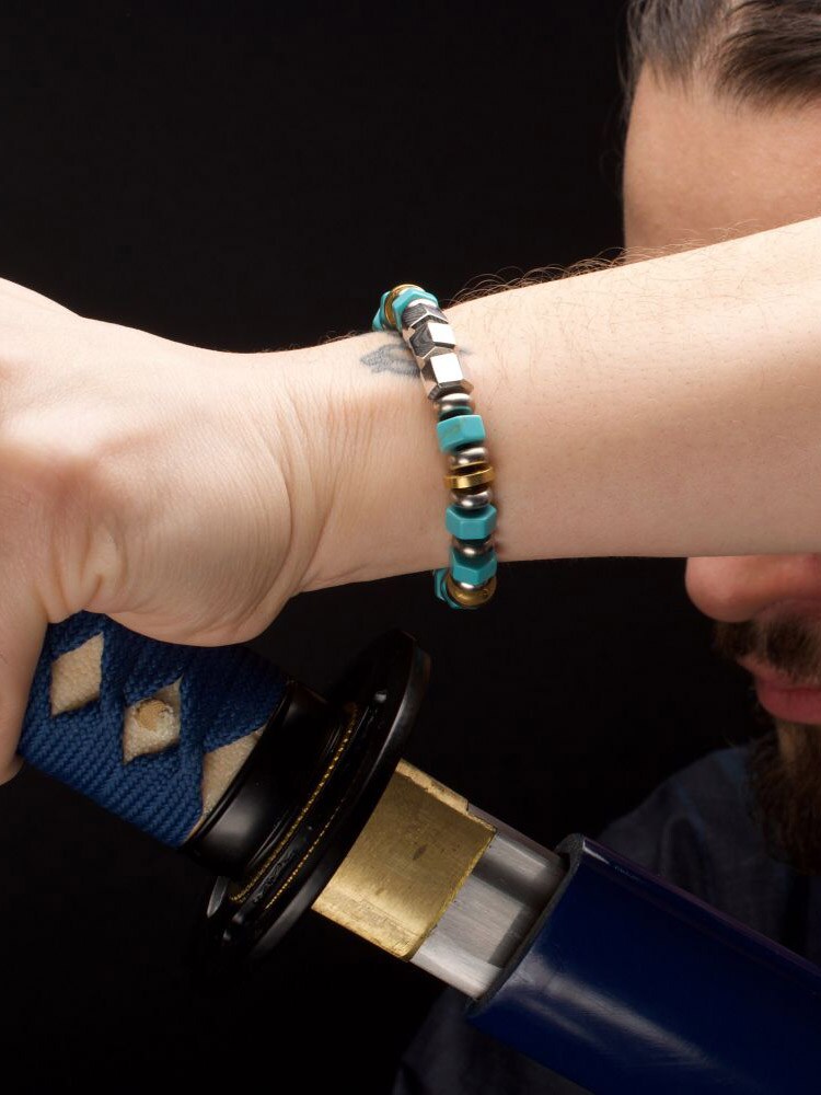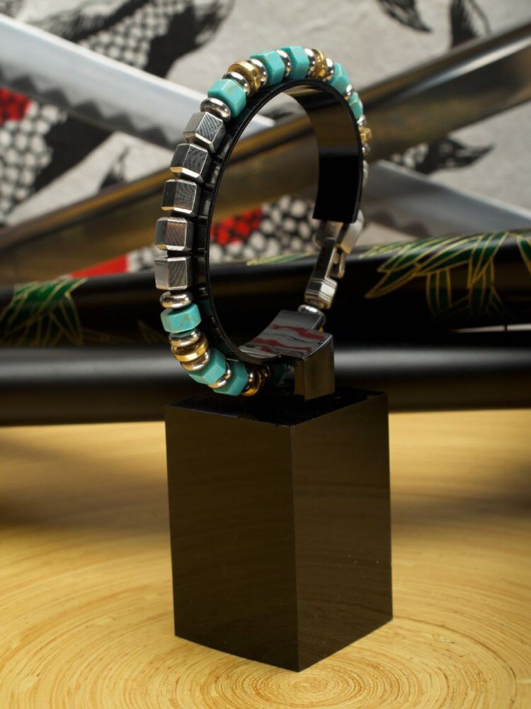 Et eksklusivt armbånd inspirert av den japanske Bushido-tradisjonen. Armbåndet kombinerer den tradisjonelle teknikken Mokume Gane – en unik metallkunst som skaper mønstre som minner om treverk – med vakre edelstener.