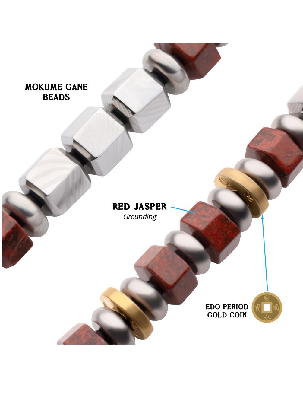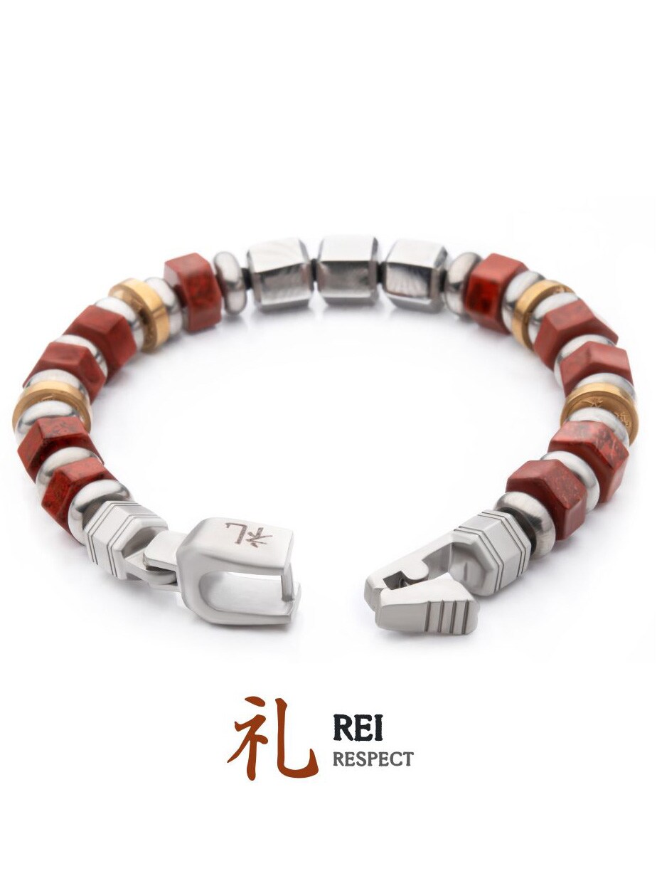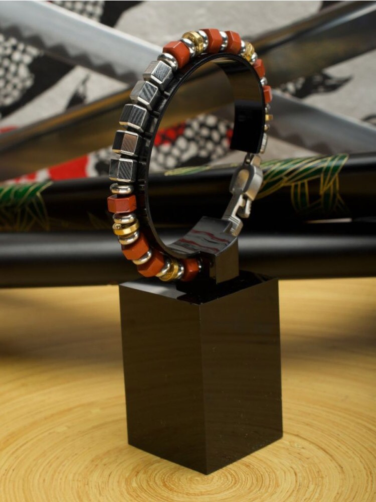 Et eksklusivt armbånd inspirert av den japanske Bushido-tradisjonen. Armbåndet kombinerer den tradisjonelle teknikken Mokume Gane – en unik metallkunst som skaper mønstre som minner om treverk – med vakre edelstener.