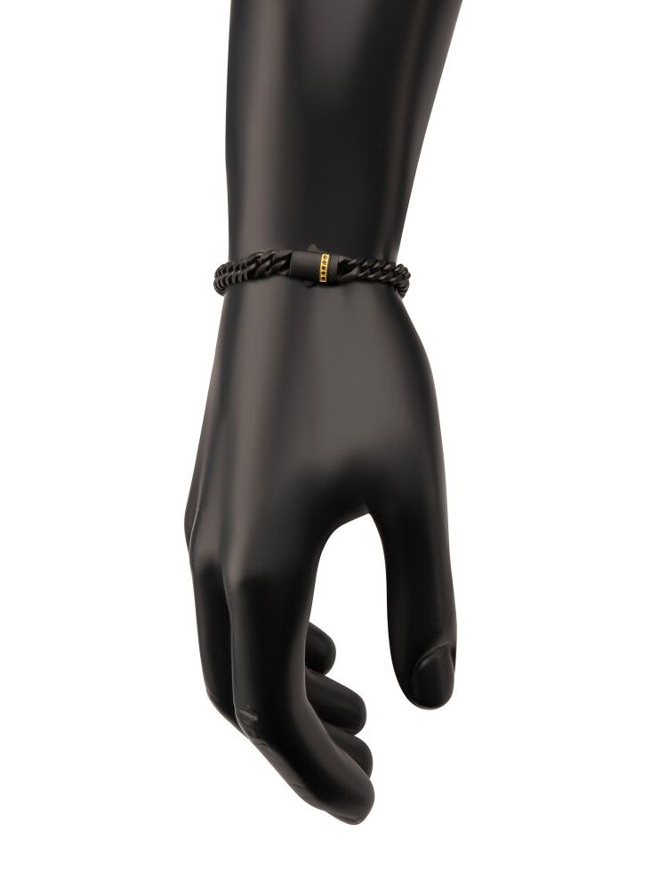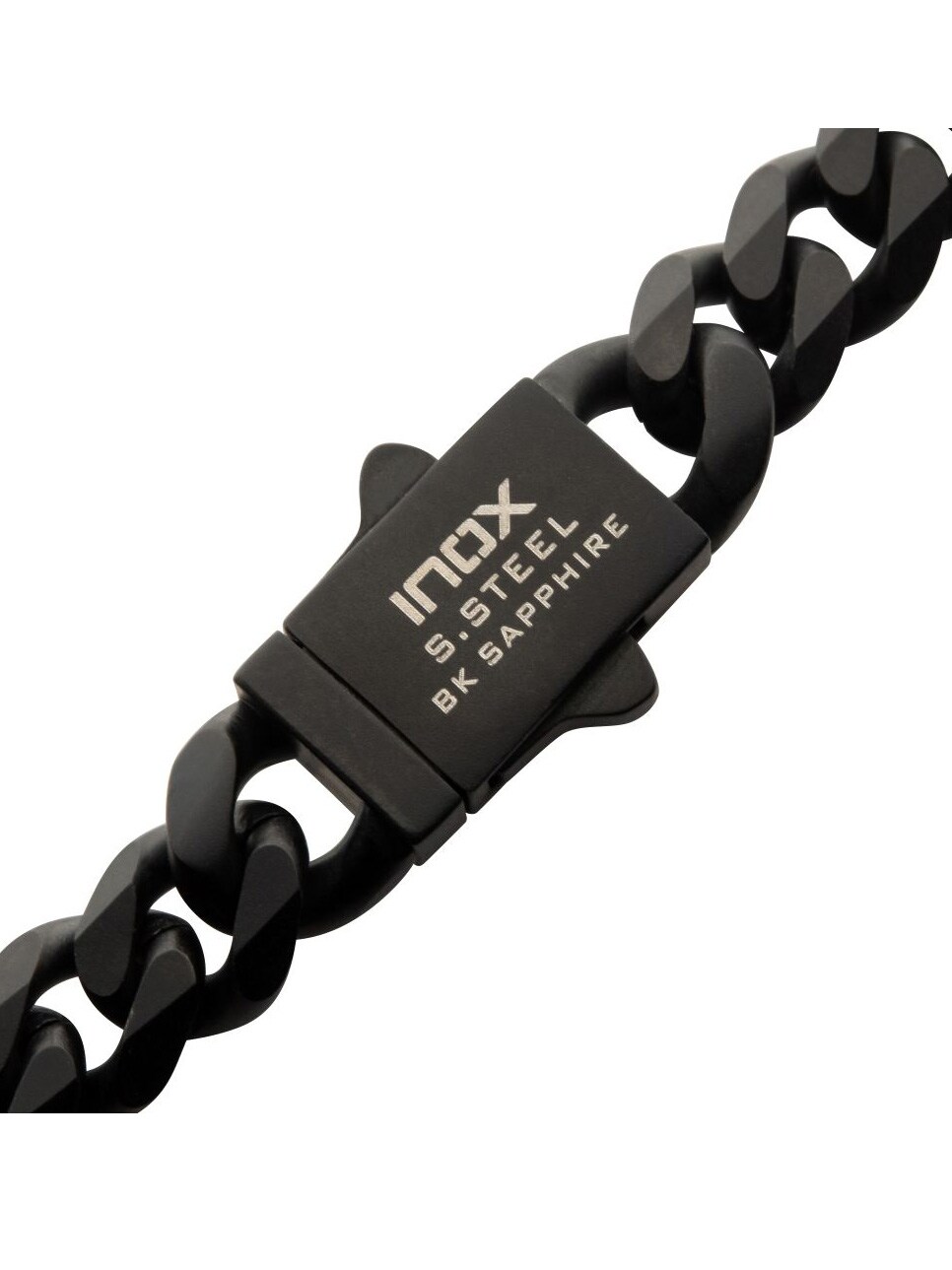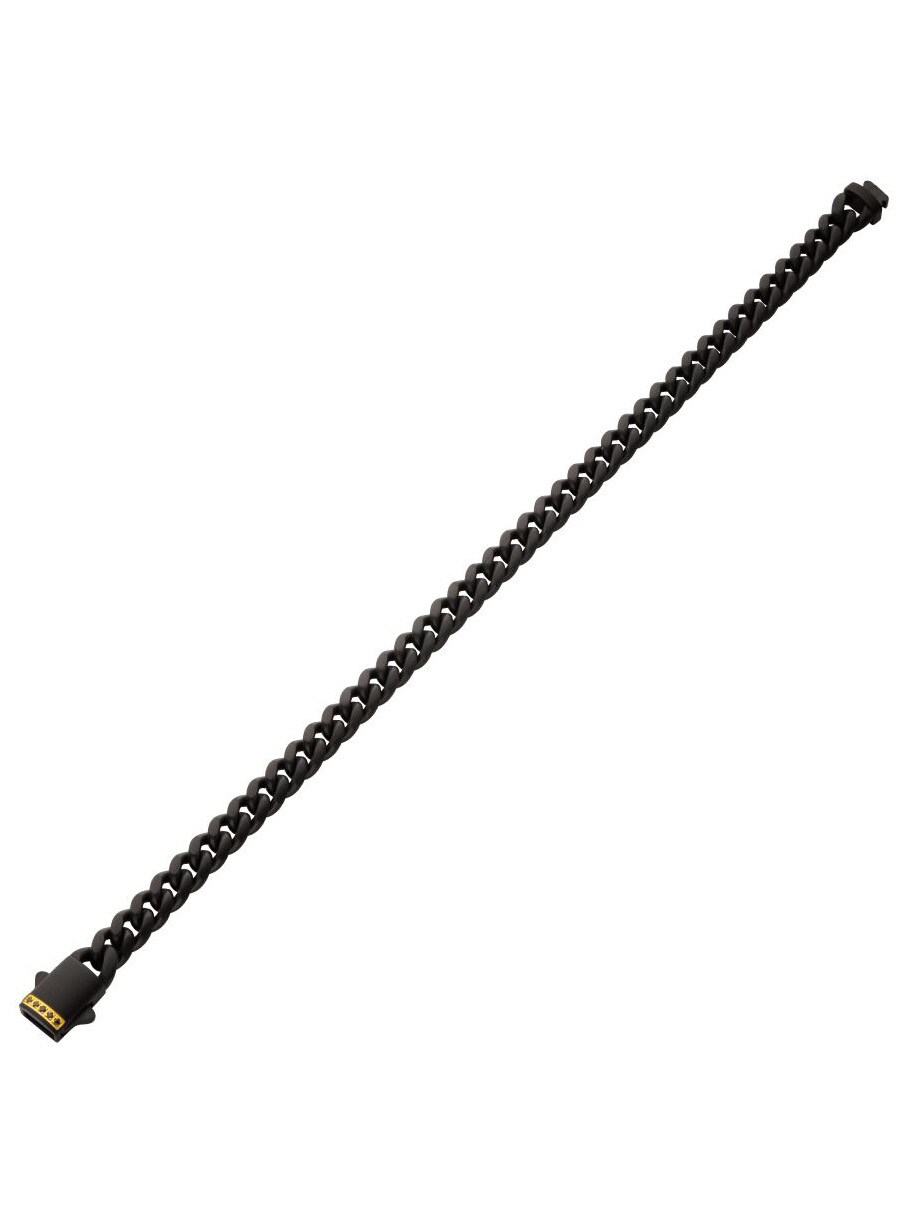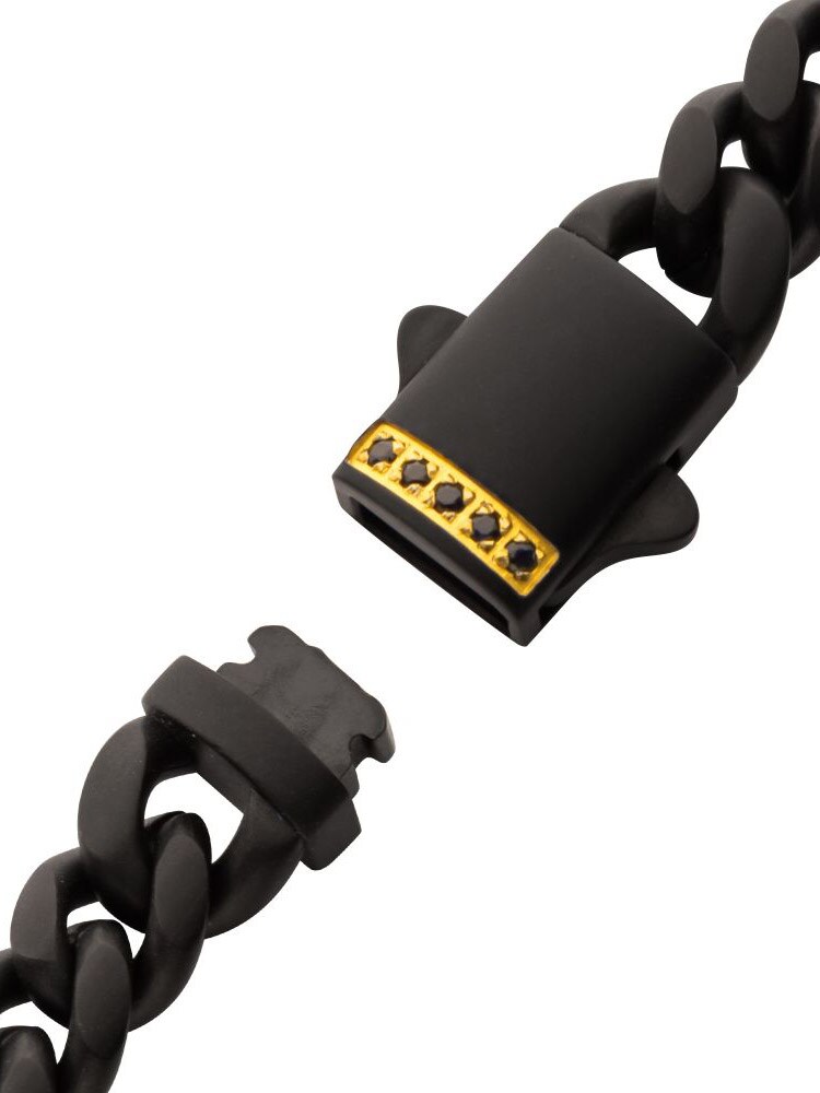 Kjedearmbånd i rustfritt stål med svart IP-belegg, designet med safirsteiner ved låsen og har en matt finish.