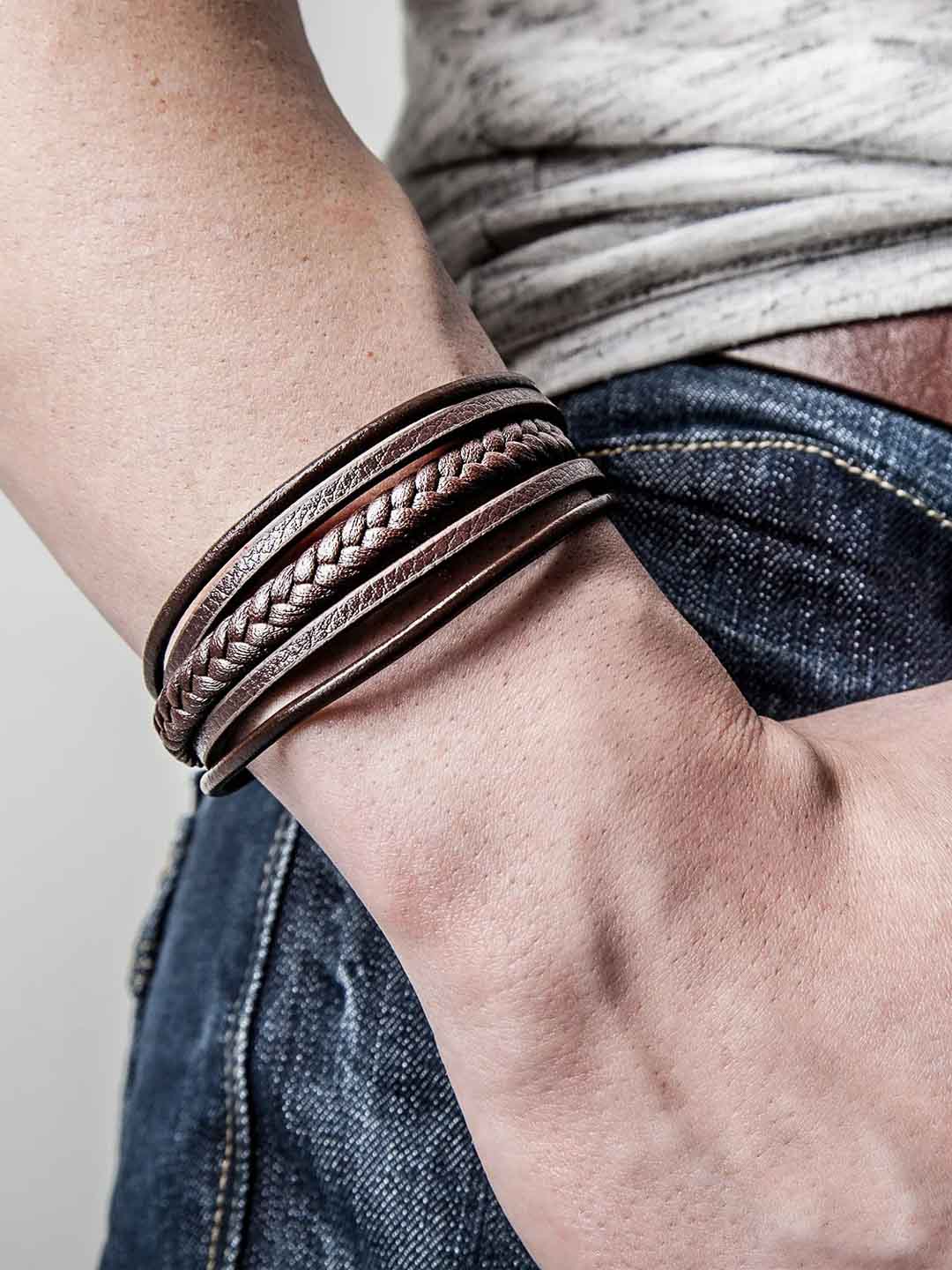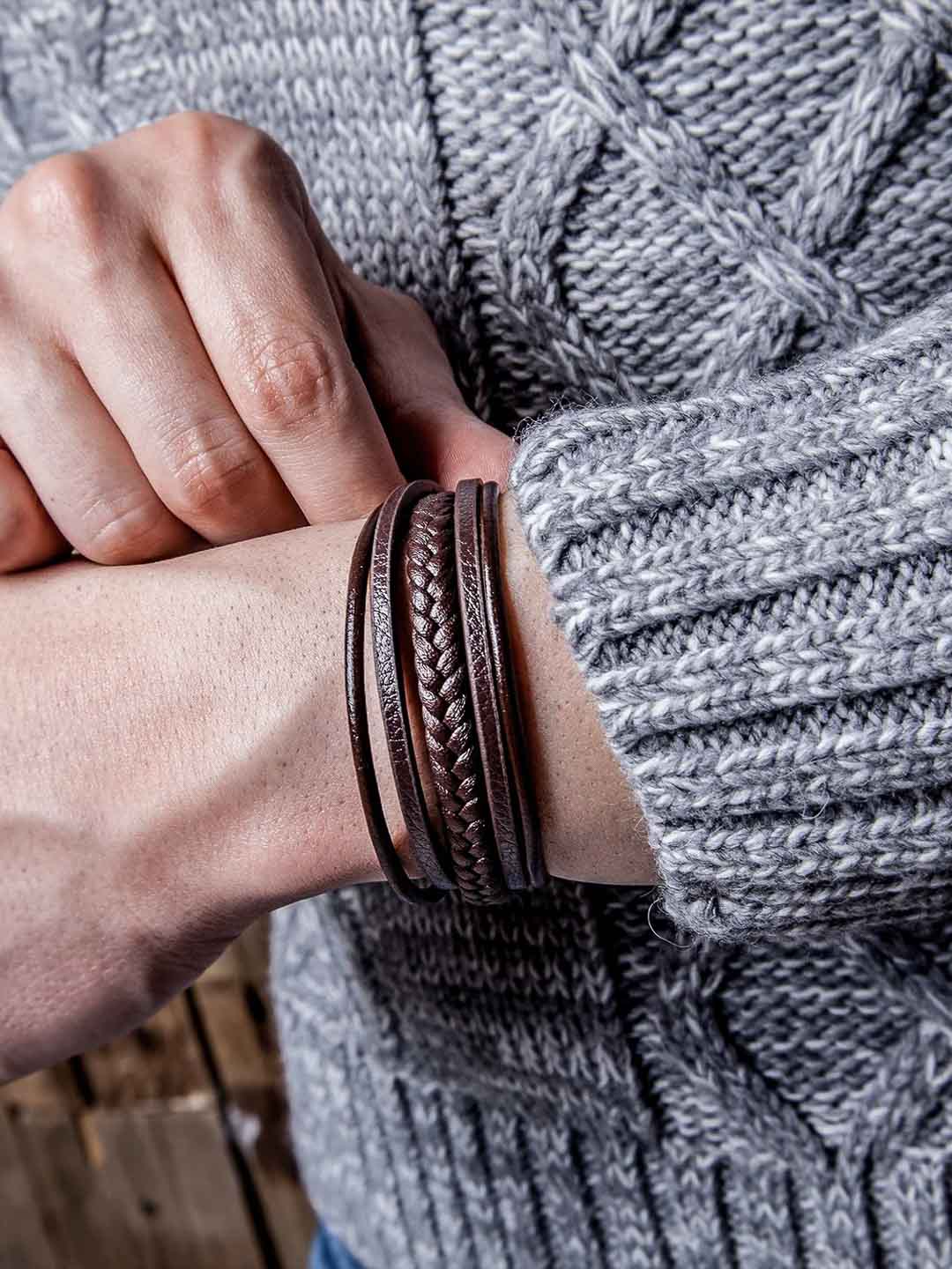 Et stilrent armbånd i ekte, flettet lær som gir et moderne uttrykk. Den polerte magnetlåsen i rustfritt stål gjør det enkelt å ta av og på, samtidig som det sitter sikkert hele dagen. Armbåndet leveres med en ekstra forlengerlenke for justerbar lengde – perfekt hvis du ønsker litt mer rom eller er usikker på størrelsen. Et tidløst tilbehør som passer til alle antrekk.