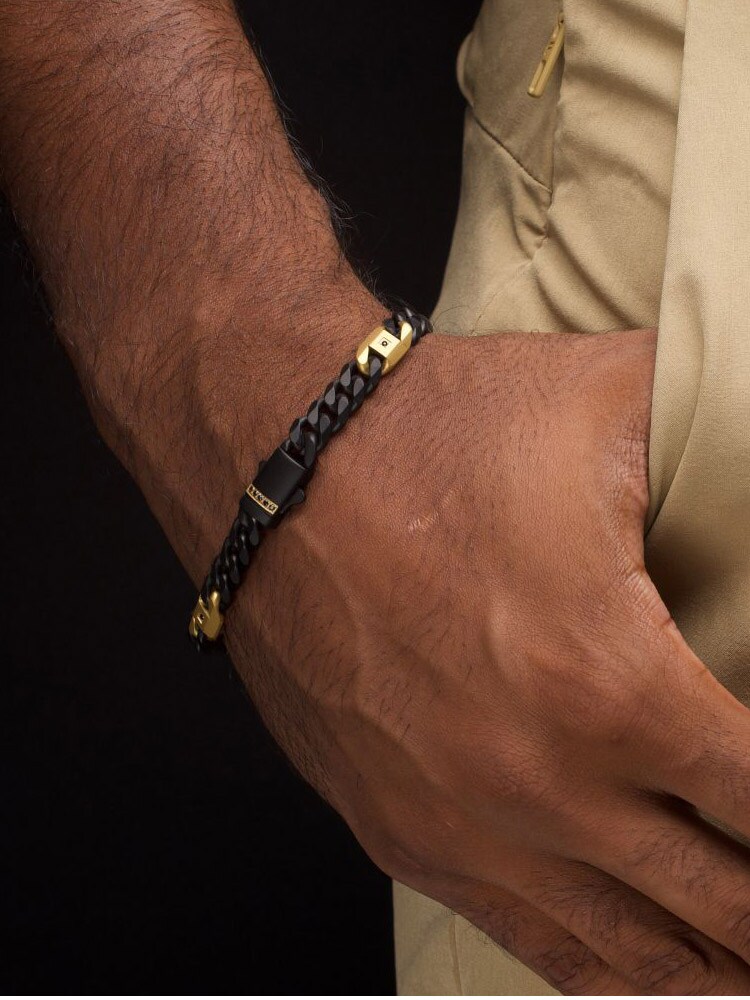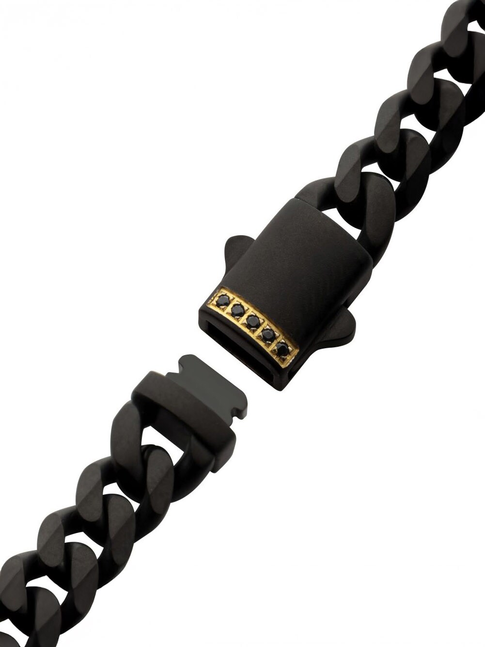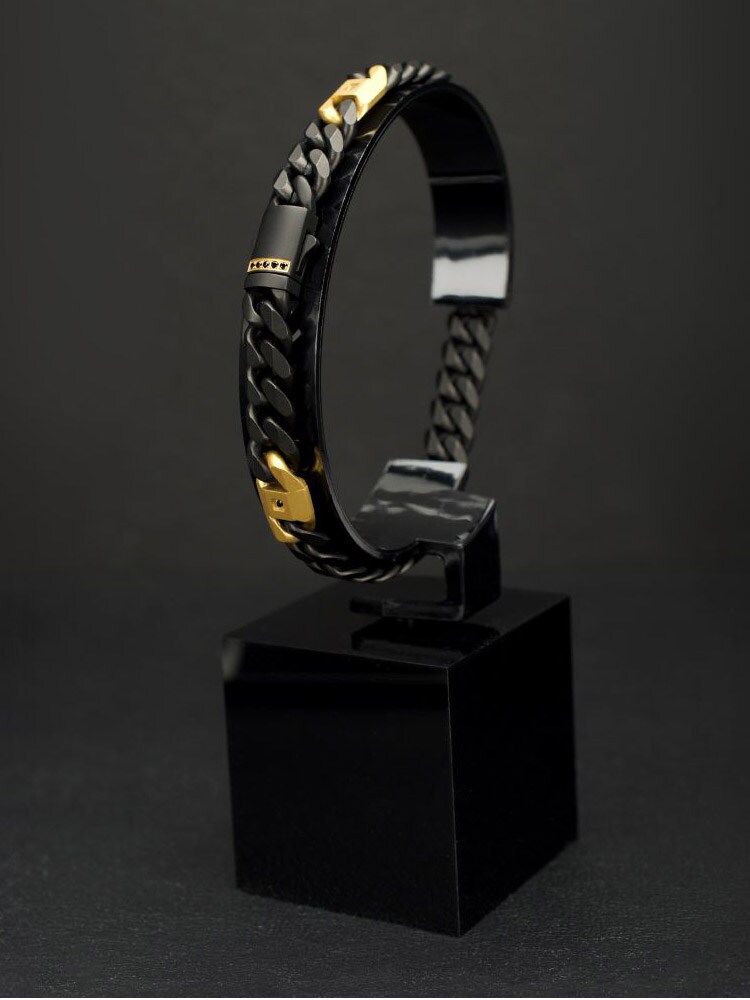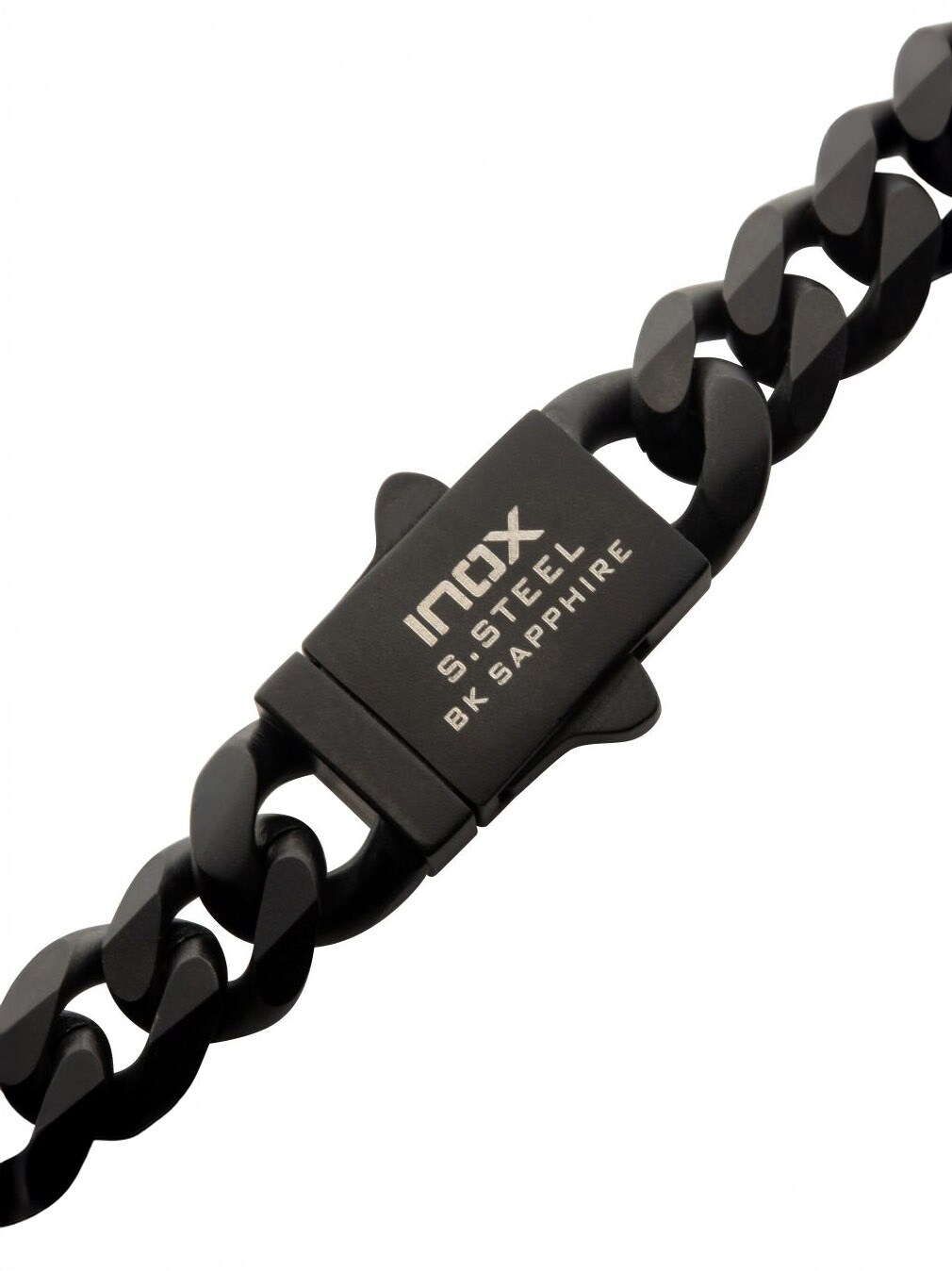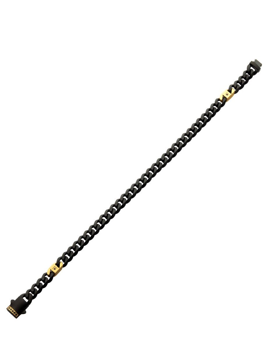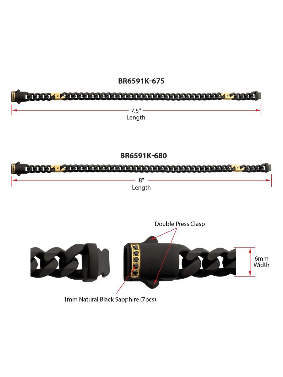 Kjedearmbånd i rustfritt stål med svart IP-belegg og gulldetaljer. Designet med en safirsten ved låsen og matt finish.
