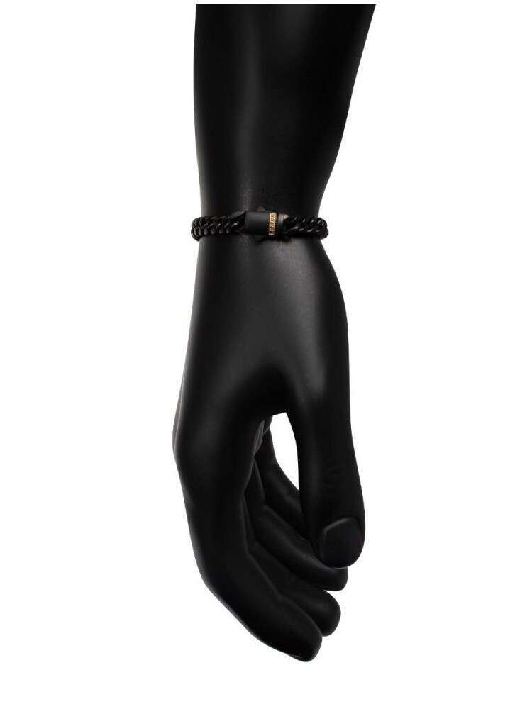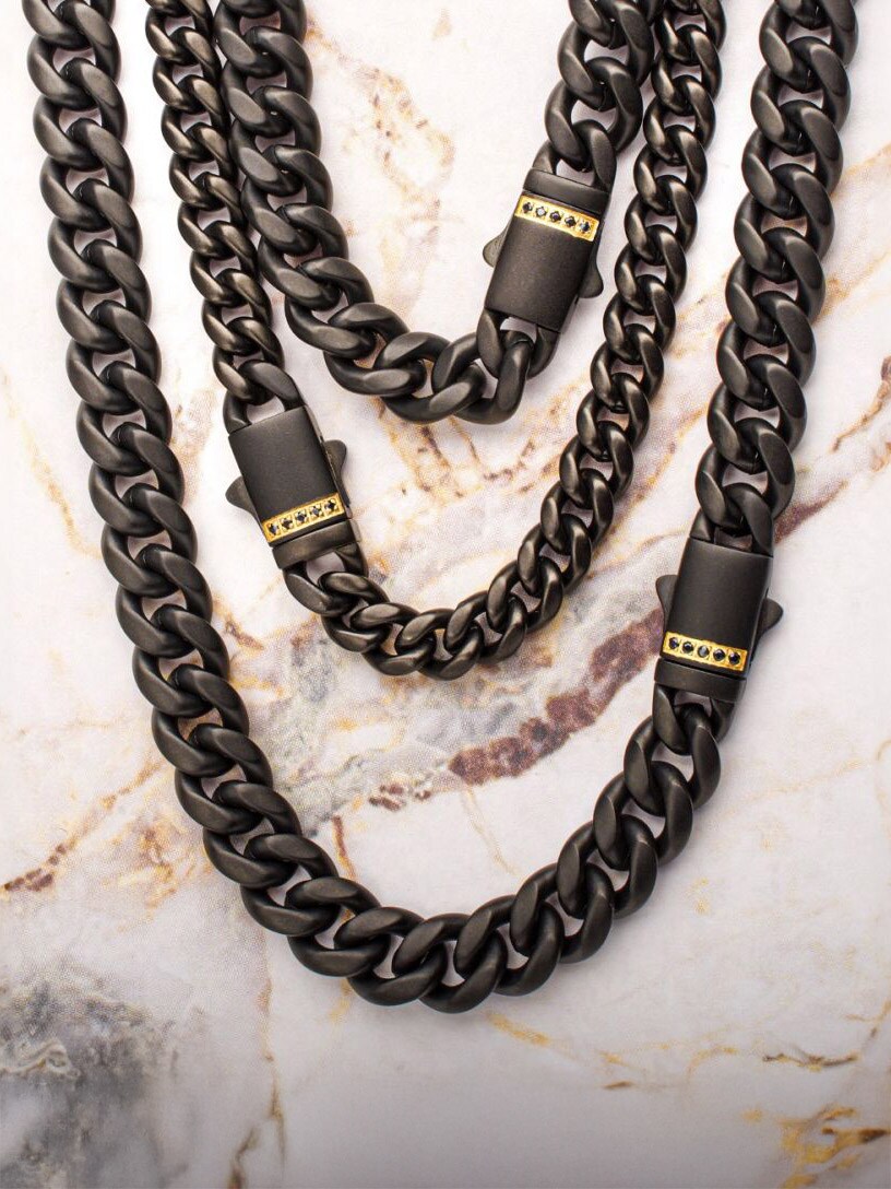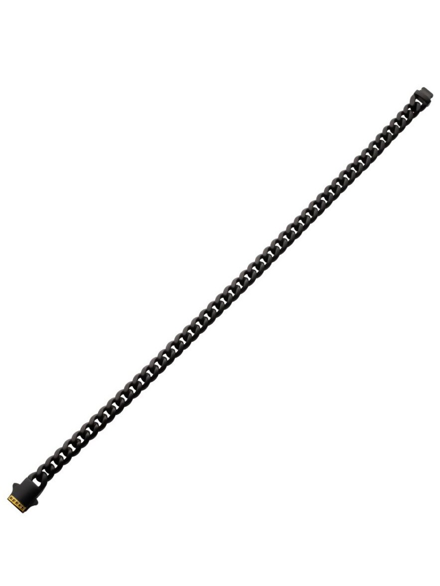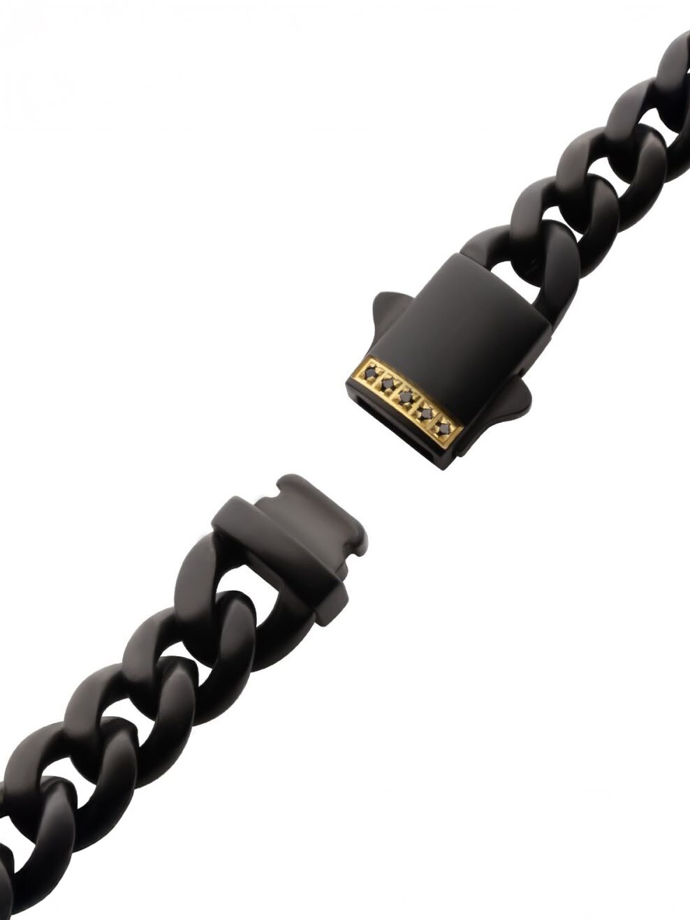 Kjedearmbånd i rustfritt stål med svart IP-belegg, designet med safirsteiner ved låsen og har en matt finish.