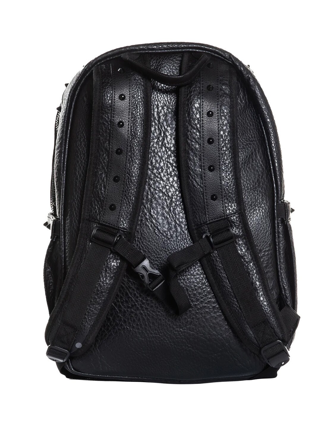 Dette er en tøff og stilren ryggsekk for deg som vil skille deg ut. Designet forsterkes av koniske nagler som gir et tydelig punk- og rockepreg. Ryggsekken har en robust glidelås i svart og er utstyrt med tre innerlommer og to ytterlommer. Den har polstrede skulderstropper som gjør den komfortabel å bære.