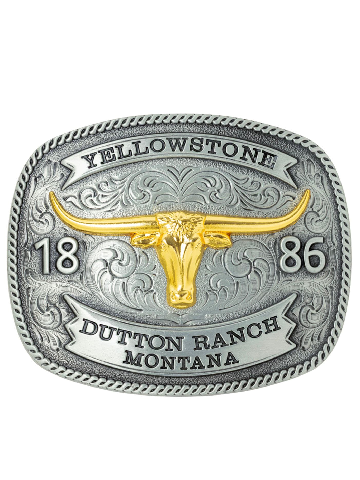 Gi beltet ditt en autentisk western-look med dette eksklusive spennet inspirert av Yellowstone-verdenen. Spennet prydes av en forhøyet gullbelagt longhorn-applikasjon mot en mørk bakgrunn, noe som gir en sterk kobling til klassisk cowboy-stil.