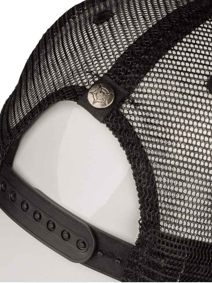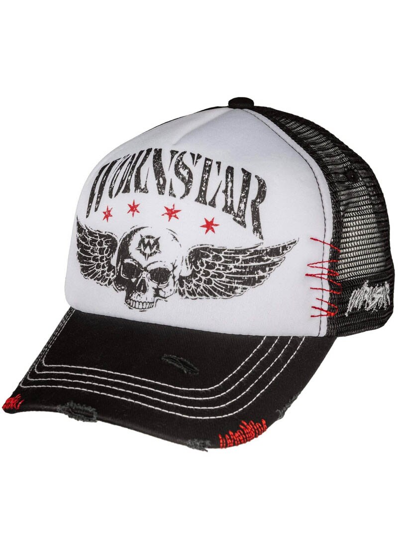 Wornstar Ascension Trucker Keps i svart og hvitt med hodeskallemotiv og slitte detaljer er et must for rockeentusiasten.