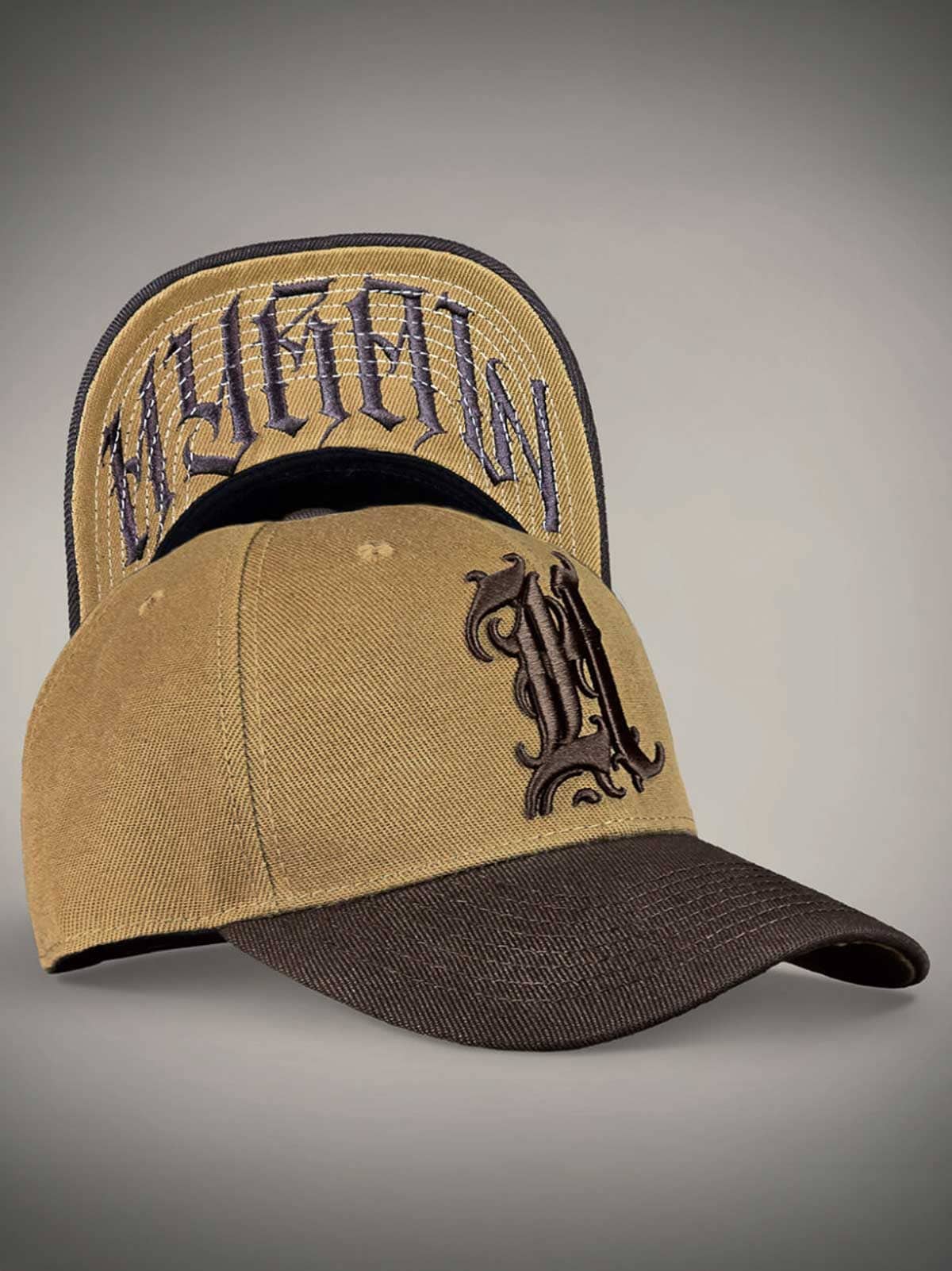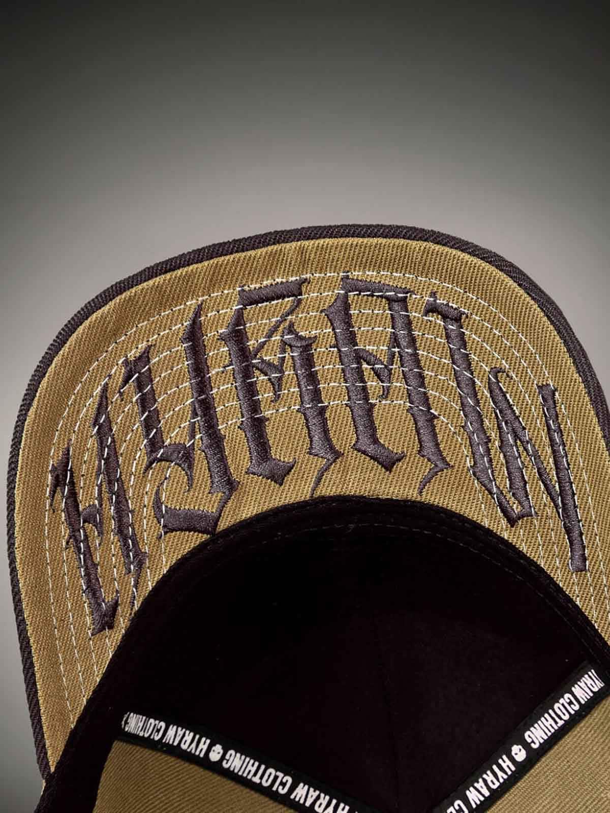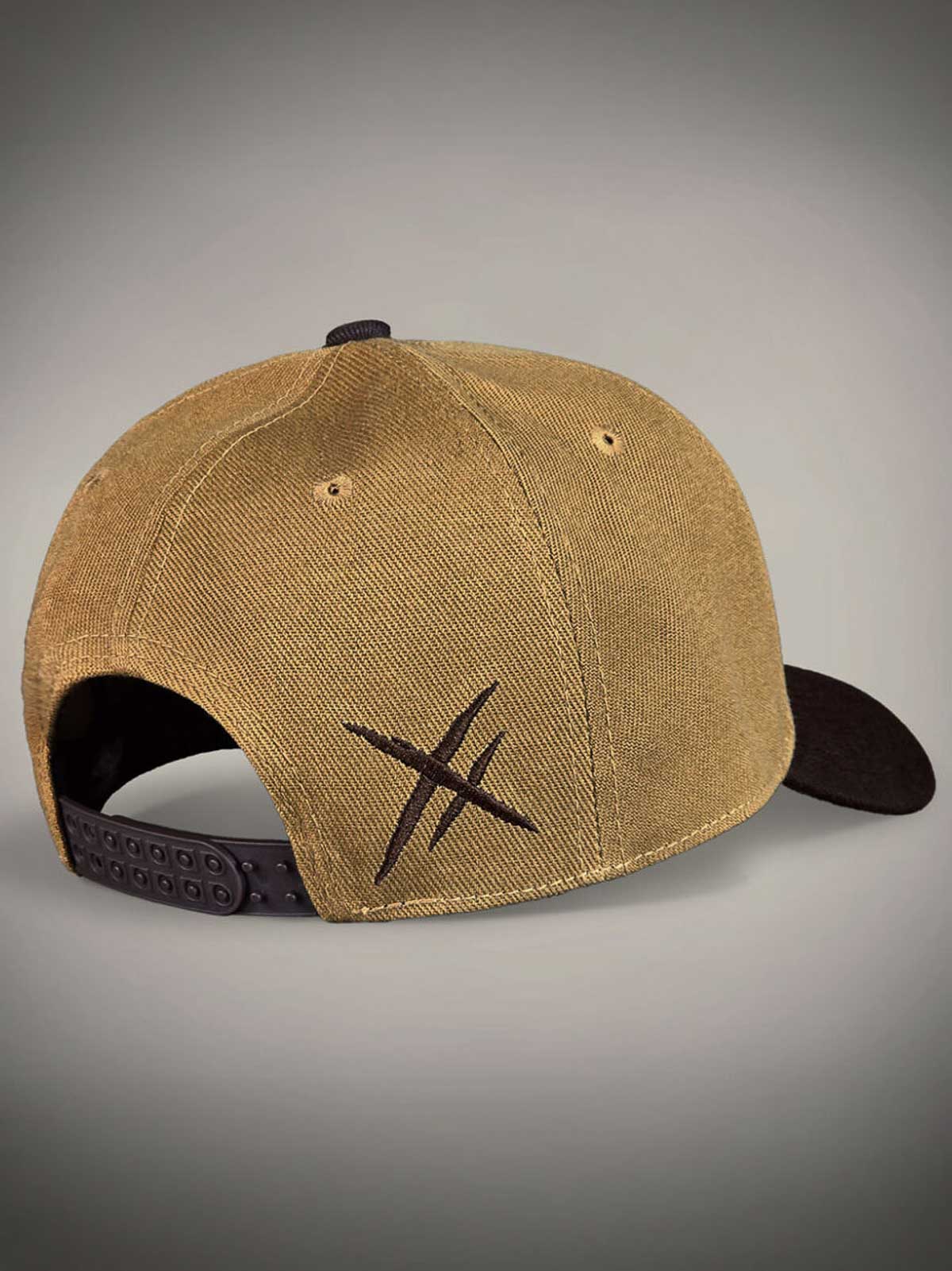 Camel-farget caps med buet brun skjerm, dekorert med brodert logo foran. Undersiden av skjermen prydes av en brun, skråddet logo, og capsen har justerbar snapback for en komfortabel passform.