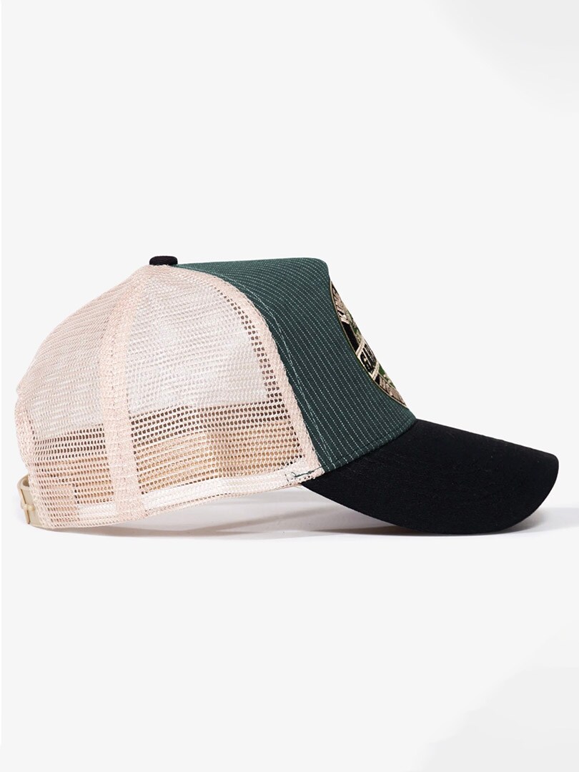En trucker-caps med eksklusivt frontbroderi i trendy vintage-stil. Meshpartiet bak sørger for god ventilasjon og dermed optimal bærekomfort. Den har buet brem og snapback-lukking.