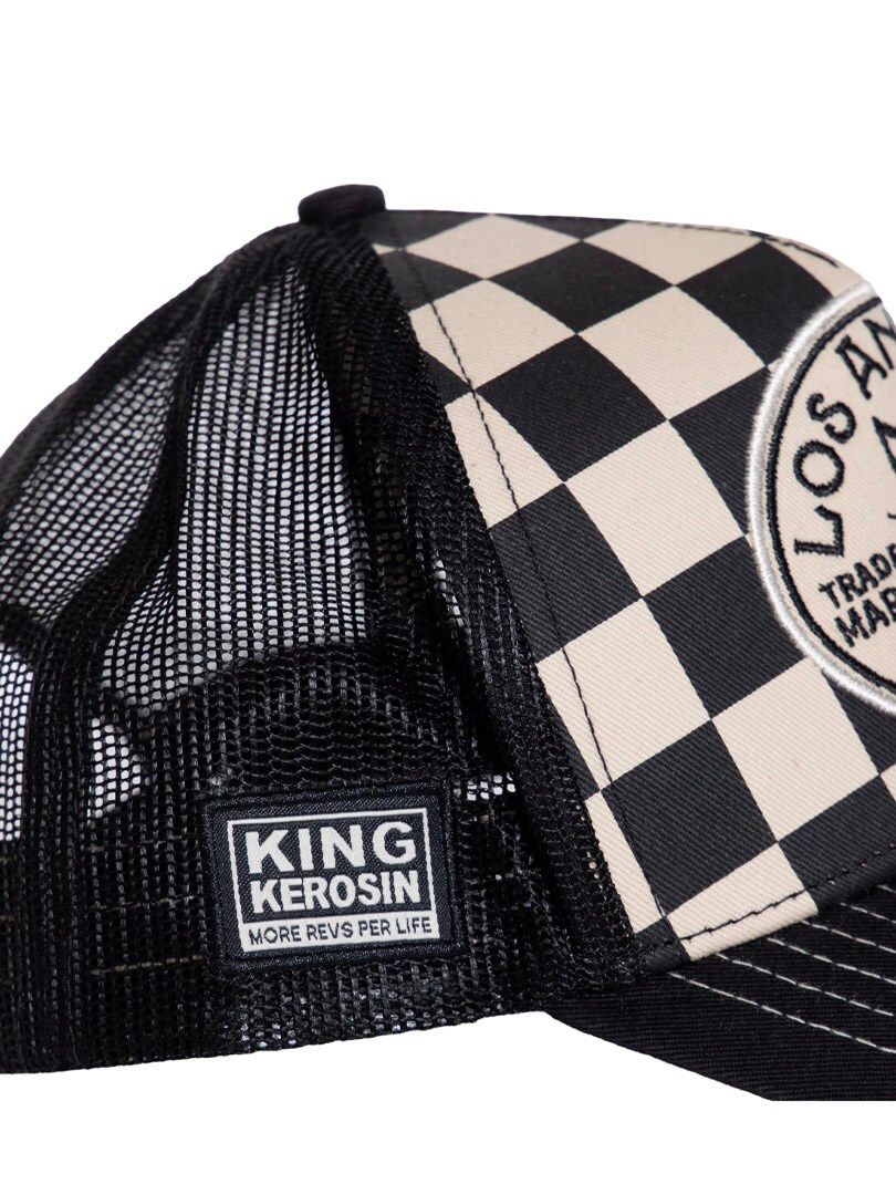 Det iøynefallende rutemønsteret møter en brodert front med en frekk katt og "Los Angeles"-patch. Den luftige mesh-baksiden holder deg sval selv på varme dager. Den justerbare snapbacken gir alltid perfekt passform, enten du er i garasjen eller henger med gjengen.
