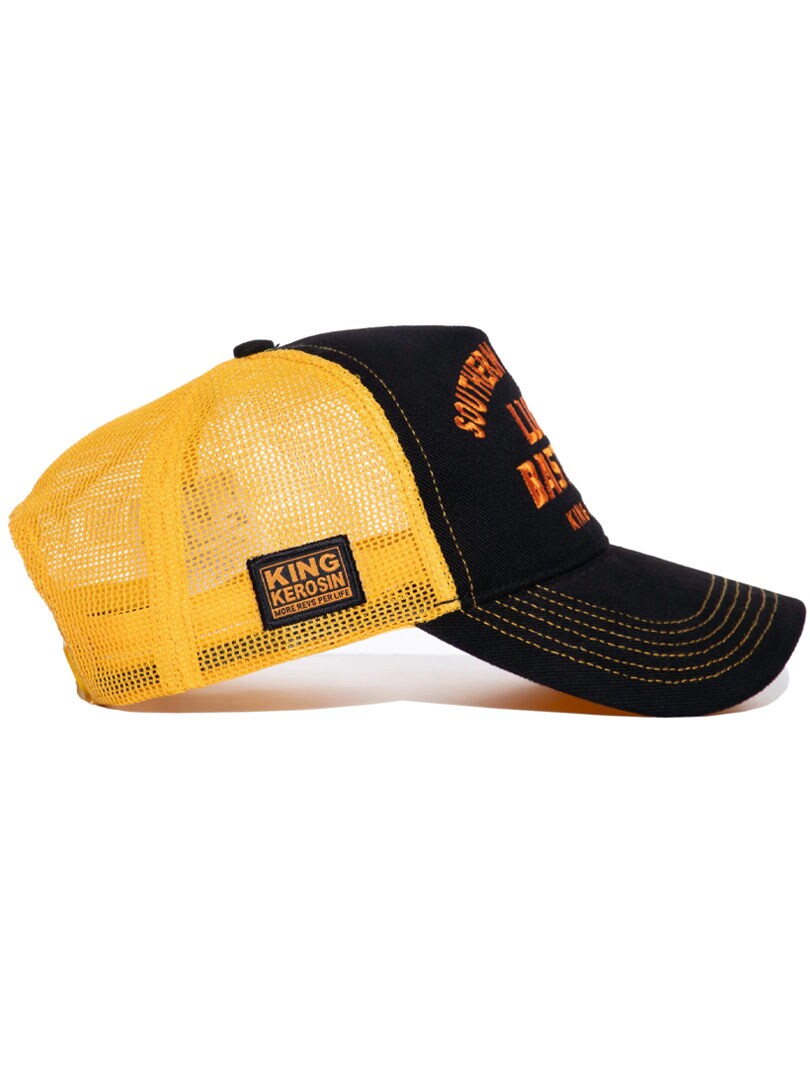 Svart caps designet med oransje mesh bak og spesialtilpasset trykk foran. Den har buet brem og snapback-lukking. Perfekt for solrike dager, roadtrips eller rett og slett som et statement-plagg i hverdagen.