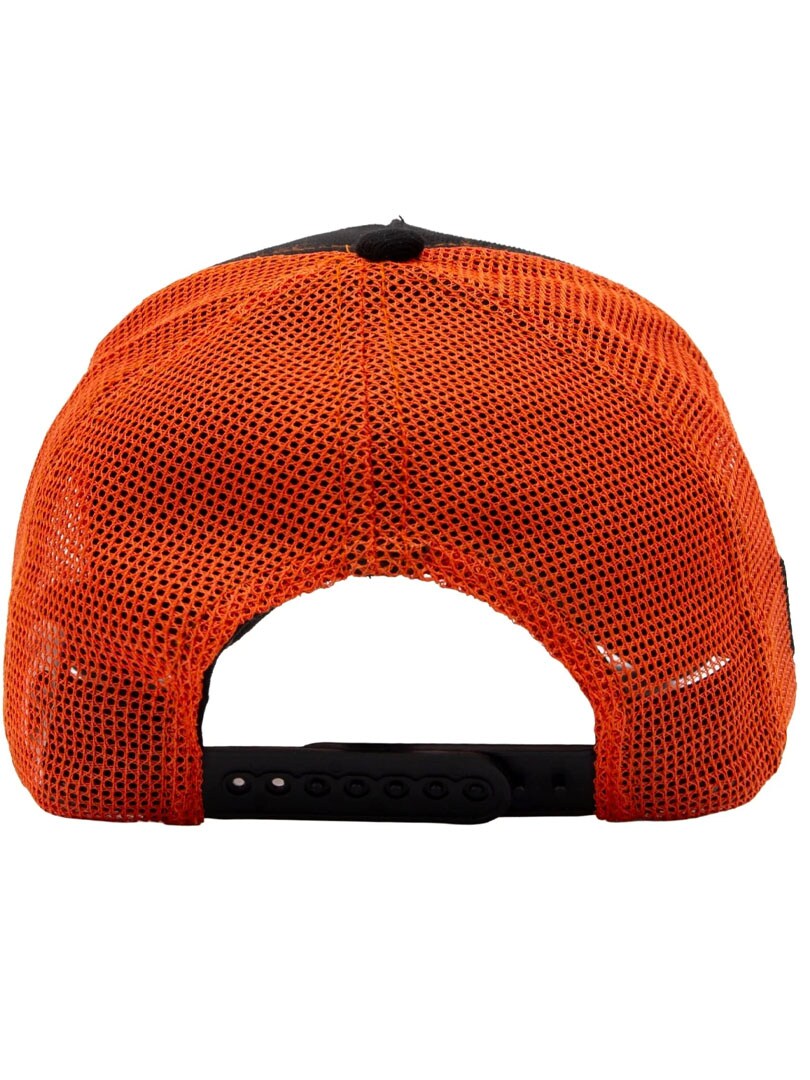 Kjepphøy caps i svart og oransje med kraftig kontrast som fanger blikket og et uttrykksfullt design som setter tonen umiddelbart. Capsen har meshpanel bak for behagelig ventilasjon, markerte kontrastsømmer og justerbar snapback som gir komfortabel passform hele dagen.