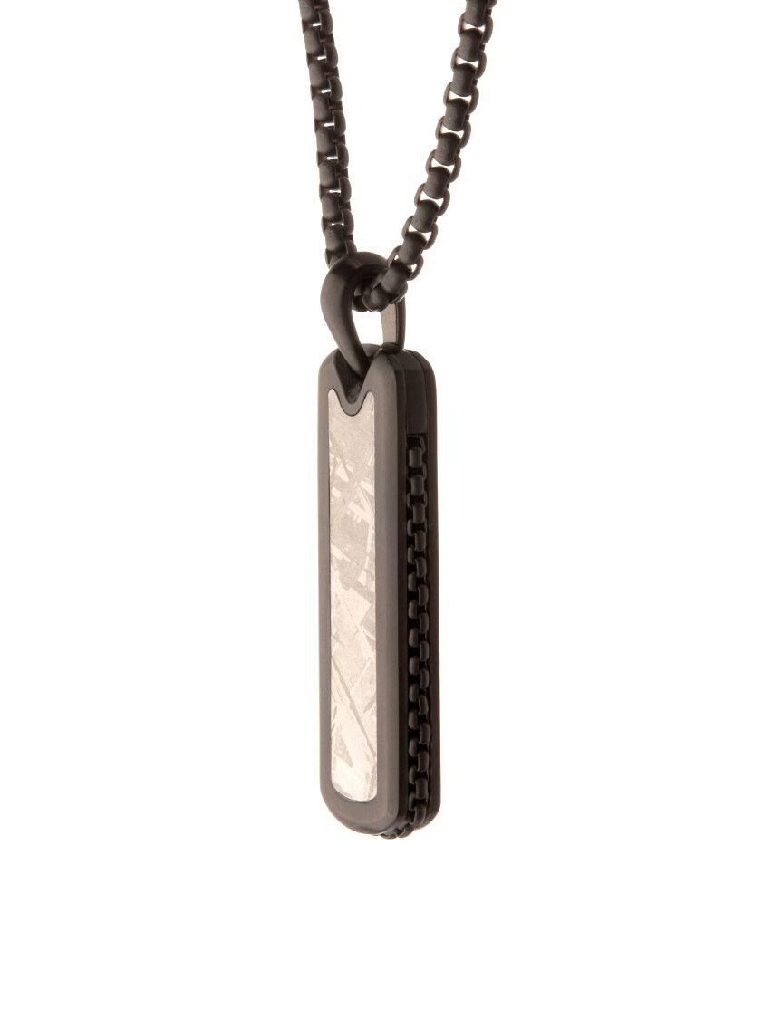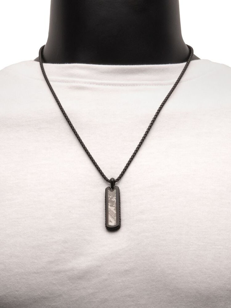 Halskjede med svart IP-belegg og anheng med meteorittinnlegg. Laget av rustfritt stål.