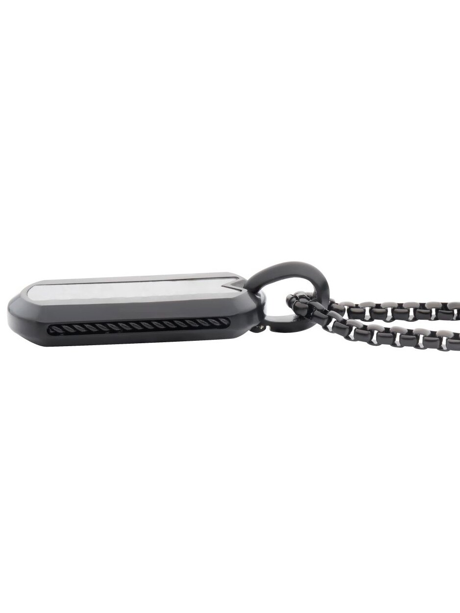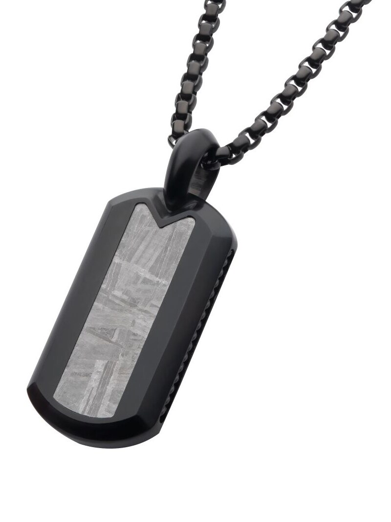 Halskjede med svart IP-belegg og anheng med meteorittinnlegg. Laget av rustfritt stål.