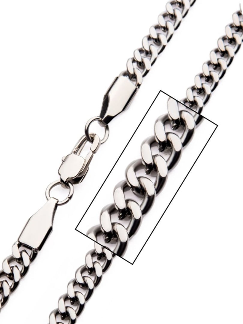 Kjede i rustfritt stål med diamantfaset design som gir ekstra glans. Robust og slitesterkt, perfekt til hverdagsbruk eller spesielle anledninger.