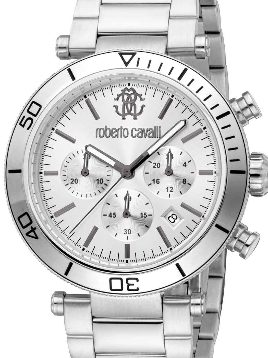 Elegant klokke i rustfritt stål. Kronograf med tre underdisplayer for 60-sekunders, 60-minutters og 24-timers visning, samt datovindu. Vannbestandig opp til 100 meter. Tidløs design for både hverdag og fest!