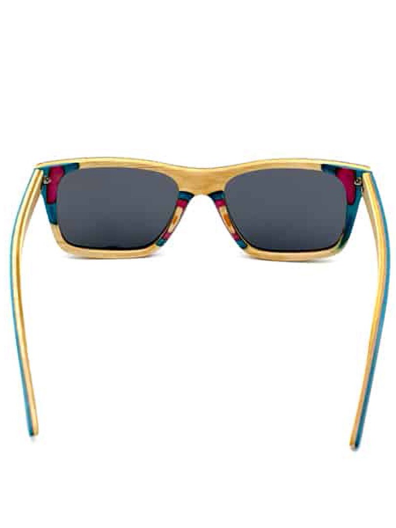 Unike solbriller i klassisk wayfarer-modell med heltreramme i laminert skateboardtre. Utstyrt med UV400-polariserte linser som beskytter mot solen og reduserer forstyrrende refleksjoner. Leveres med pusseklut og praktisk oppbevaringspose.