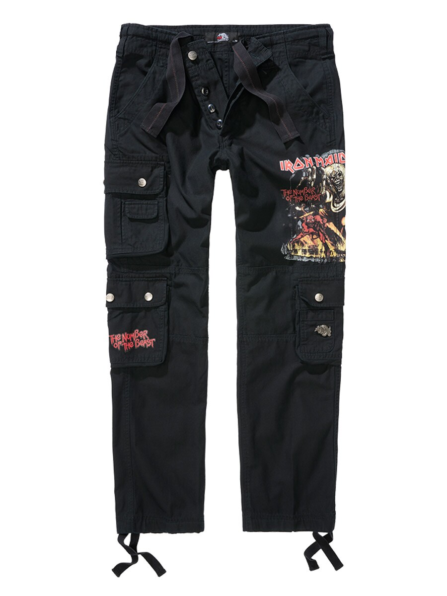 Svarte bukser med slim fit-passform og slitesterkt, hudvennlig bomullsmateriale som gir både komfort og holdbarhet. Justerbare stoffremmer i midjen og ved benslutt gjør det enkelt å tilpasse passformen. Designet med et stort Iron Maiden-trykk langs venstre ben og et ”Number of the Beast”-trykk på høyre benlomme. En tydelig hyllest til det ikoniske heavy metal-bandet Iron Maiden.