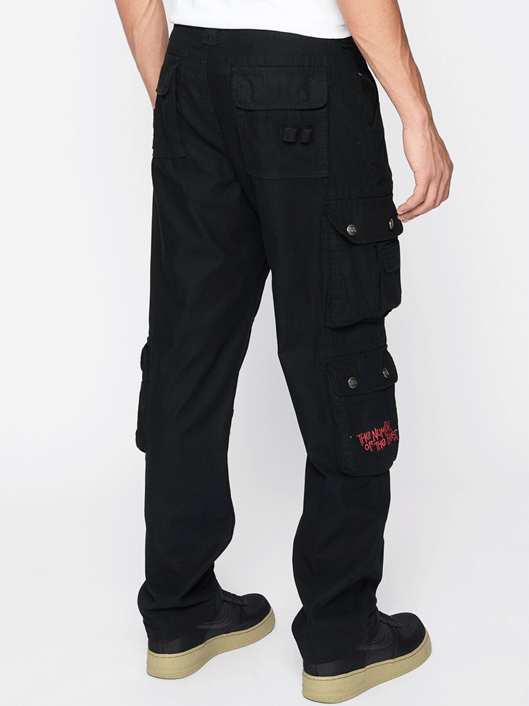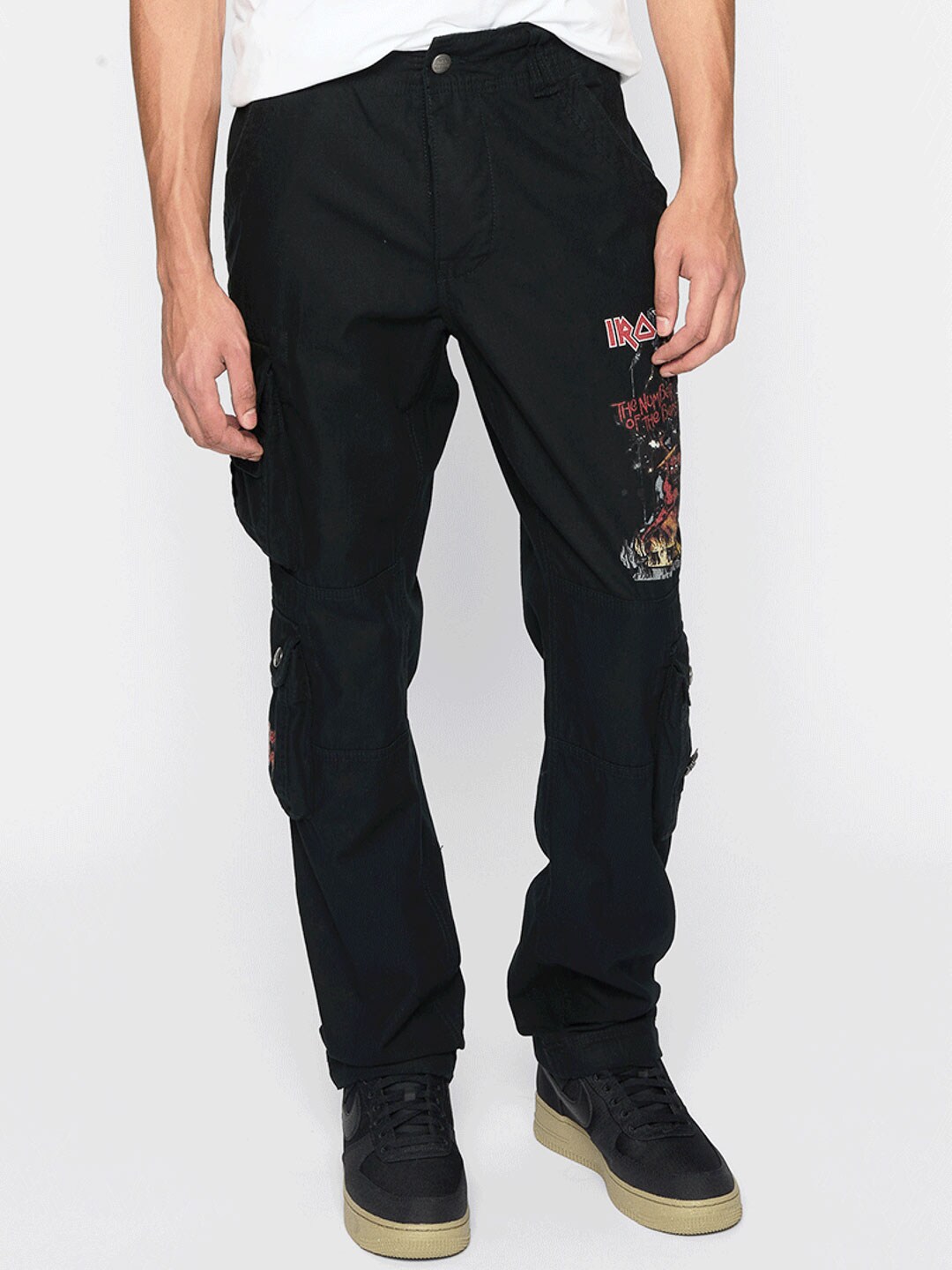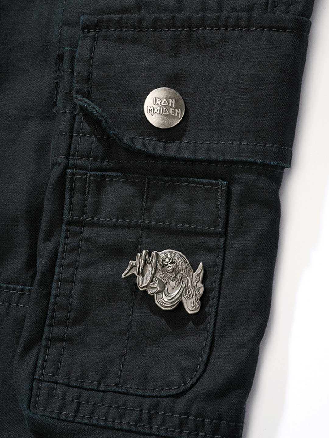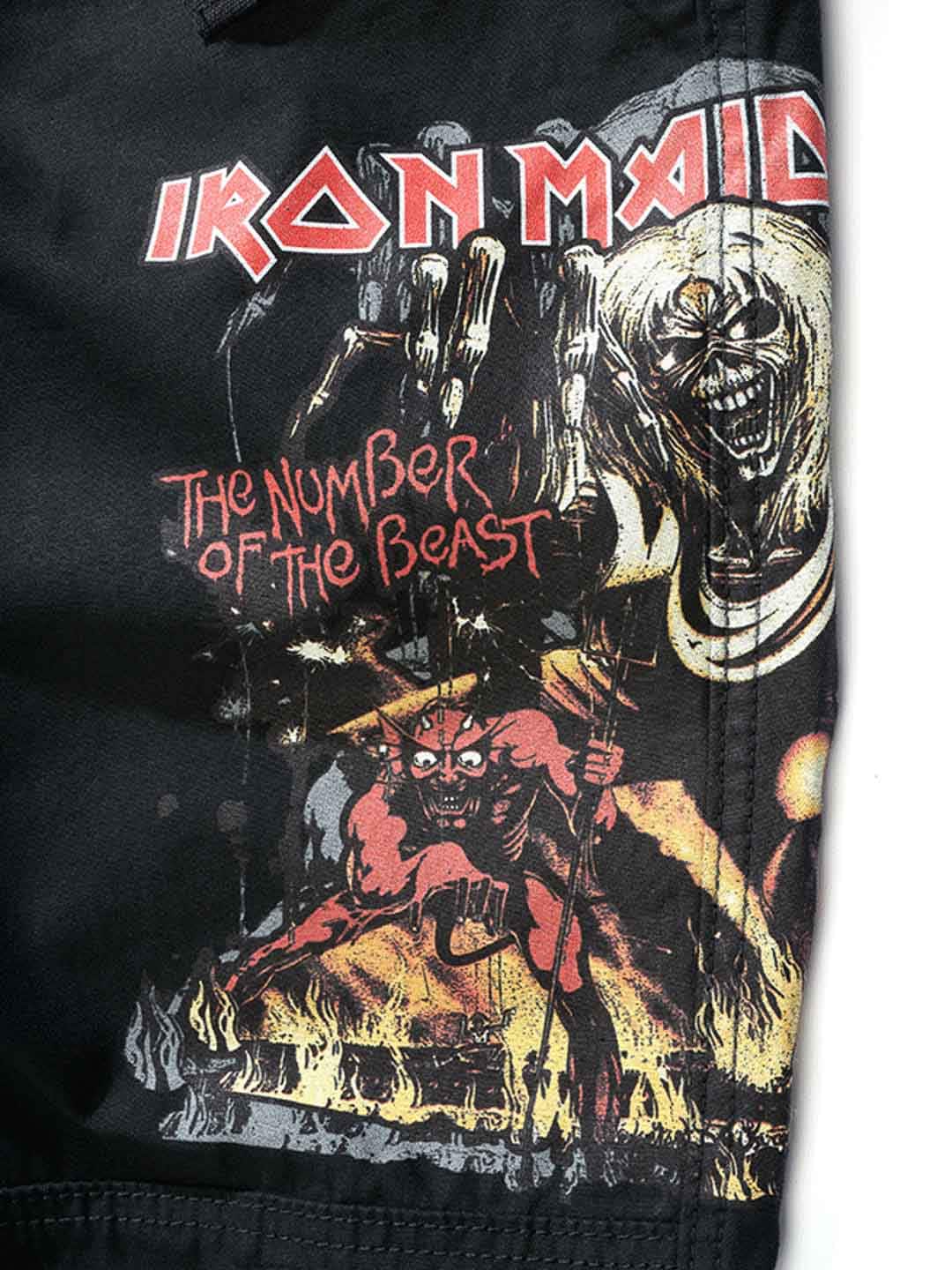 Mørke bukser med slim fit-passform og slitesterkt, hudvennlig bomullsmateriale som gir både komfort og holdbarhet. Justerbare stoffremmer i midjen og ved benslutt gjør det enkelt å tilpasse passformen. Designet med et stort Iron Maiden-trykk langs venstre ben og et ”Number of the Beast”-trykk på høyre benlomme. En tydelig hyllest til det ikoniske heavy metal-bandet Iron Maiden.