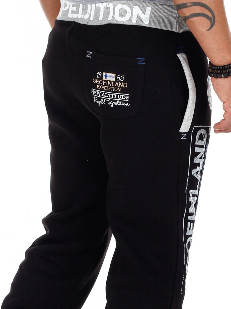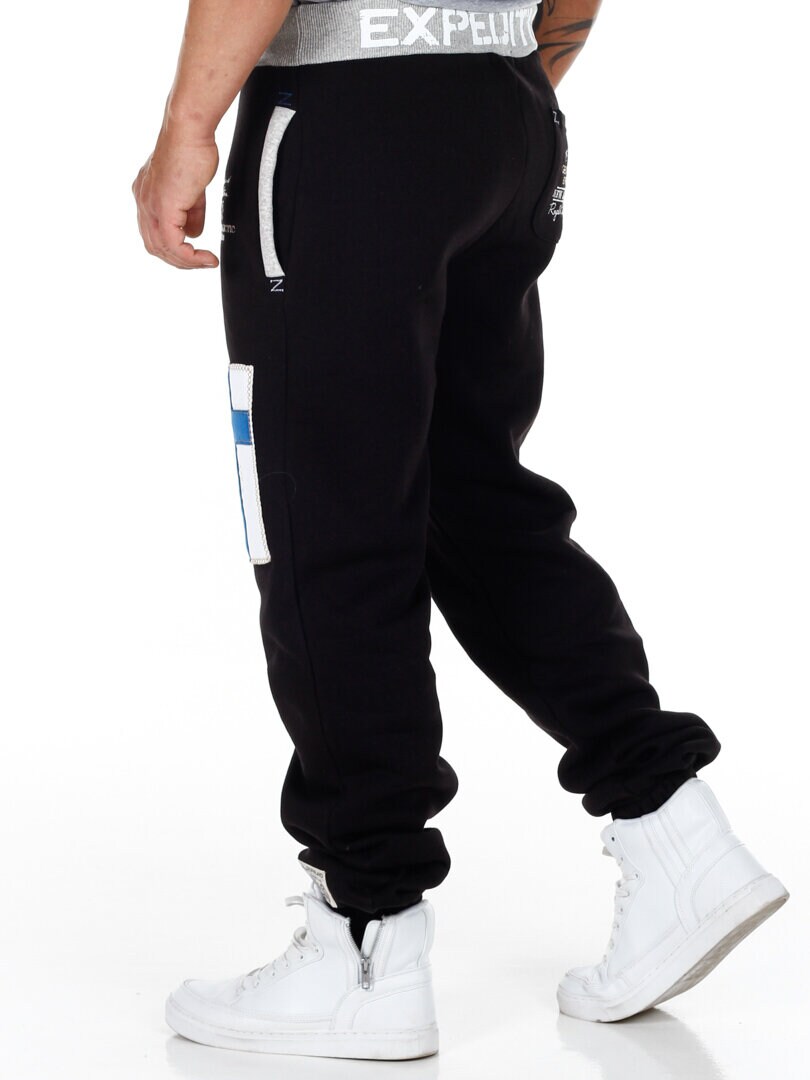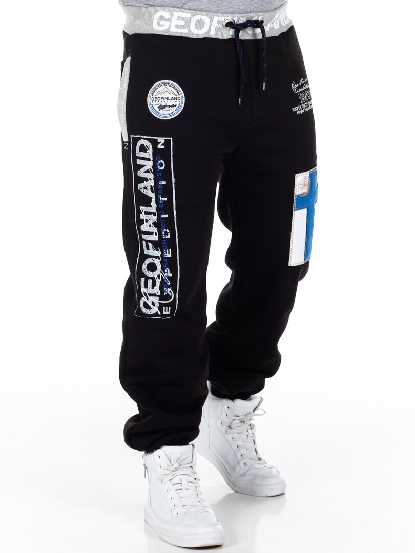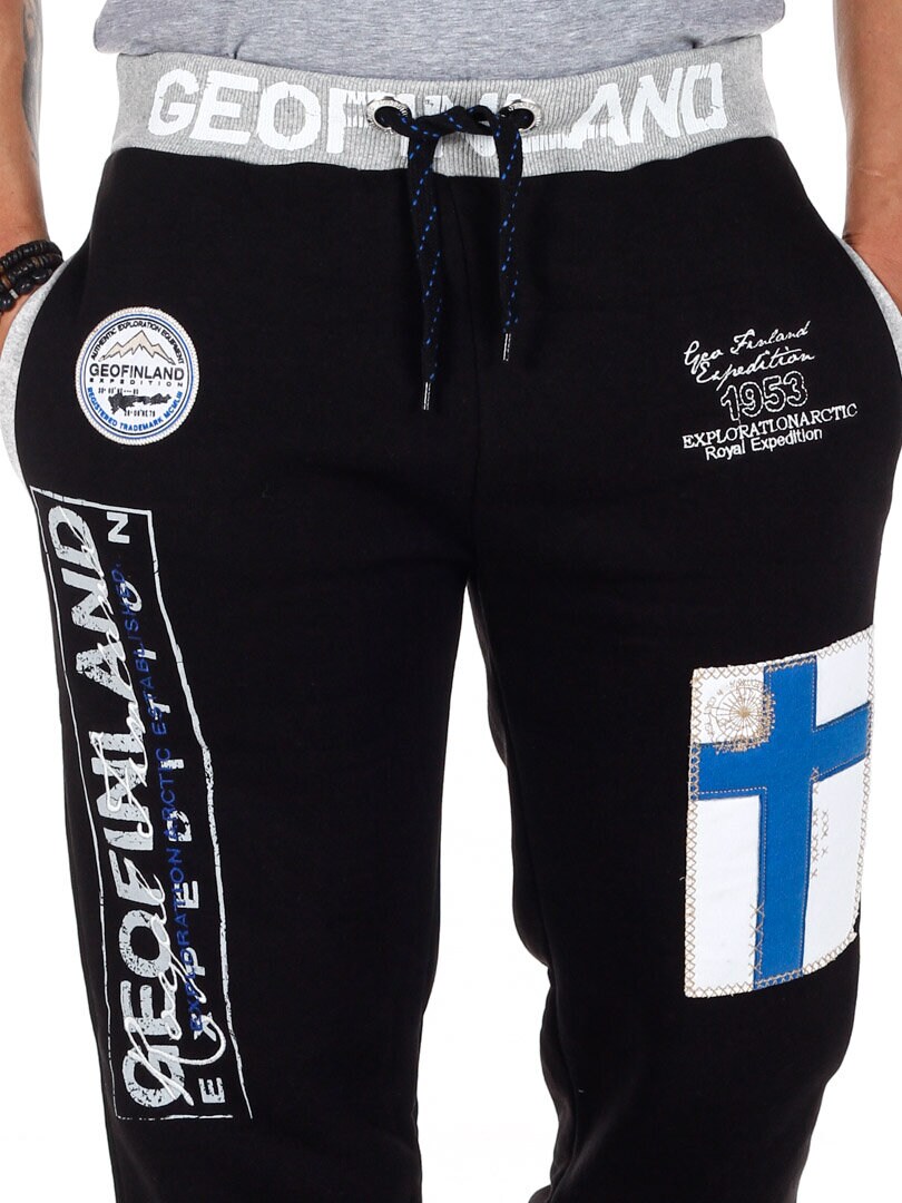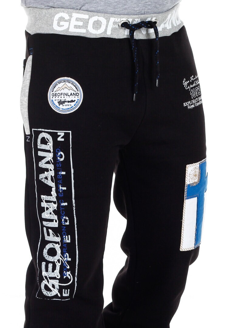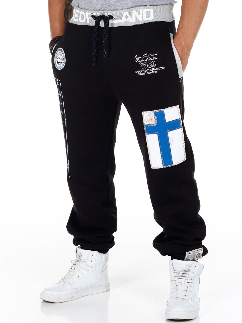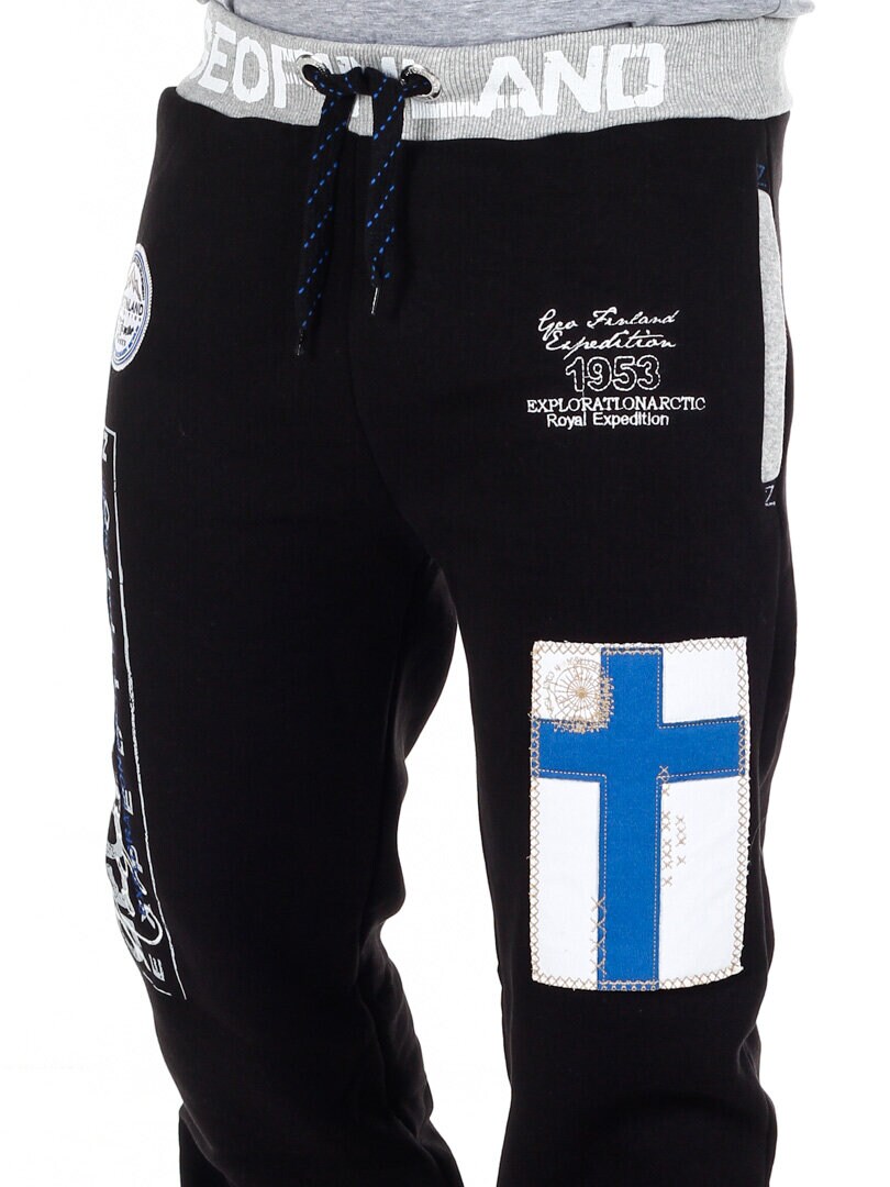 Unik joggebukse som du får eksklusivt på RockDenim. Det finske flagget printet på venstre lår. Patch og broderier øverst på hvert bein samt broderier på baklommen. Sort snøring med blått mønster foran. To lommer foran og én baklomme. Strikk nederst på beina. For produkter med det norske flagget, se her!