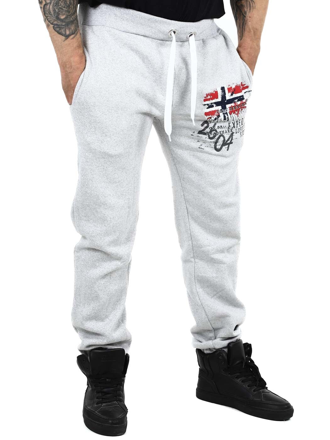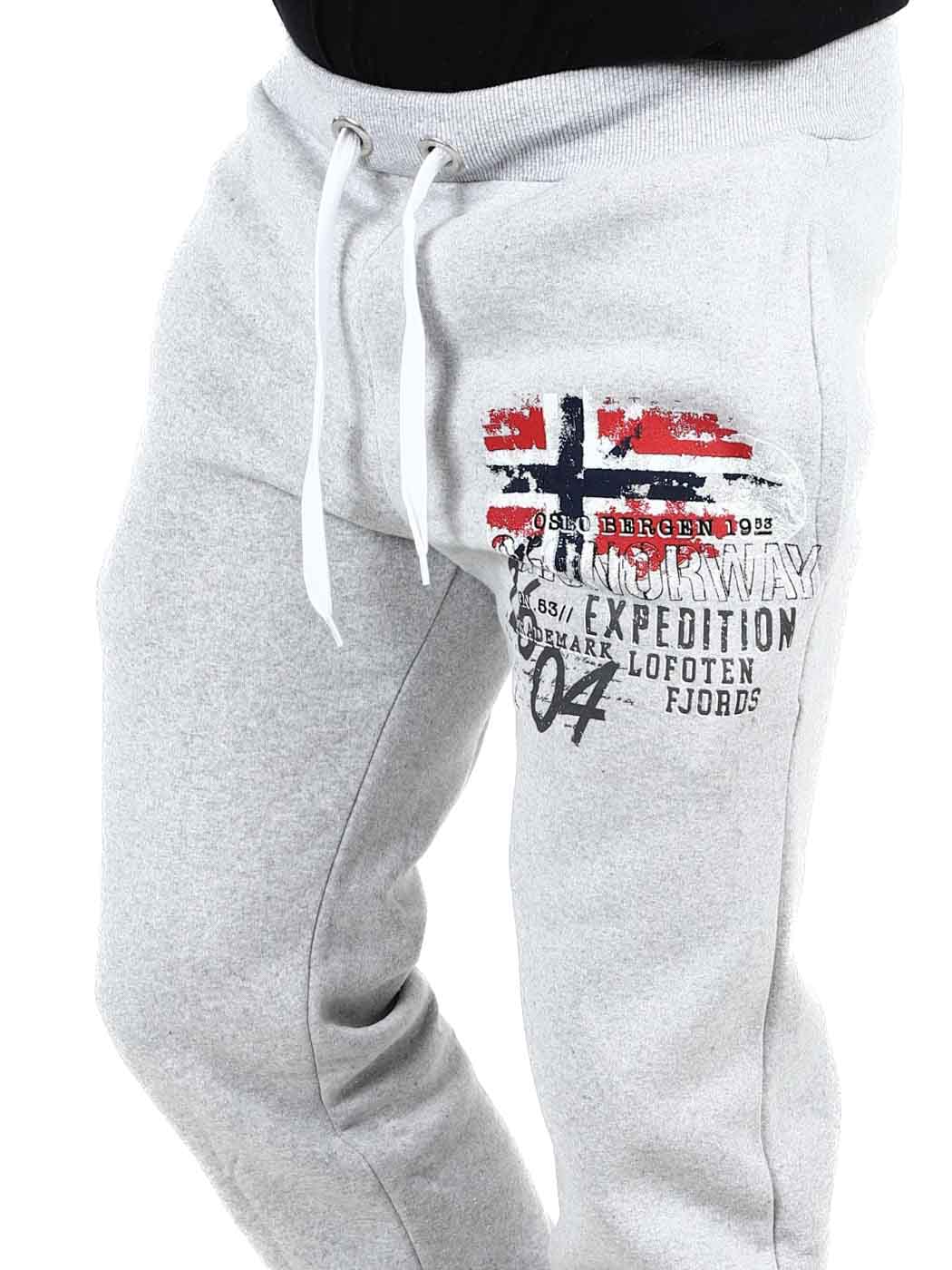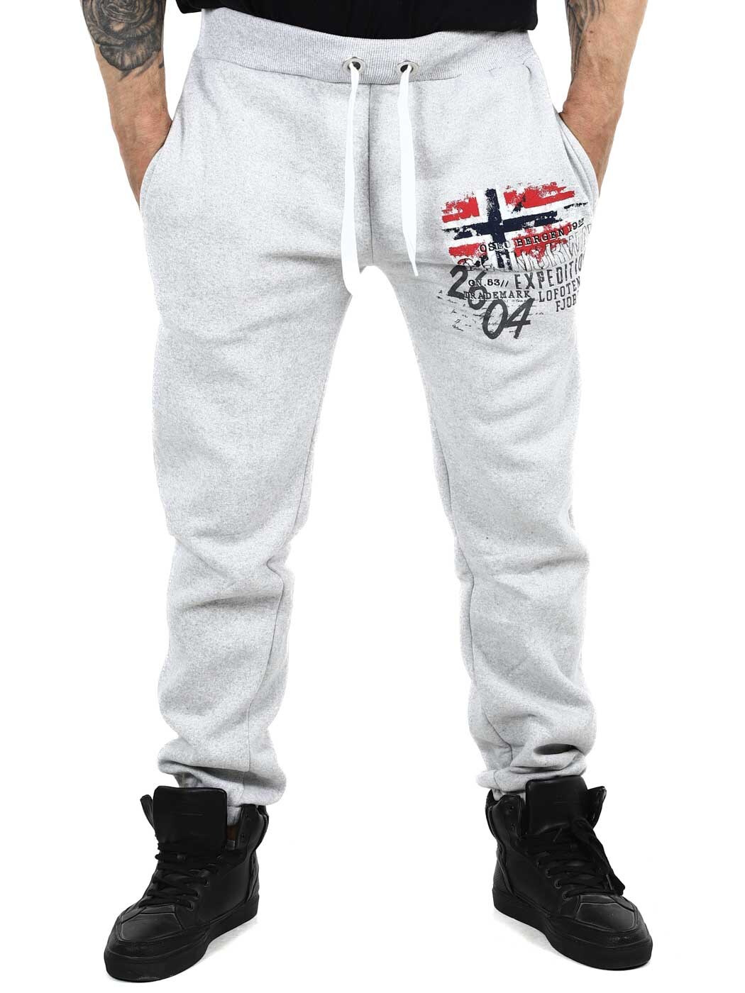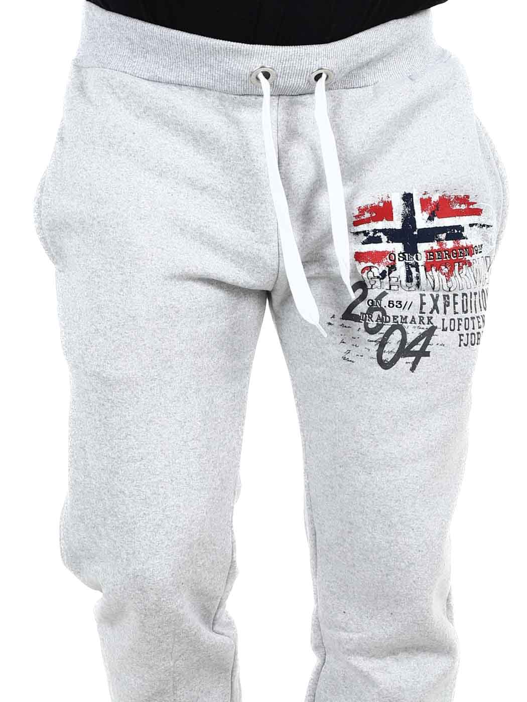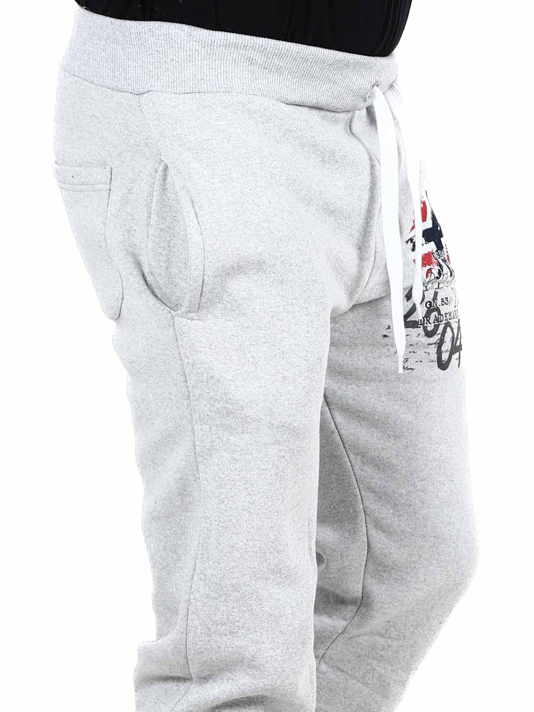 Behagelig joggebukse med børstet innside som er ekstra myk. De har trykk på benet og to åpne frontlommer. Designet med strikk i benendene og ribbestrikkede mansjetter med snøring i midjen.