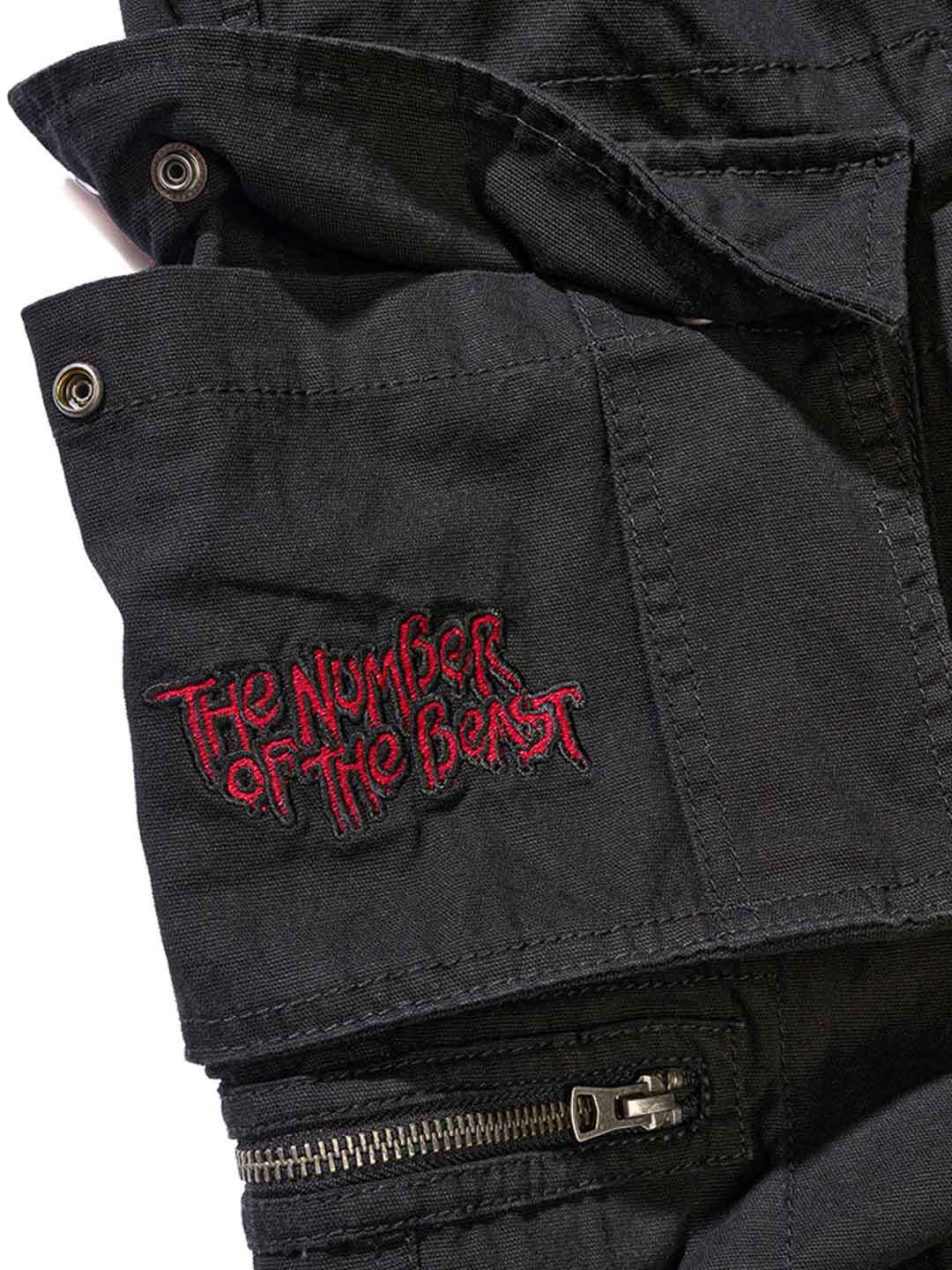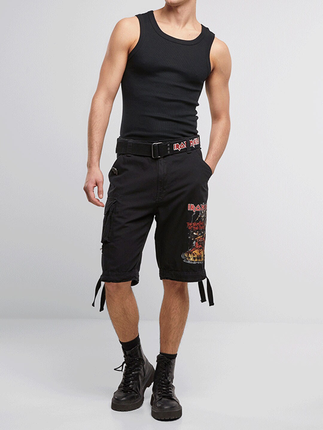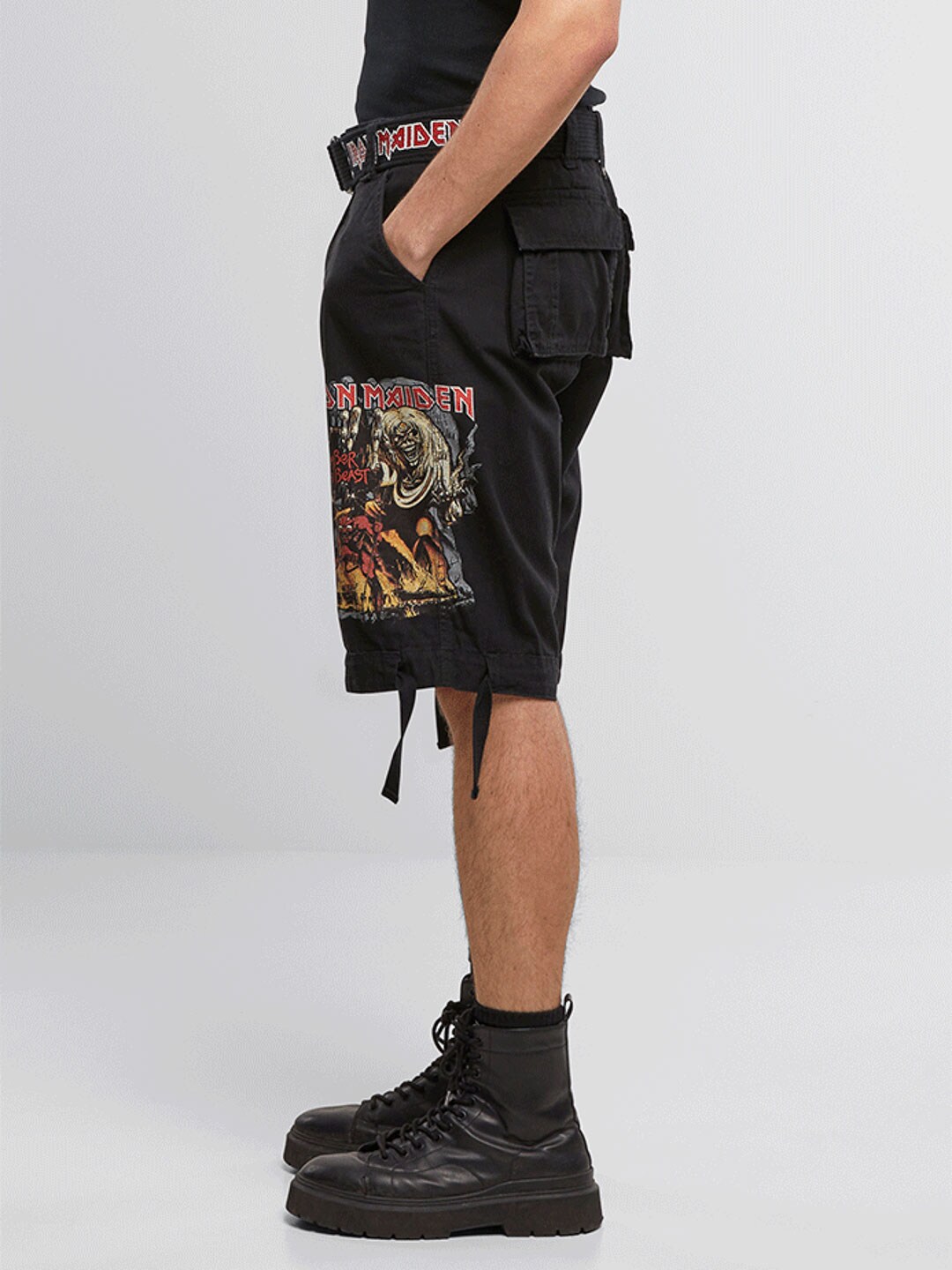 Tøffe cargo-shorts for fans av Iron Maiden og klassisk rockestil. Disse shortsene kombinerer et robust, militærinspirert design med ikoniske detaljer fra albumet "The Number Of The Beast". De er utstyrt med flere praktiske lommer samt justerbare stoffremmer i midjen og ved benåpningene, noe som gjør det enkelt å tilpasse passformen for optimal komfort.