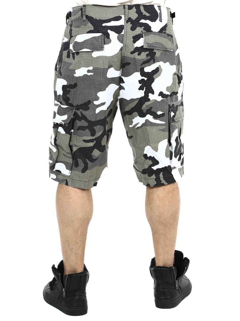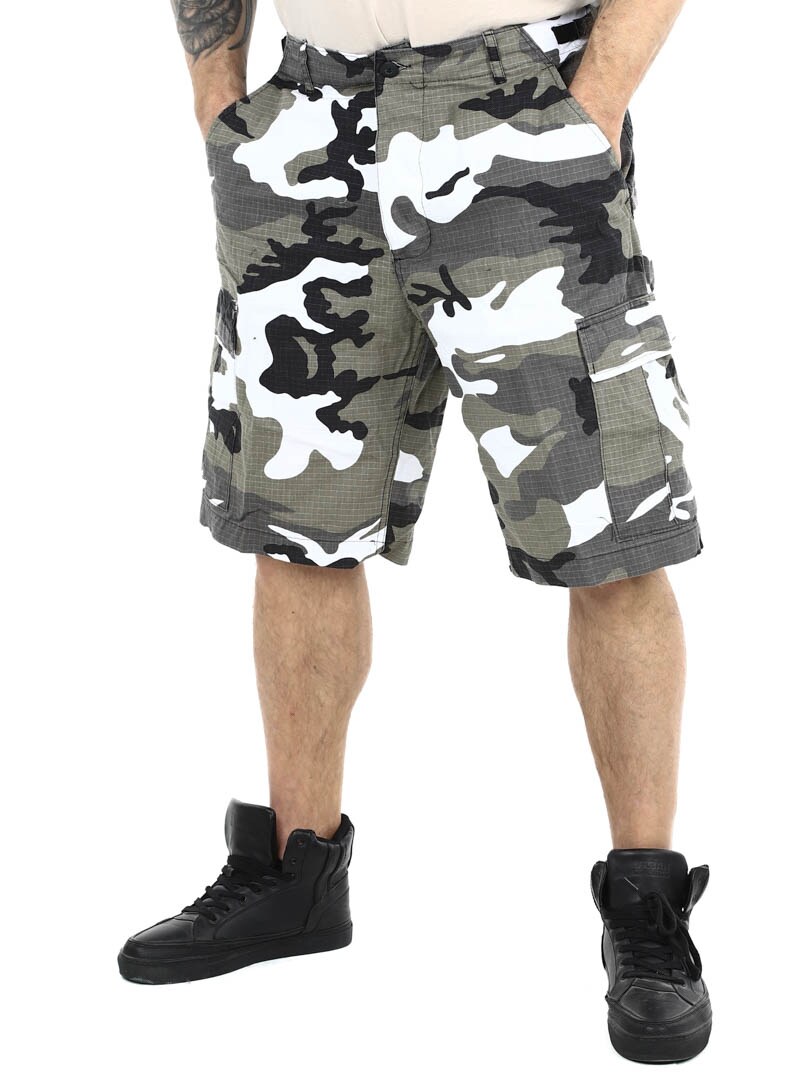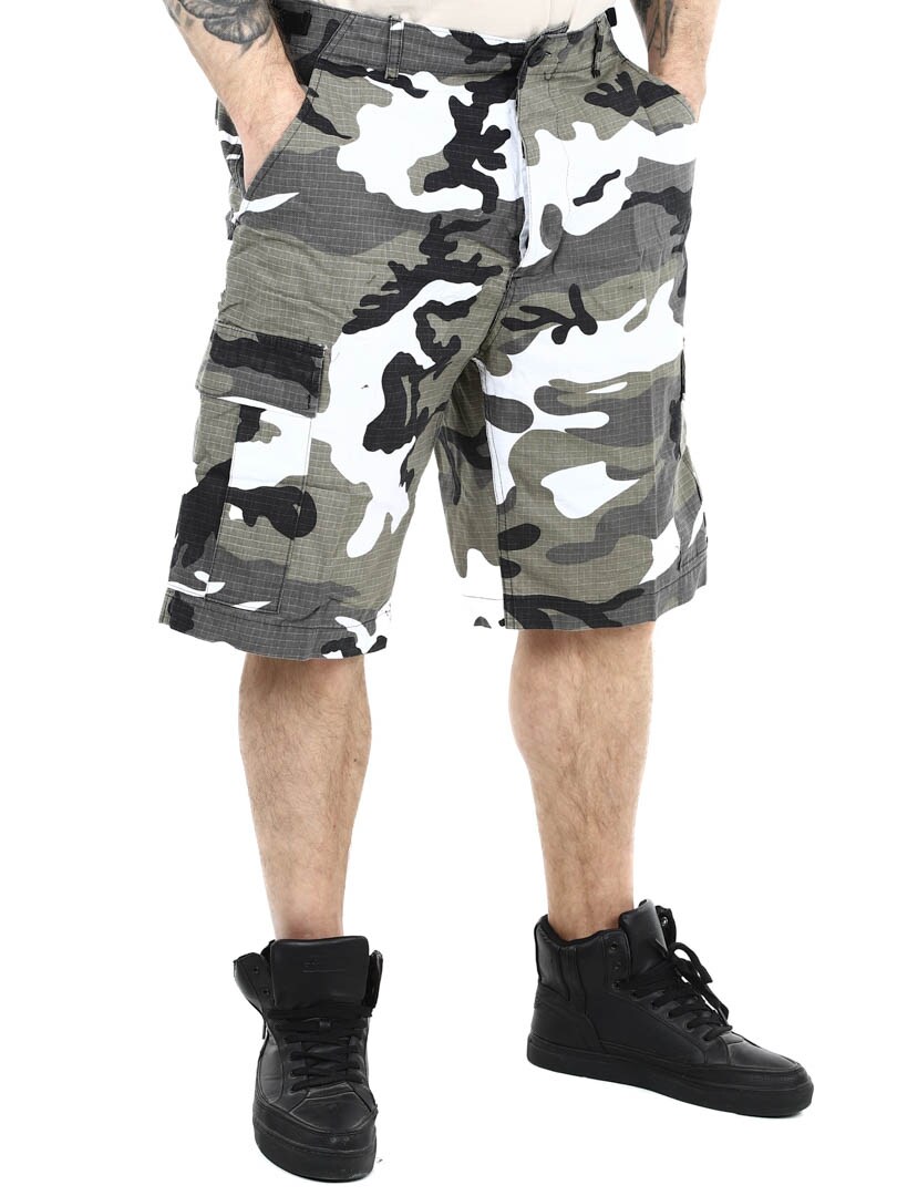 Camomønstret shorts med beltestropper i livet. De har rikelig med lommer, både åpne og lukkbare. Disse cargoshortsene med klassisk kamuflasjemønster er klare for alt fra eventyr i naturen til en avslappet dag i byen, og kombinerer stil med praktisk funksjonalitet.