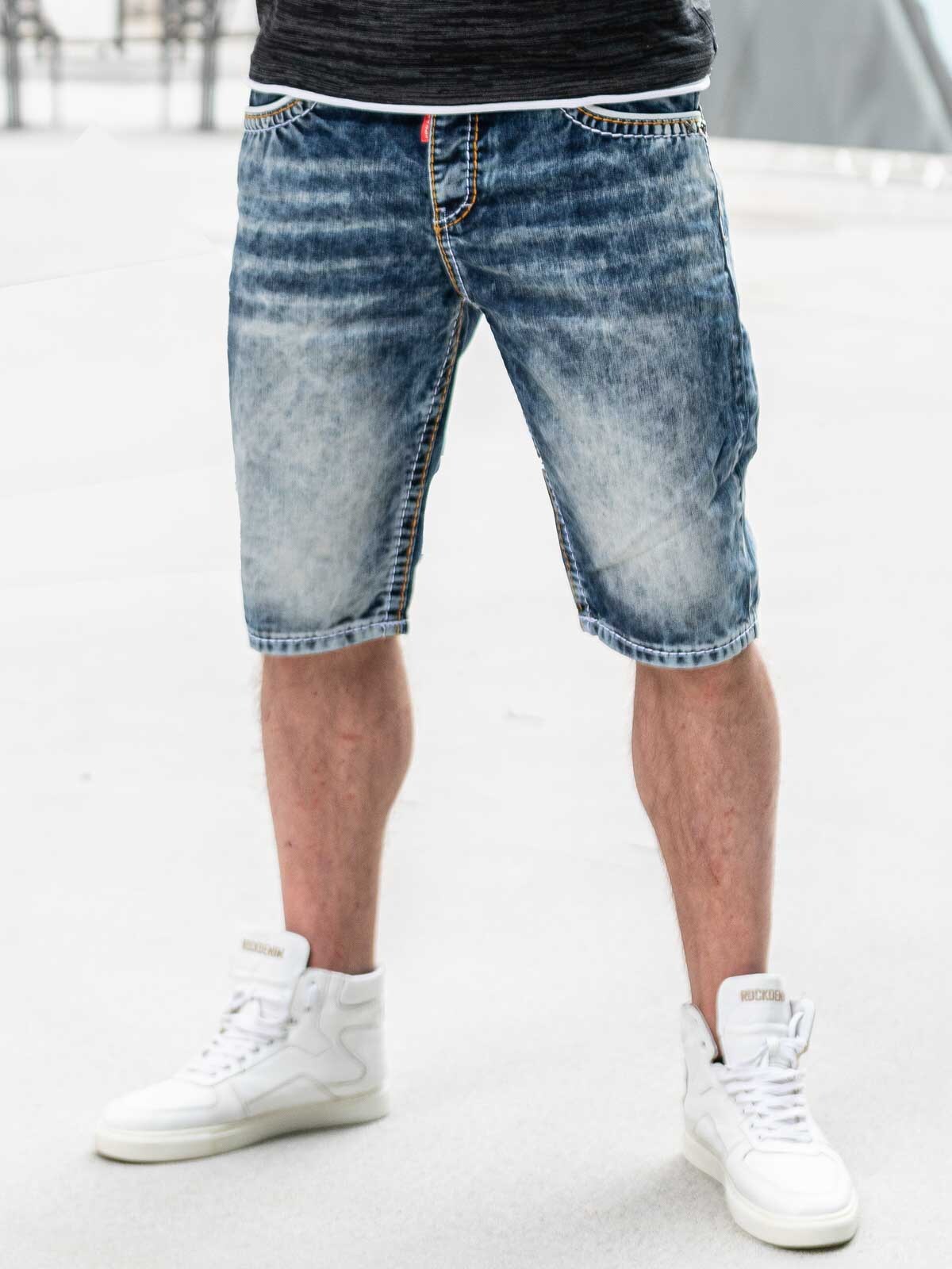 Shorts i denim med klassisk passform. Fire frontlommer og to baklommer. Grove sømmer i kontrastfarger som gir det lille ekstra!
