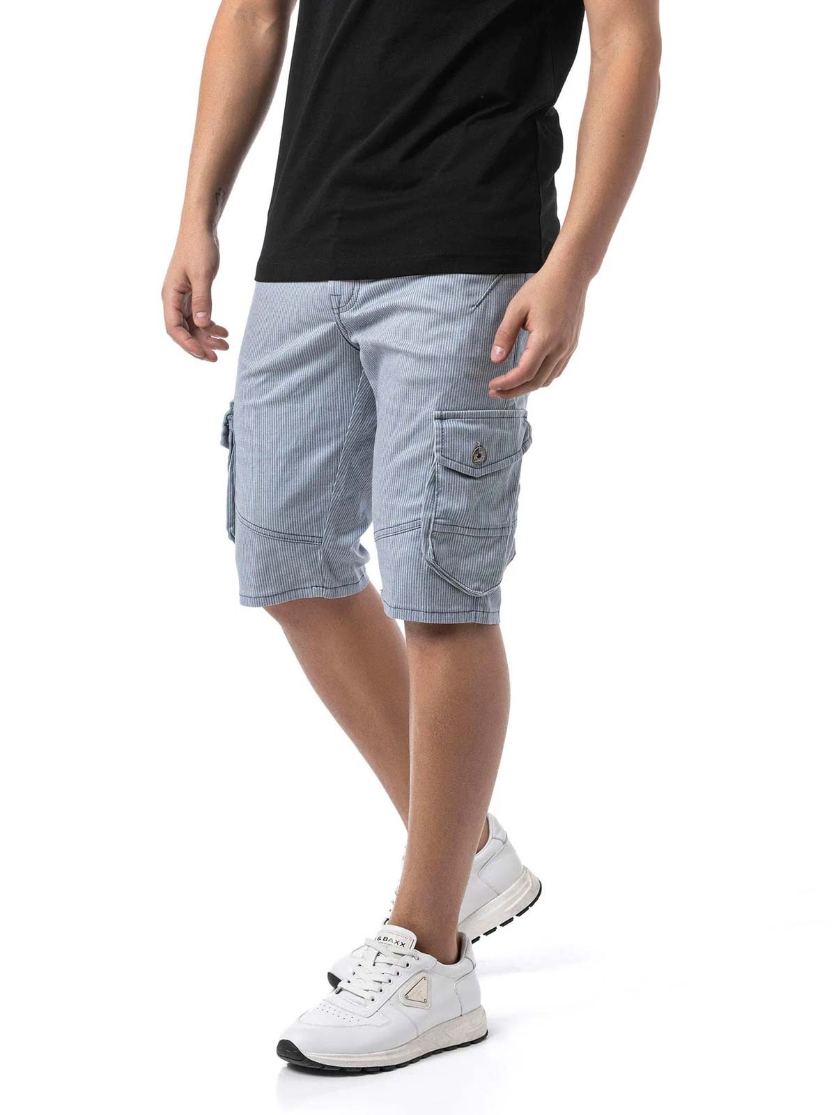 Stripete shorts med cargolommer og grove sømmer som fremhever designet. Myk og elastisk modell for best mulig komfort. Stilig shorts som passer perfekt til både en enkel t-skjorte og en fin skjorte!