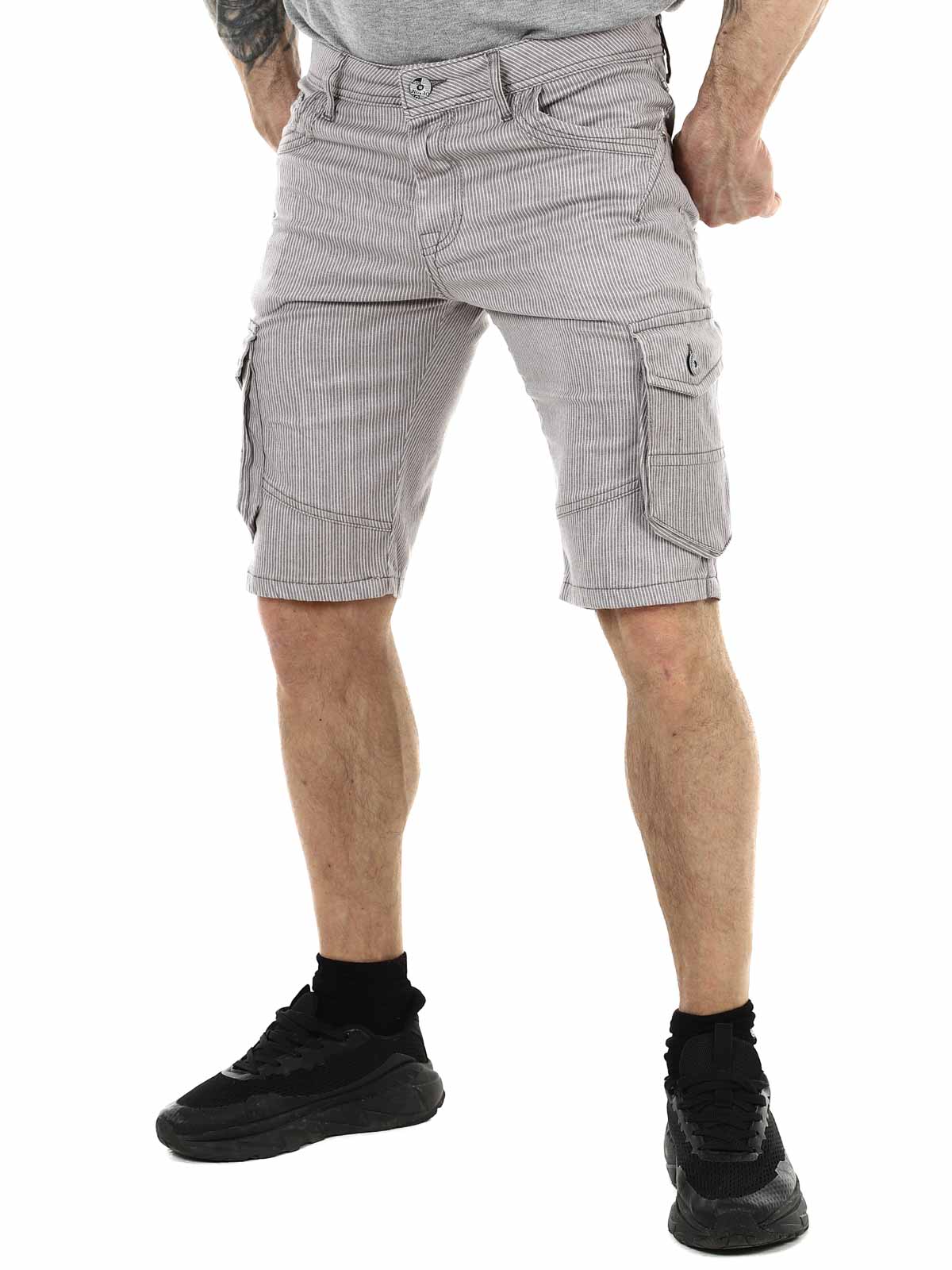 Stripete shorts med cargolommer og grove sømmer som fremhever designet. Myk og elastisk modell for best mulig komfort. Stilig shorts som passer perfekt til både en enkel t-skjorte og en fin skjorte!