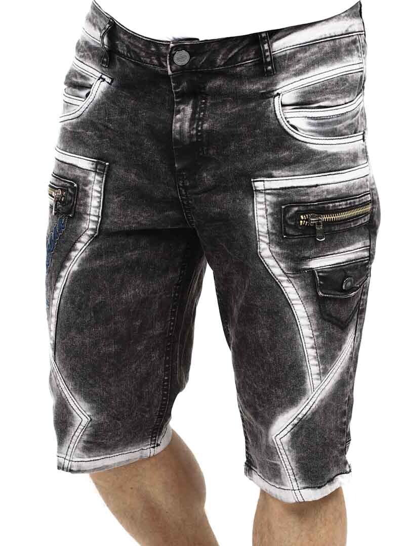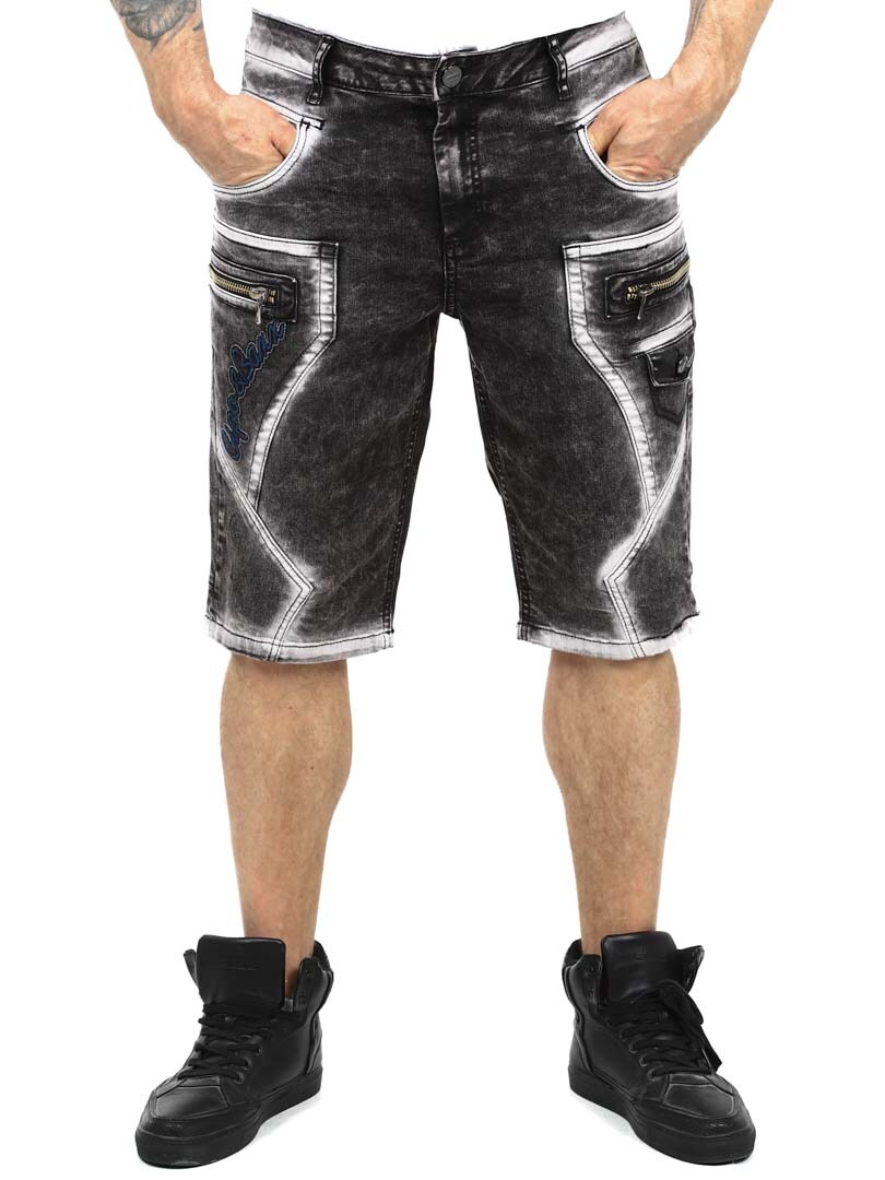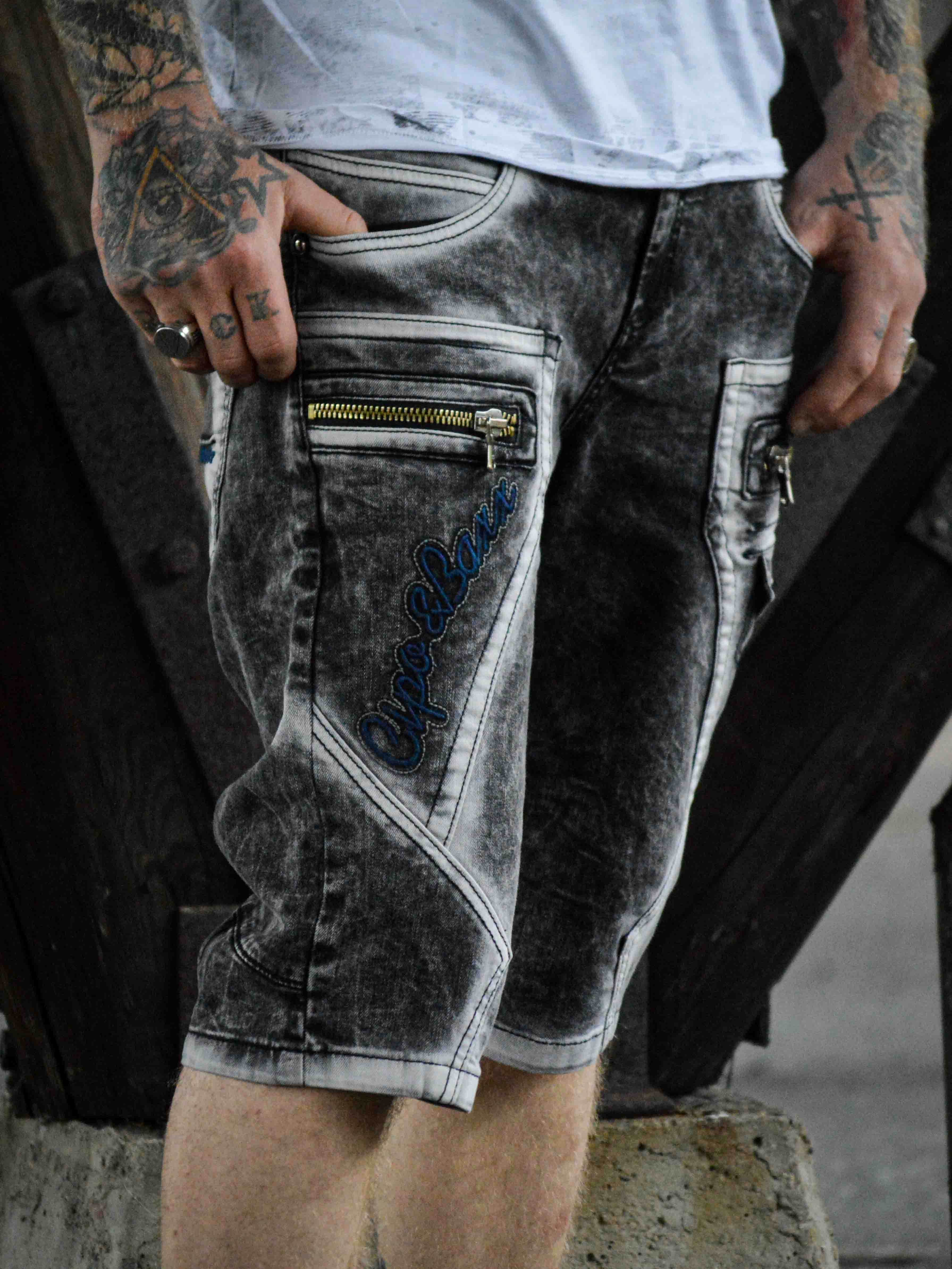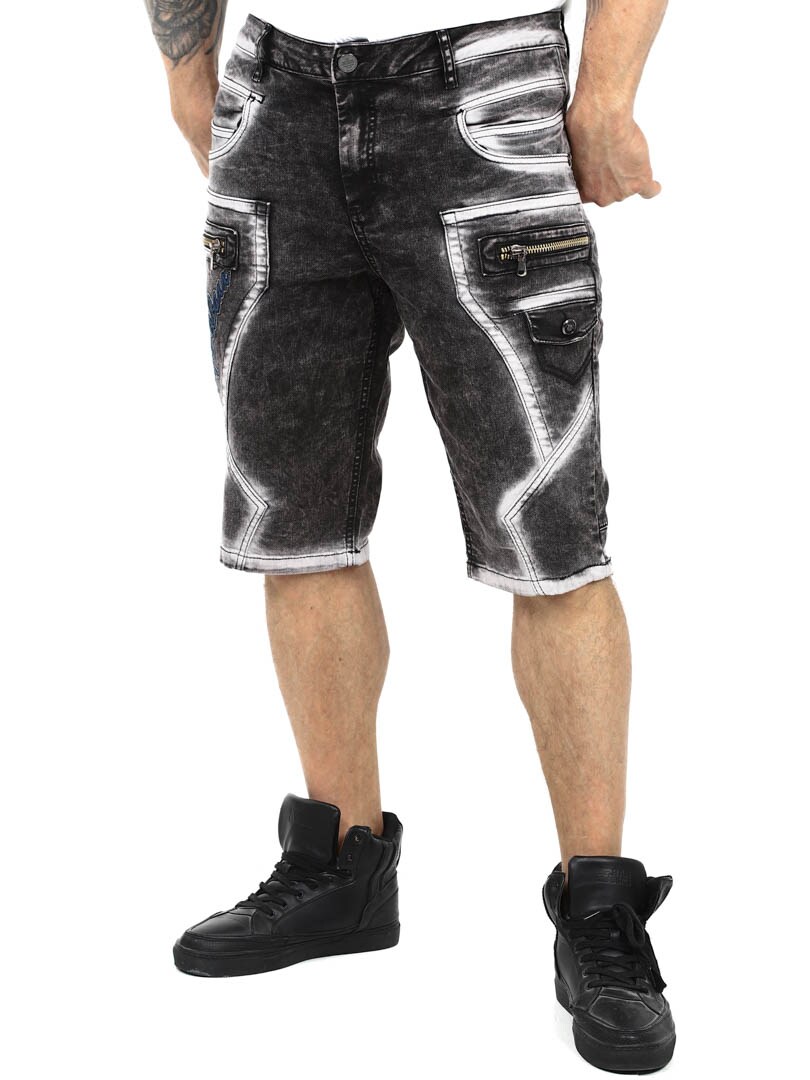 Gi streetwear-stilen din en oppgradering med disse unike shortsene. Laget av slitesterk denim med en kraftig vasket finish for en tøff look. De har flere funksjonelle lommer, brodert logo og grove sømmer for ekstra kant. Glidelåsene foran er kun til pynt og ikke funksjonelle.