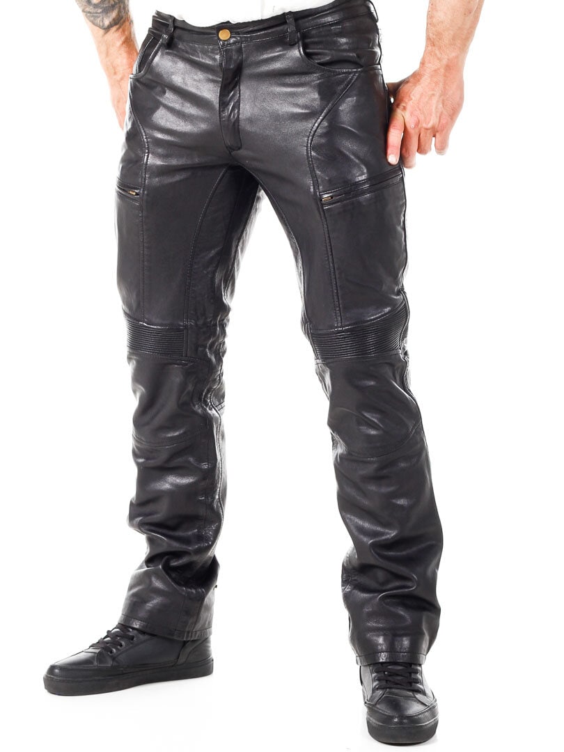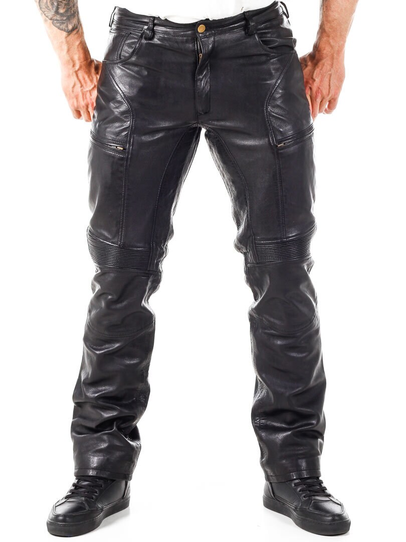 Unik skinnbukse i mykt og behagelig skinn. De har fem åpne lommer og to lukkbare lommer på lårene. Buksen har justerbar vidde i benenden, beltehemper i midjen og strikk over knærne som gjør den ekstra behagelig å bevege seg i. Disse buksene er eksklusivt laget for Rockdenim, og du finner dem kun her!