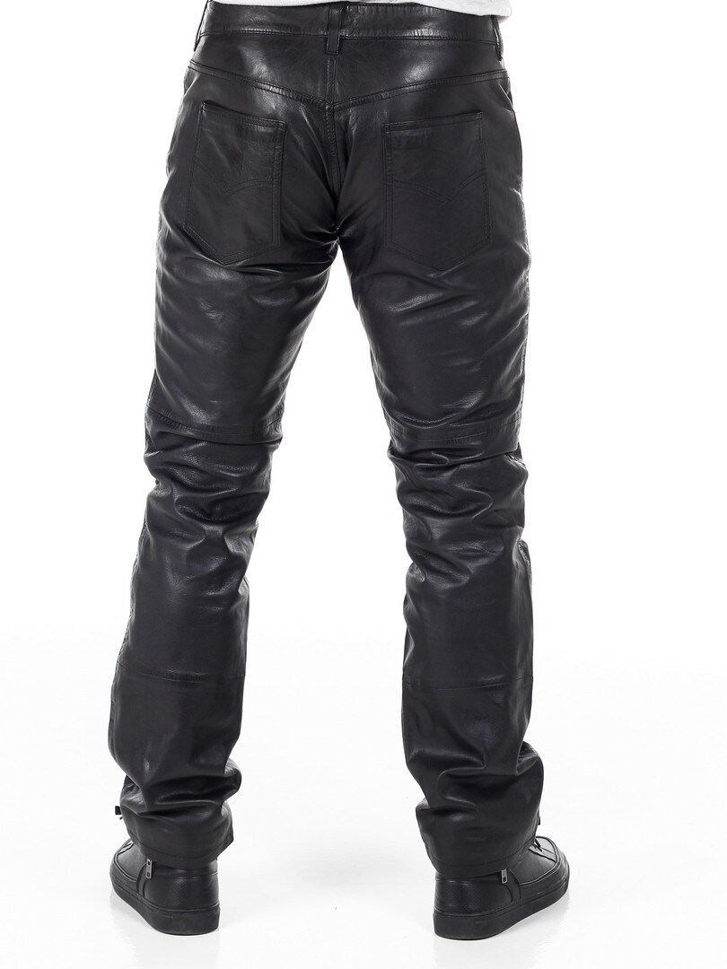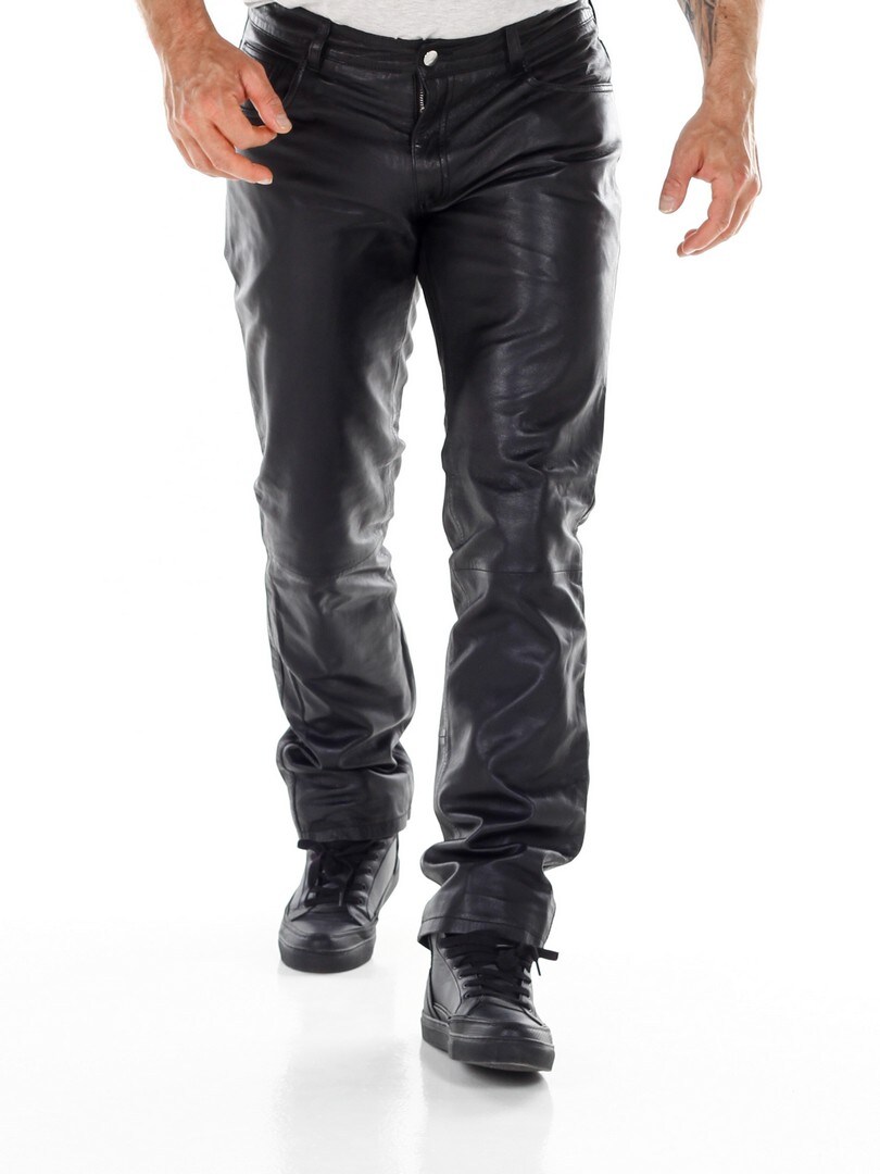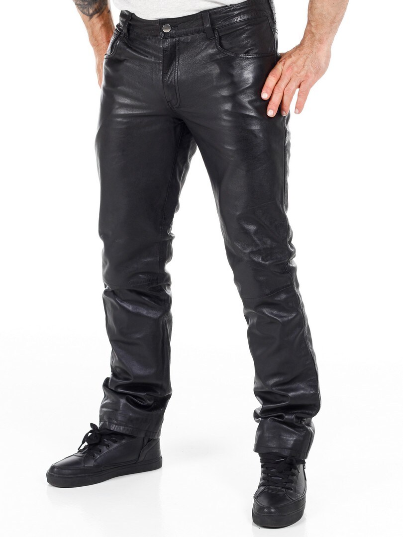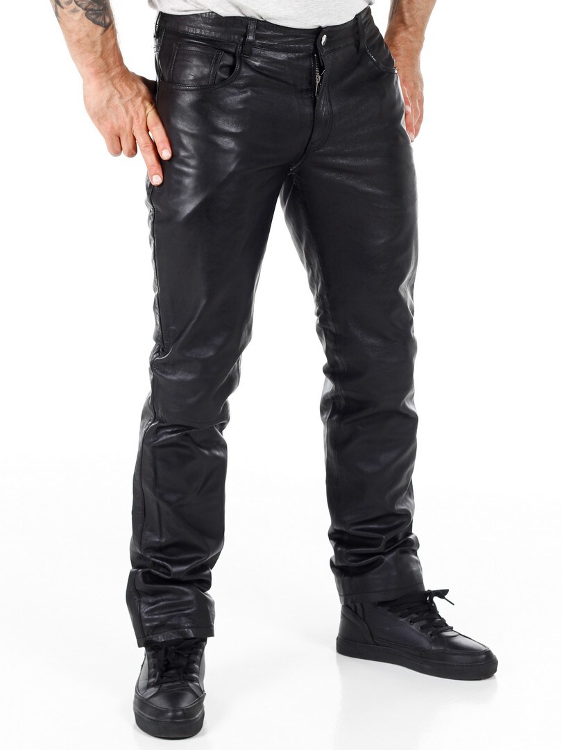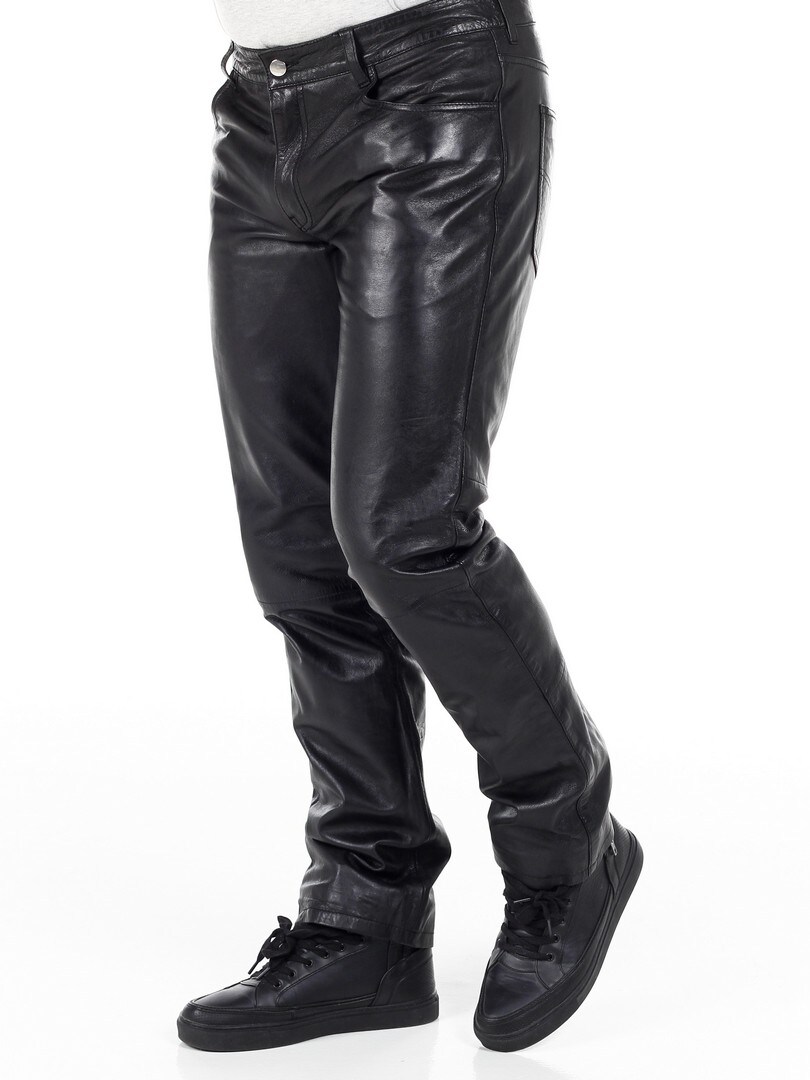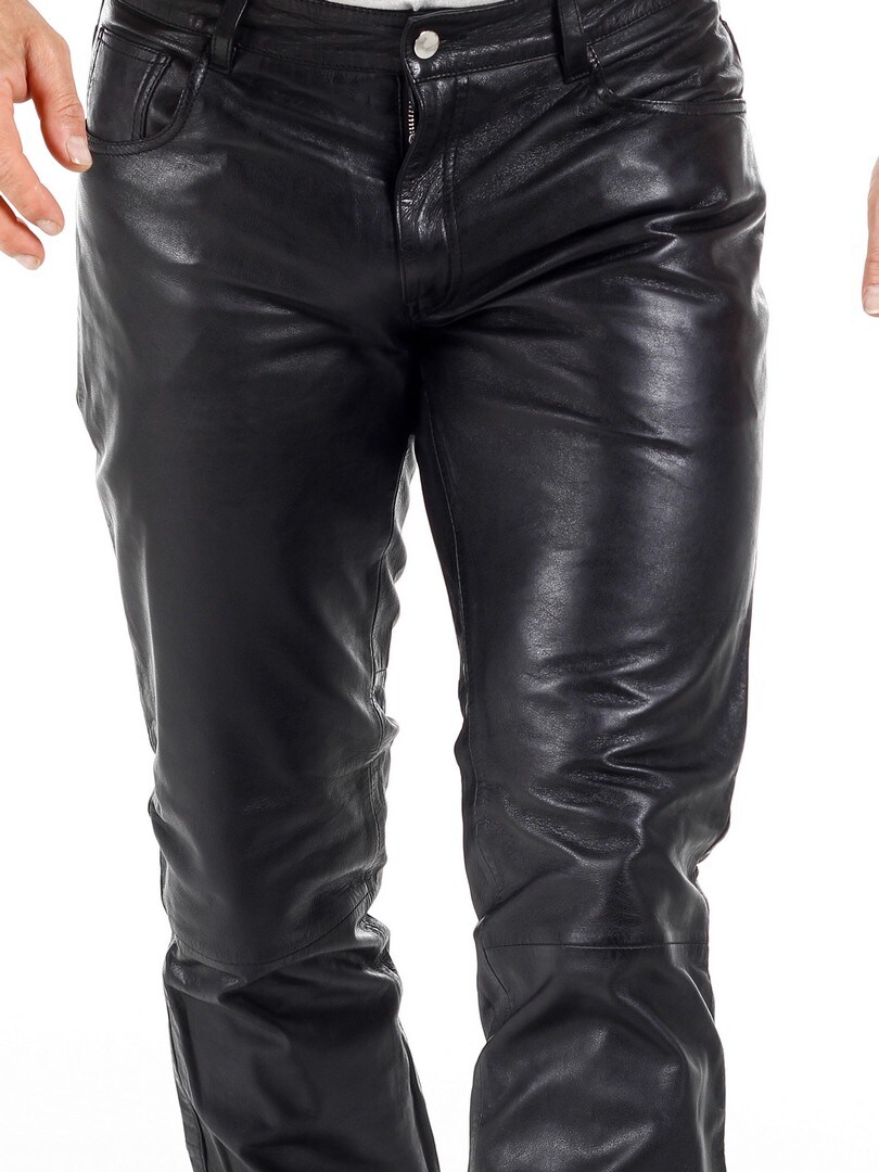 Svarte bukser i ekte skinn med klassisk 5-lommers design. Laget i mykt skinn med polyesterfôr som gjør at de sitter komfortabelt på kroppen. Ønsker du en fin bukse med attitude, har du kommet til rett sted!