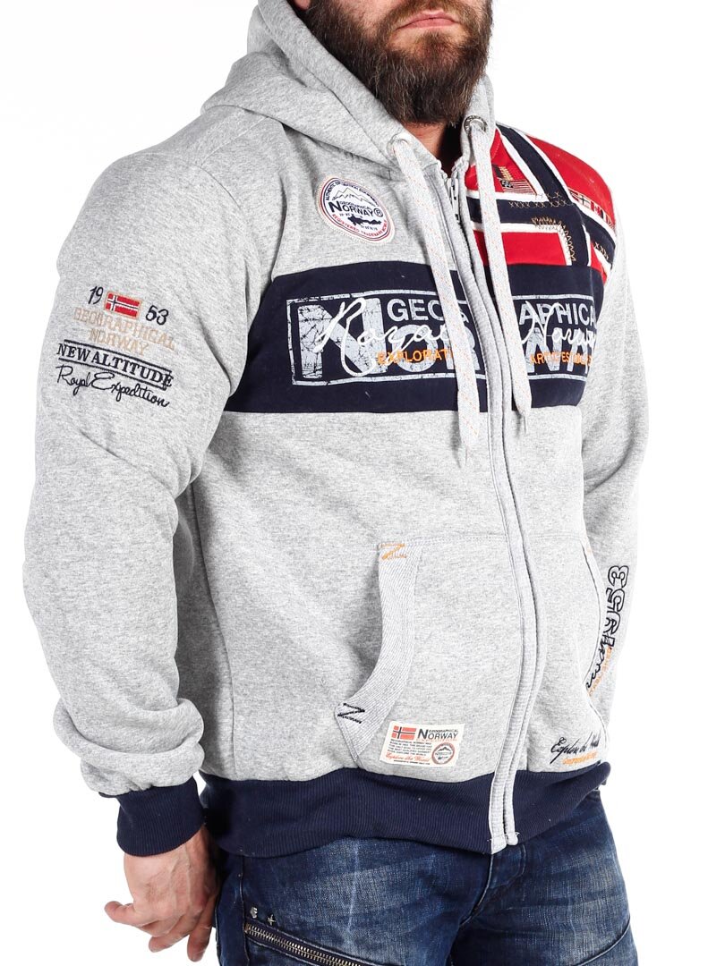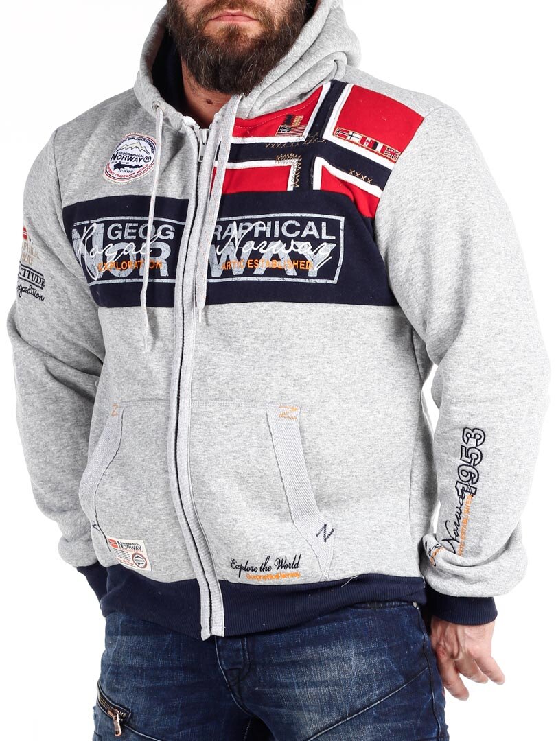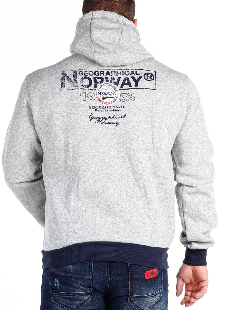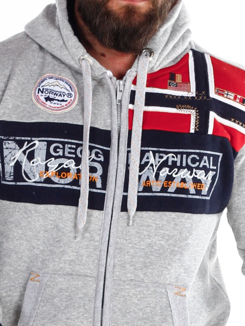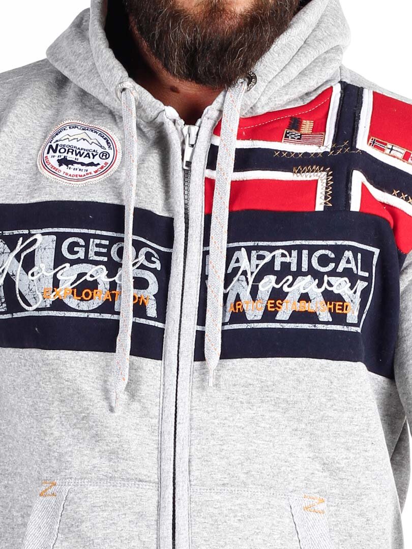 Grå hettegenser med glidelås fra Geographical Norway