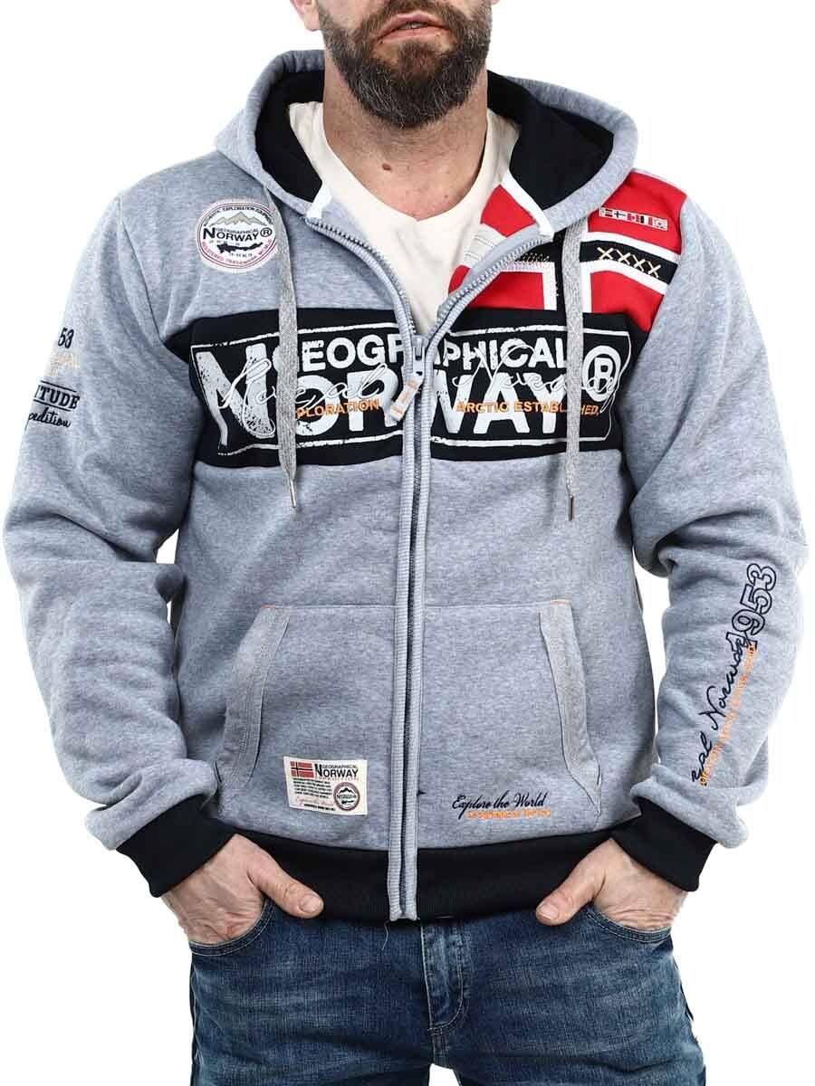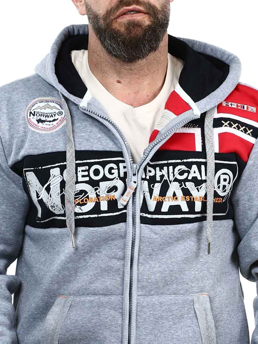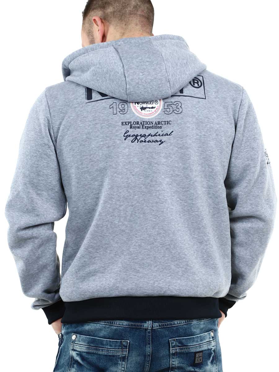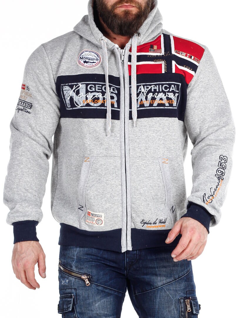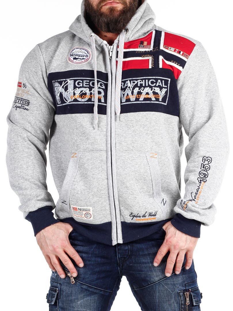 Grå hettegenser med glidelås fra Geographical Norway