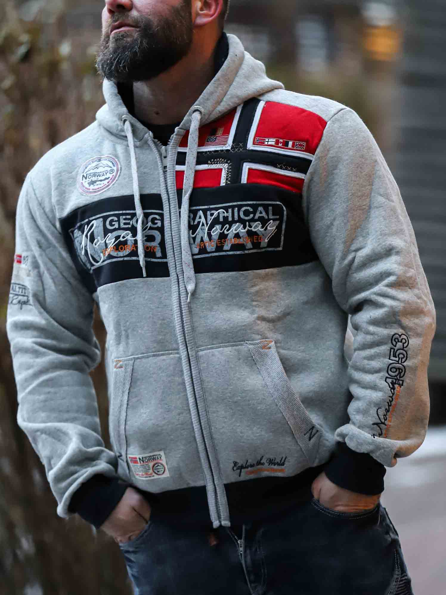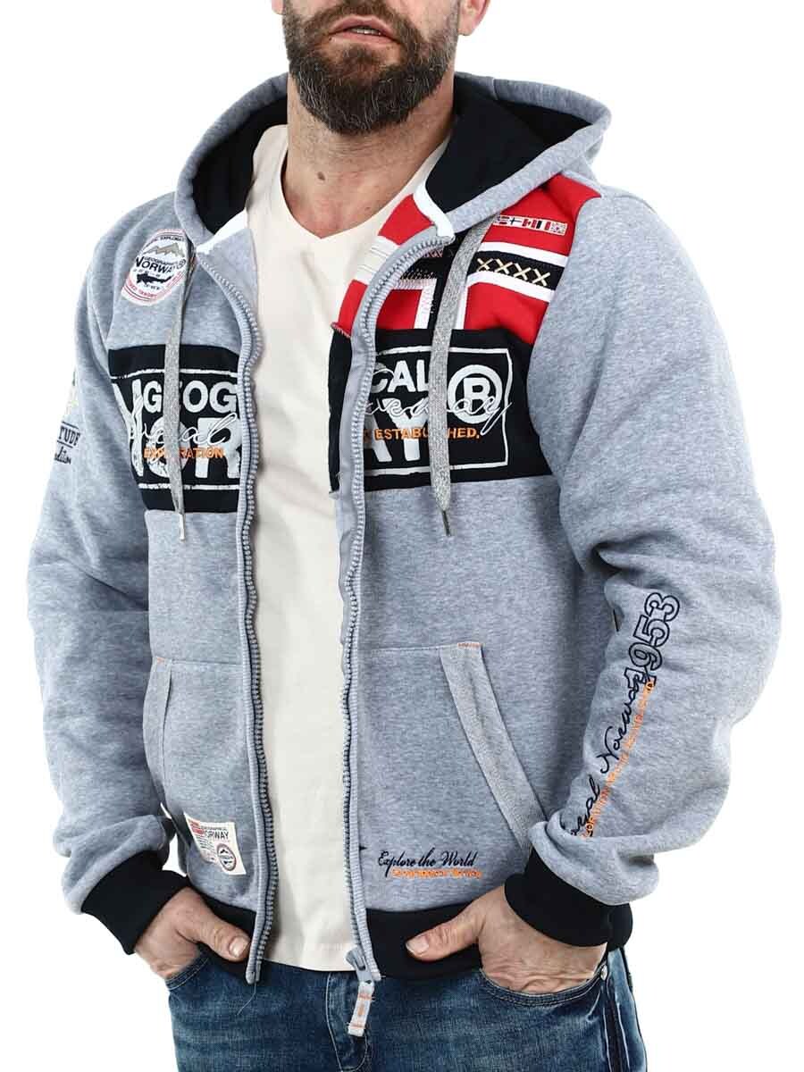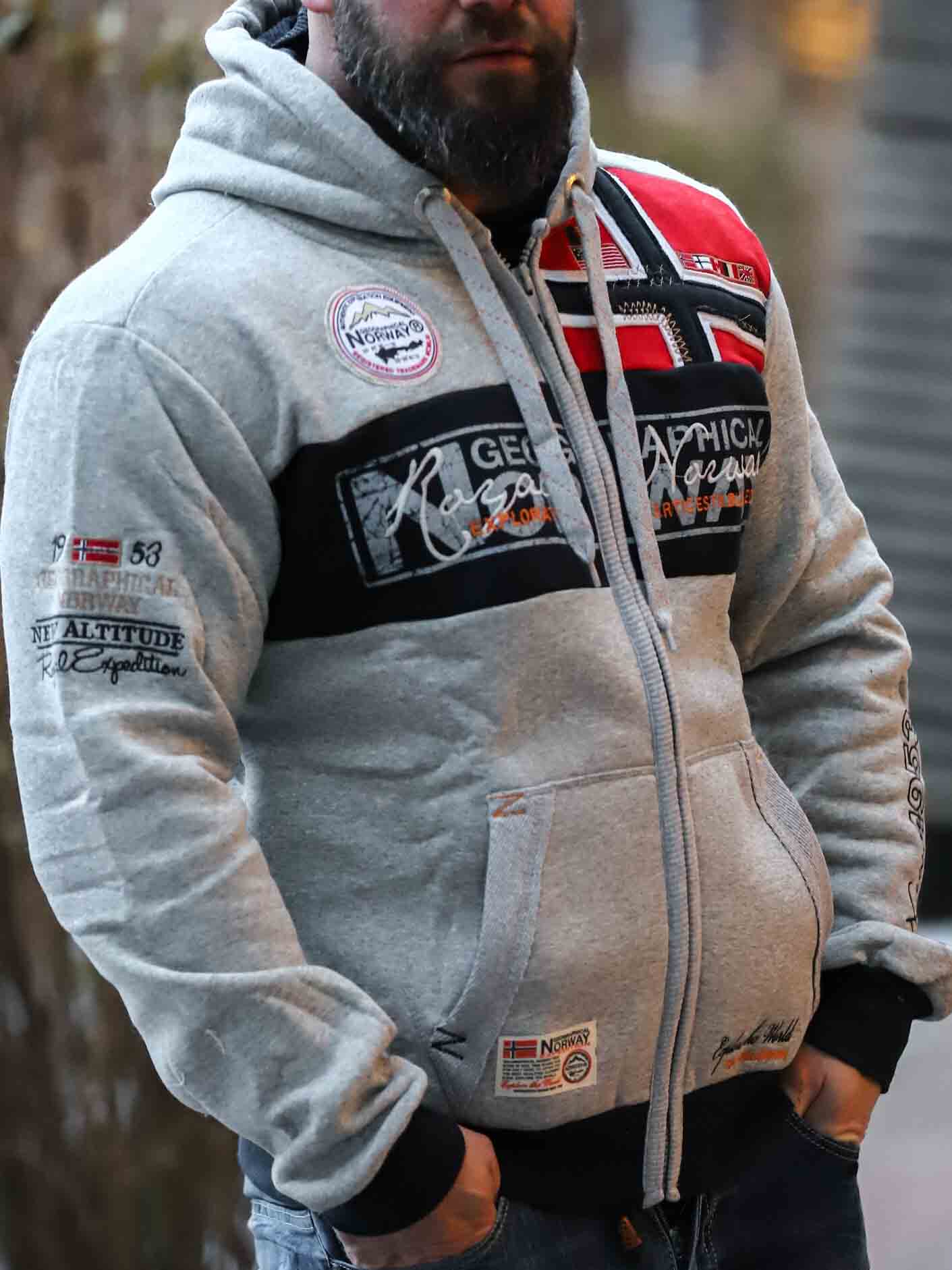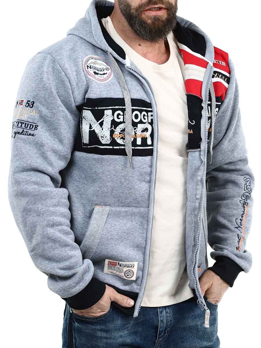 Grå hettegenser med glidelås fra Geographical Norway
