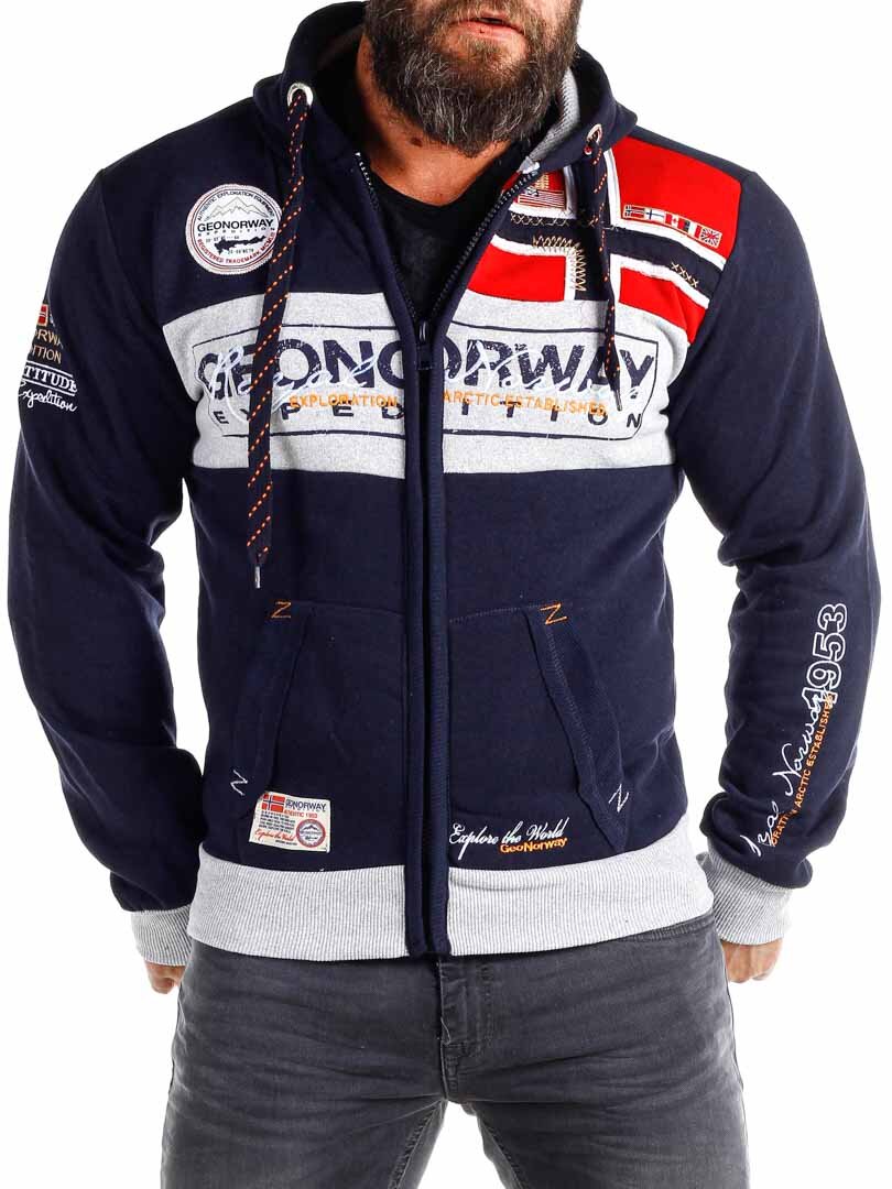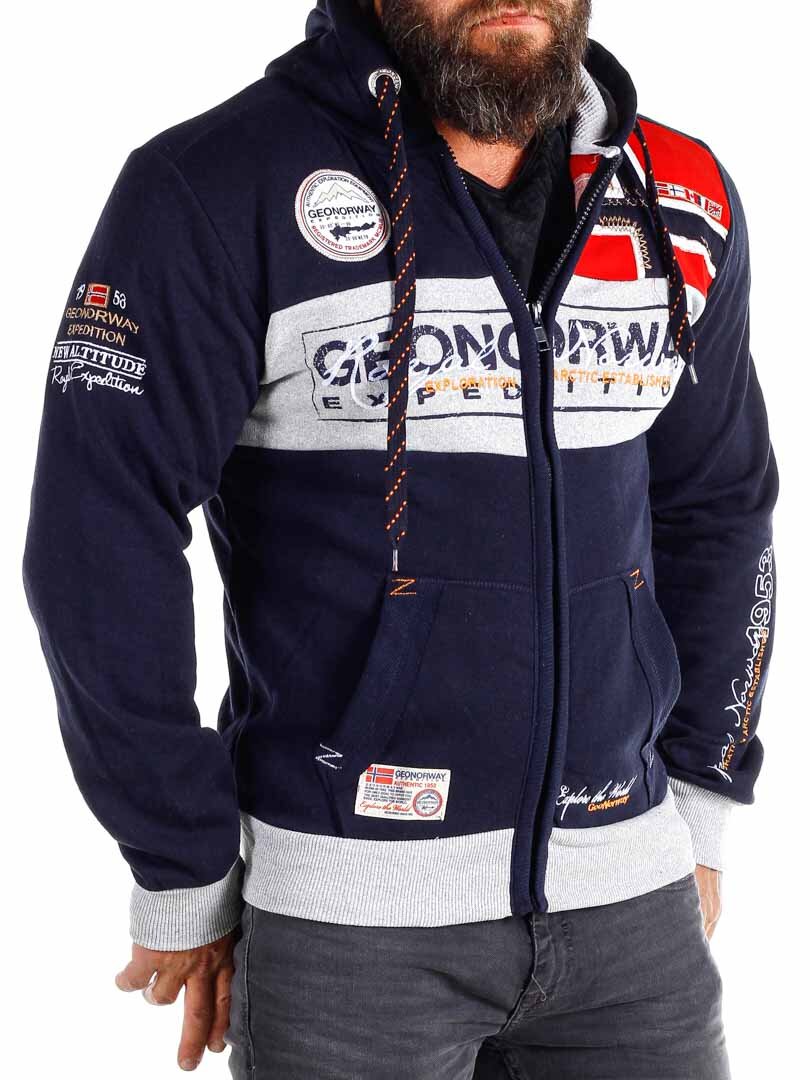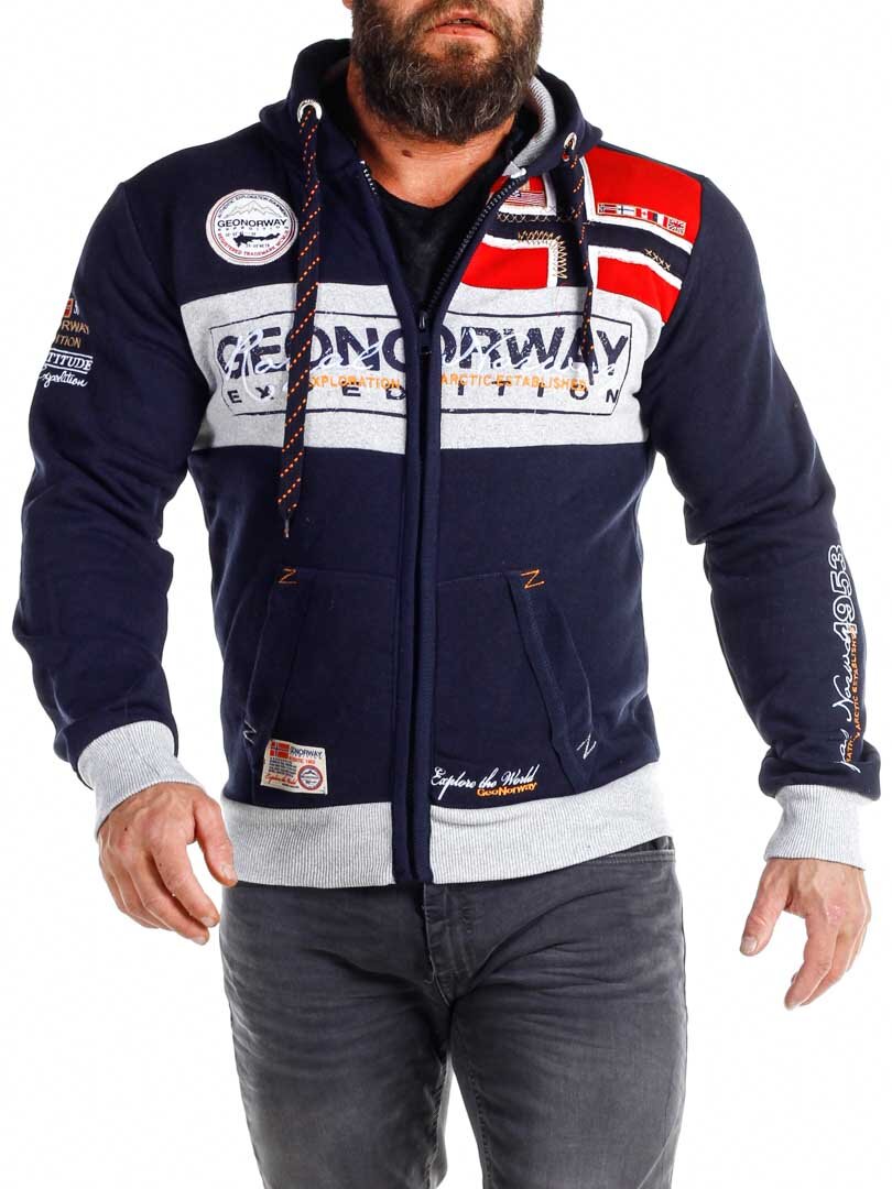 Mørkeblå hettegenser med glidelås fra Geo Norway