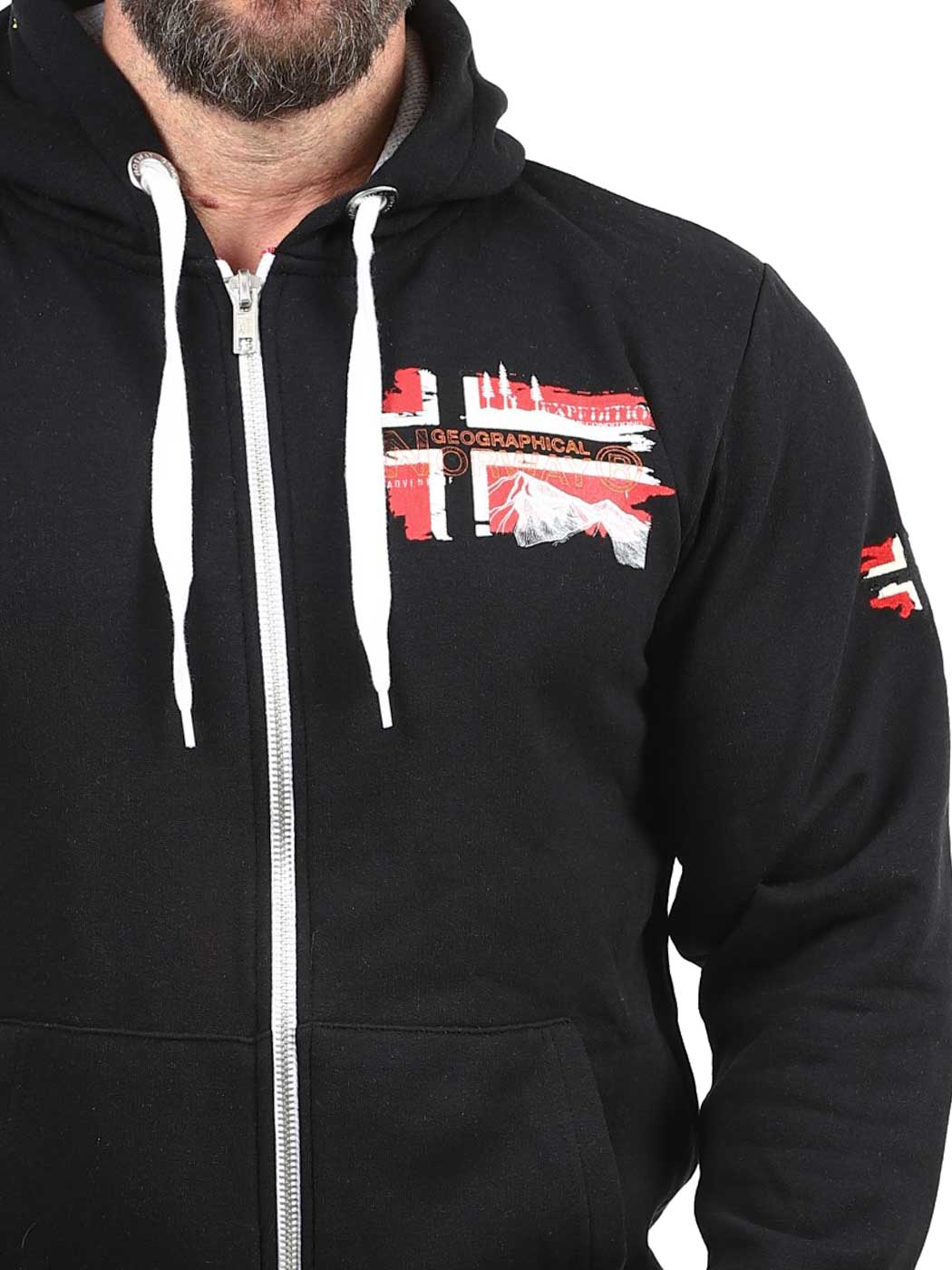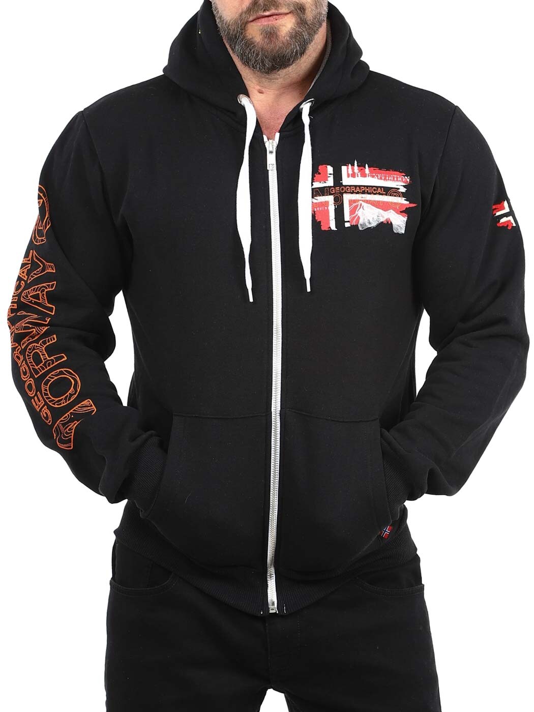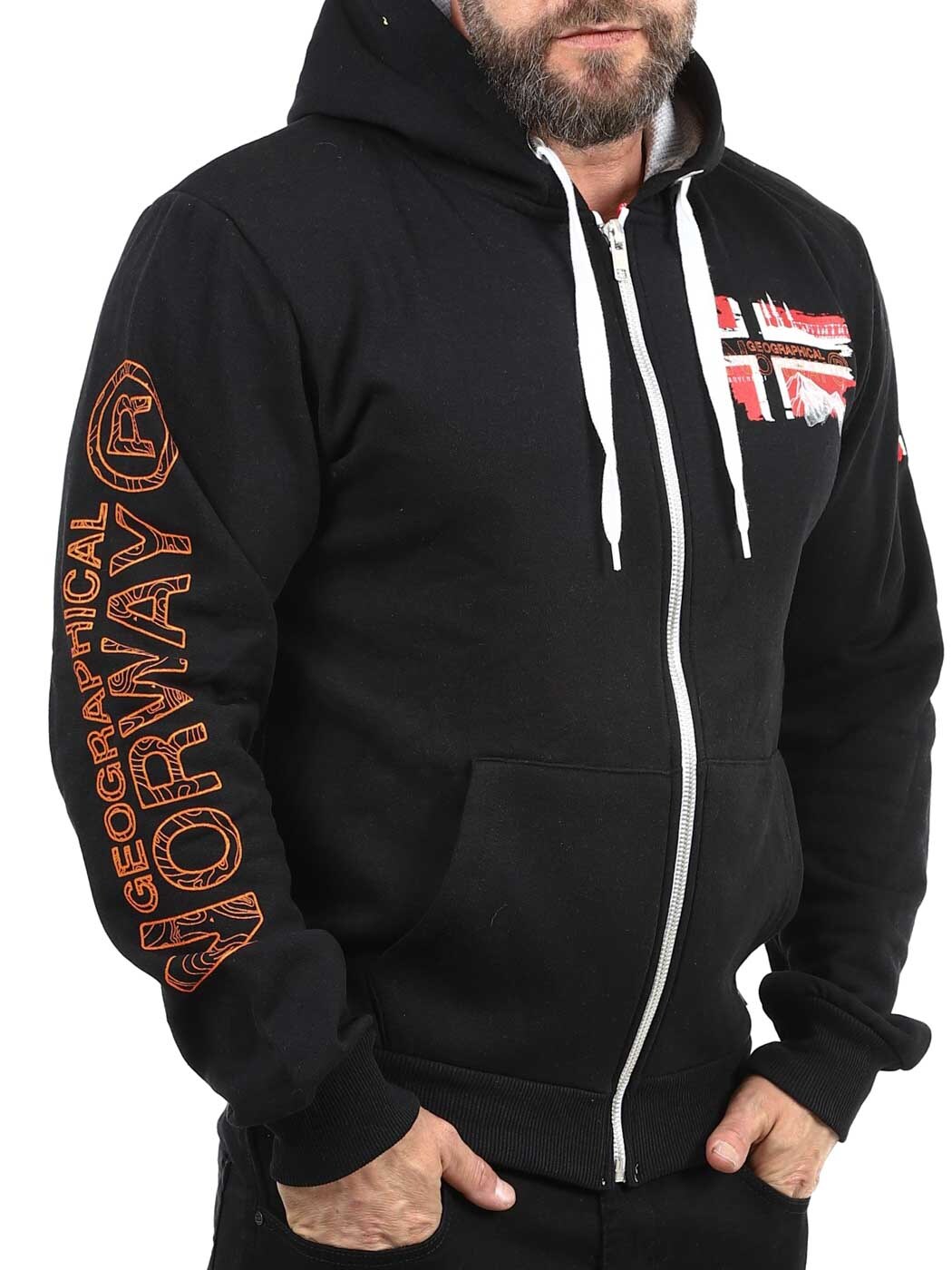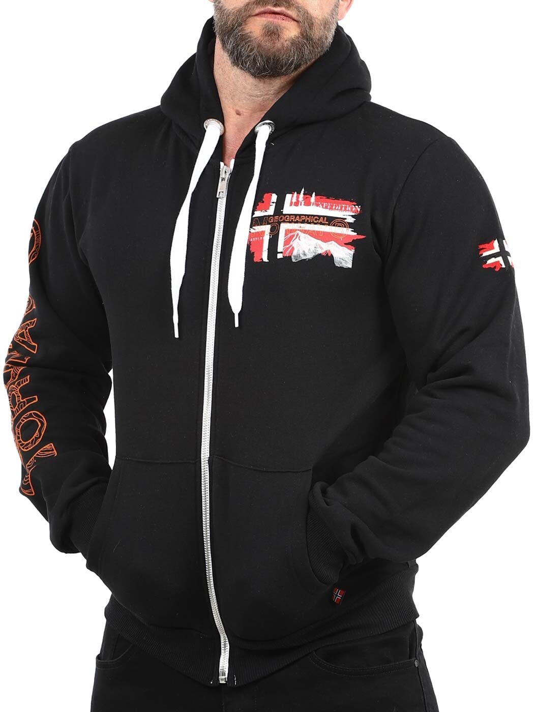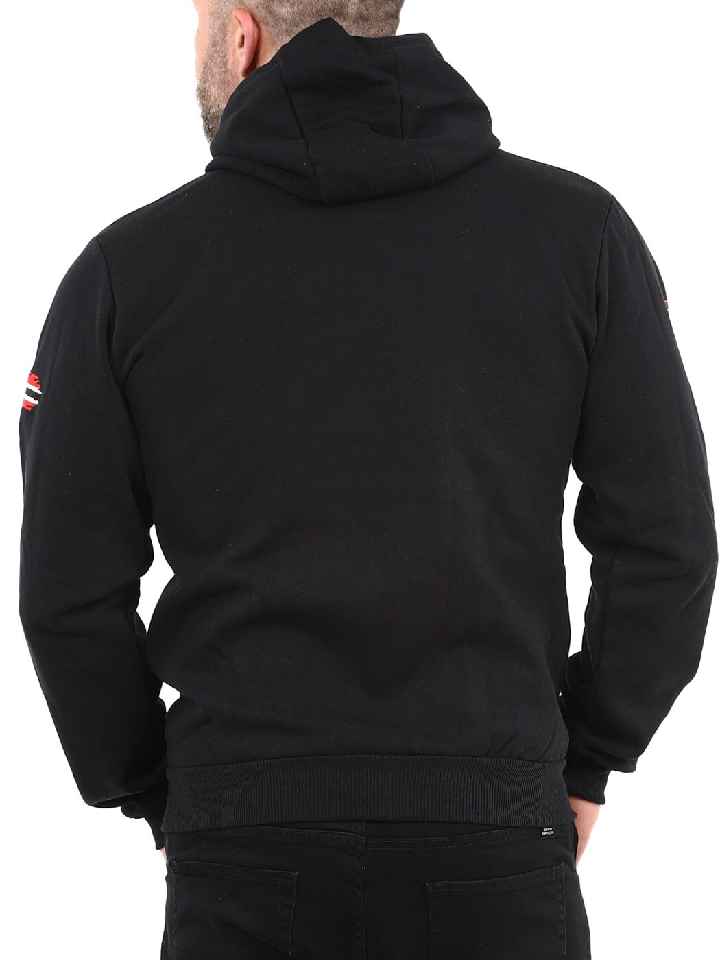 Denne hettegenseren med glidelås har et klassisk design, justerbar hette med snøring og ribbestrikkede mansjetter for en behagelig passform. Designet med flaggtrykk og logo på brystet og armen. Den har en børstet innside og to åpne lommer på magen.