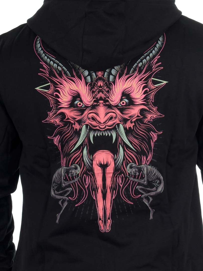 En solid genser designet med et stort trykk på ryggen, et mindre logotrykk på brystet og matchende motiver langs ermene. Den har hette med snøring og to åpne magelommer. Perfekt for deg som vil skille deg ut uten å ofre komfort.