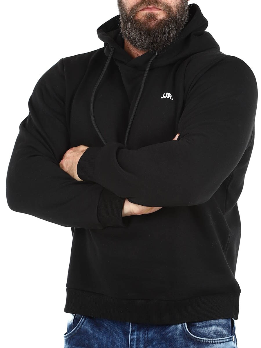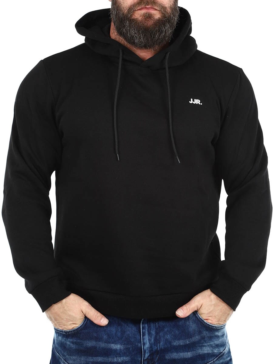 Stilig og komfortabel genser med en praktisk hette som kan justeres med en snor. Laget av mykt stoff med børstet finish på innsiden for optimal komfort og varme. Diskret JJR-logo på brystet gir en moderne touch. Ingen garderobe er komplett uten noen pålitelige basics!