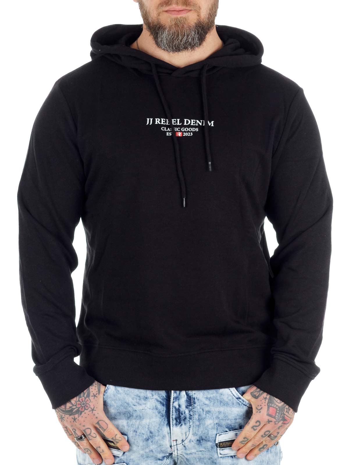 En stilren hoodie med logo på brystet. Laget av mykt og behagelig materiale med justerbar hette og ribbestrikkede mansjetter – perfekt til hverdags og avslappet streetwear.