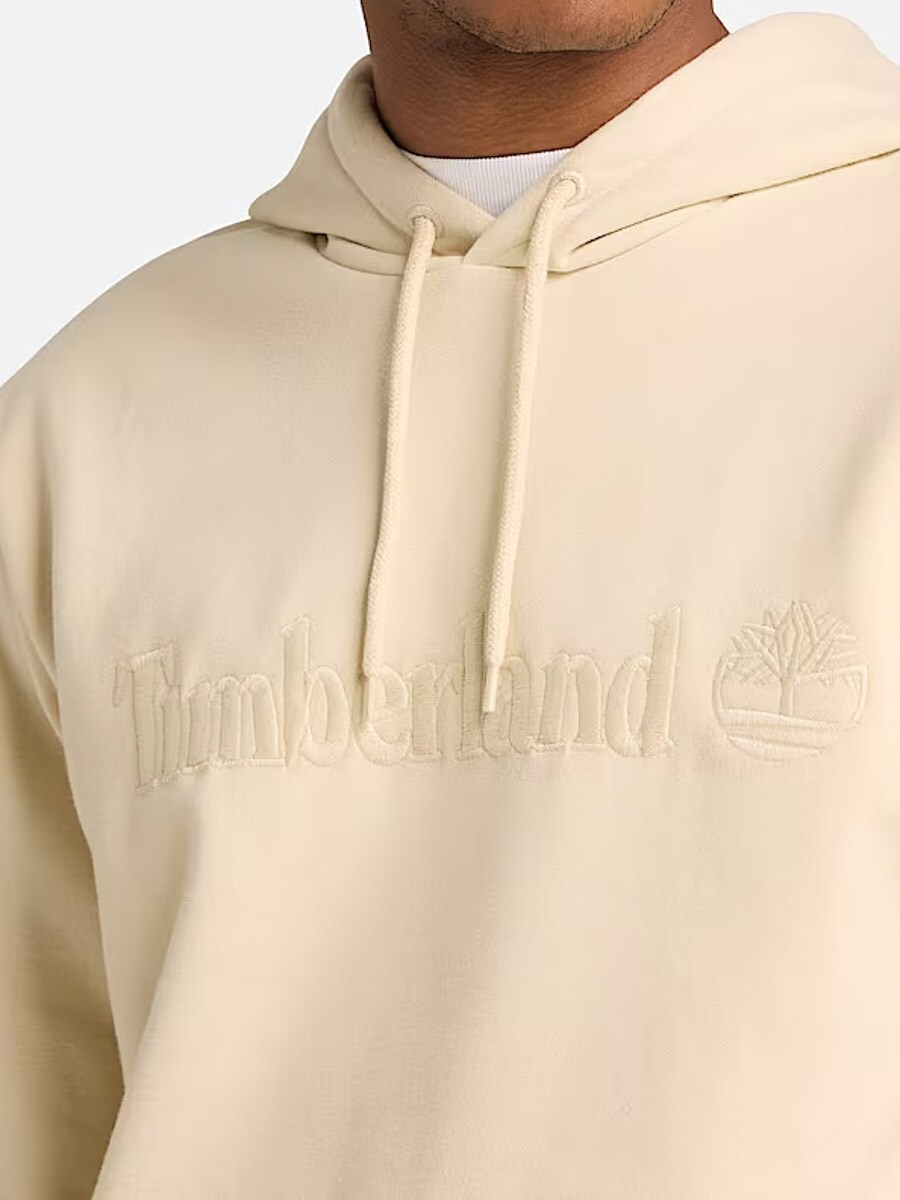 Hettegenser med brodert Timberland-logo og en klassisk kengurulomme. Den har normal passform og er laget i en bomullsblanding med bÞrstet innside. Perfekt til hverdags eller lag-pÄ-lag!