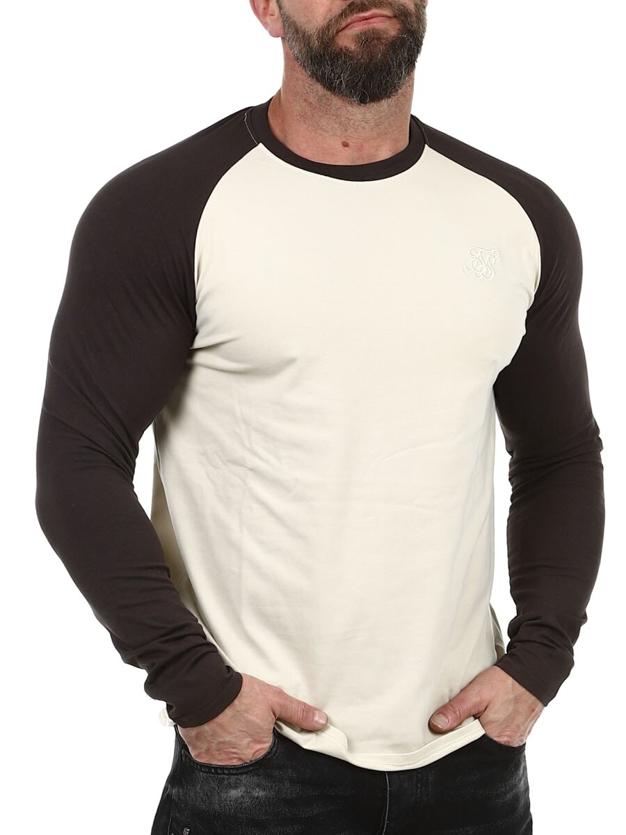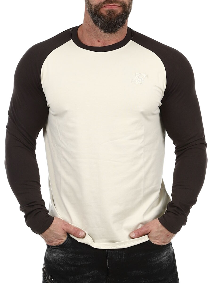 Beige longsleeve med brune ermer som gir plagget et unikt og trendy uttrykk. Genseren har rund hals med ribbet kant og en brodert logo på brystet som tilfører en eksklusiv detalj. Laget i mykt og stretchy materiale.