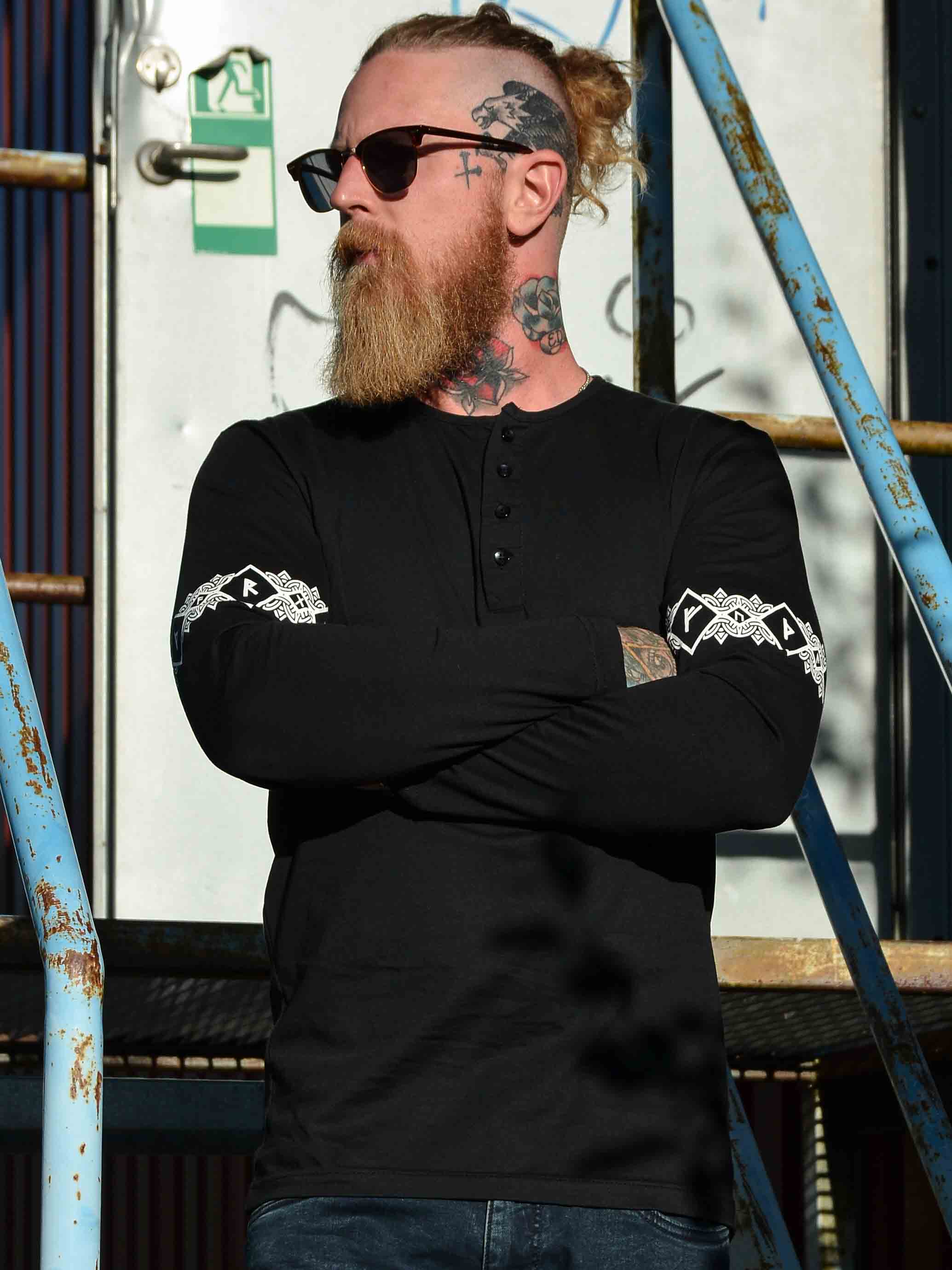 Svart longsleeve med vikinginspirert trykk – RD Ancestors Viking Collection