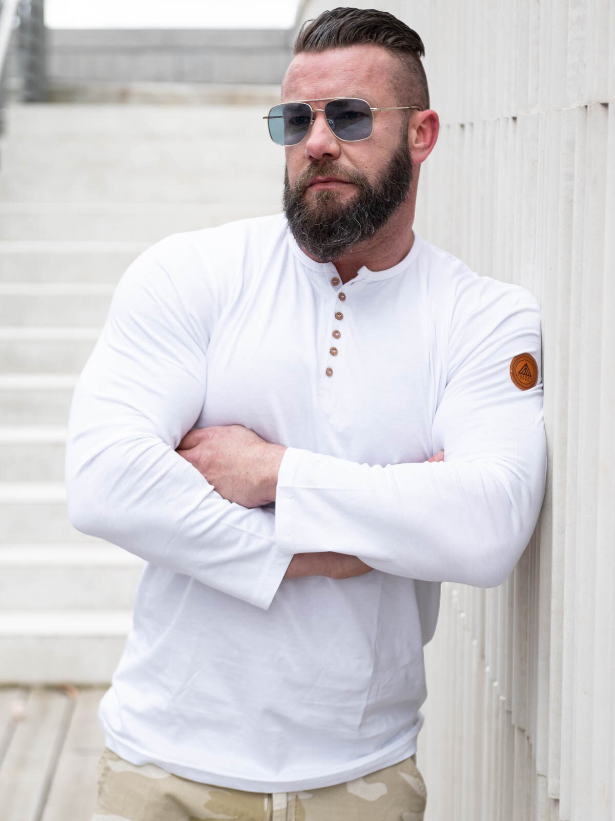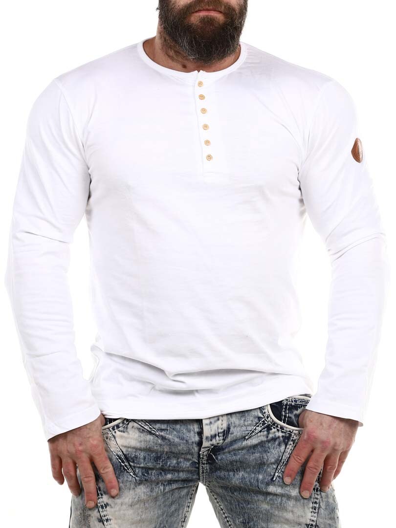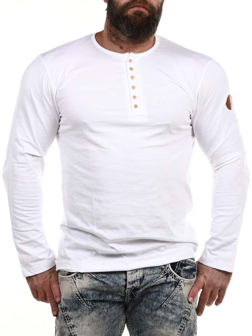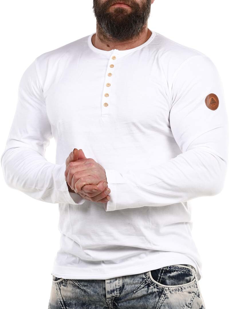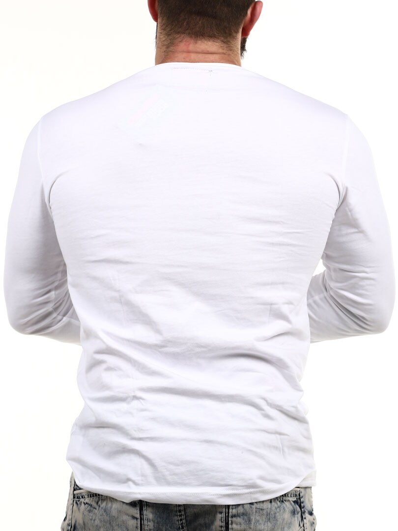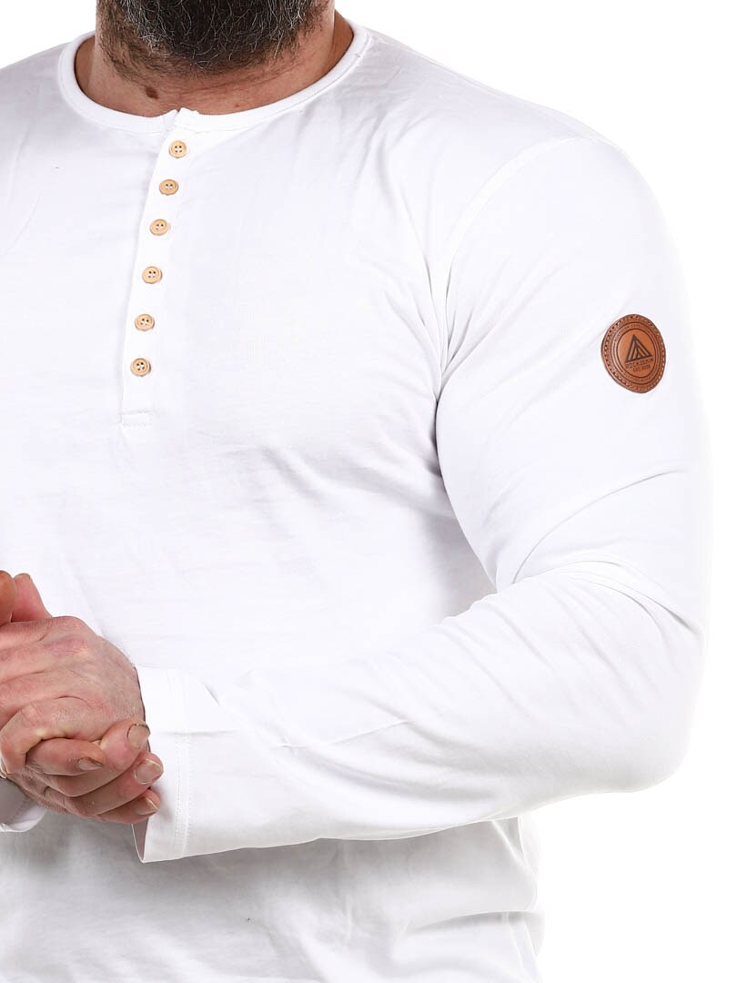 Her har vi produsert vår egen longsleeve i 100% bomull. Den har en klassisk passform og er designet med en knappeåpning foran. Imitert skinnlapp med logo på venstre erme.