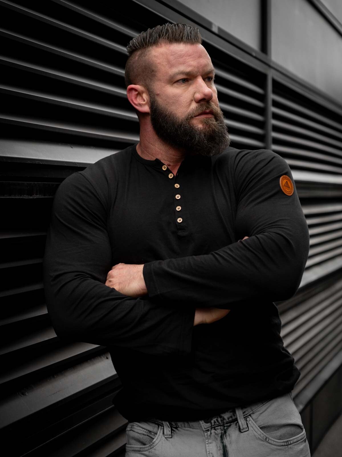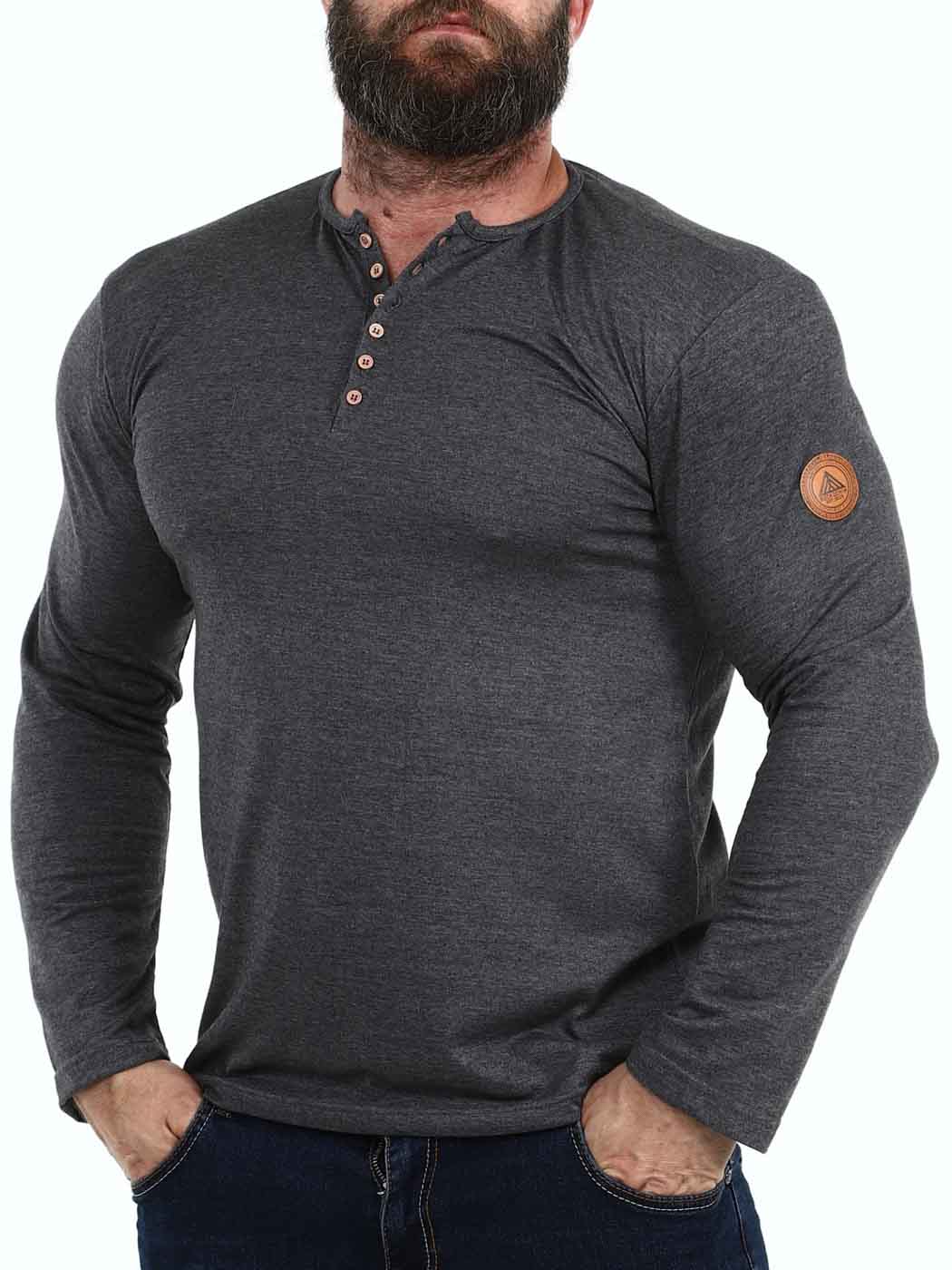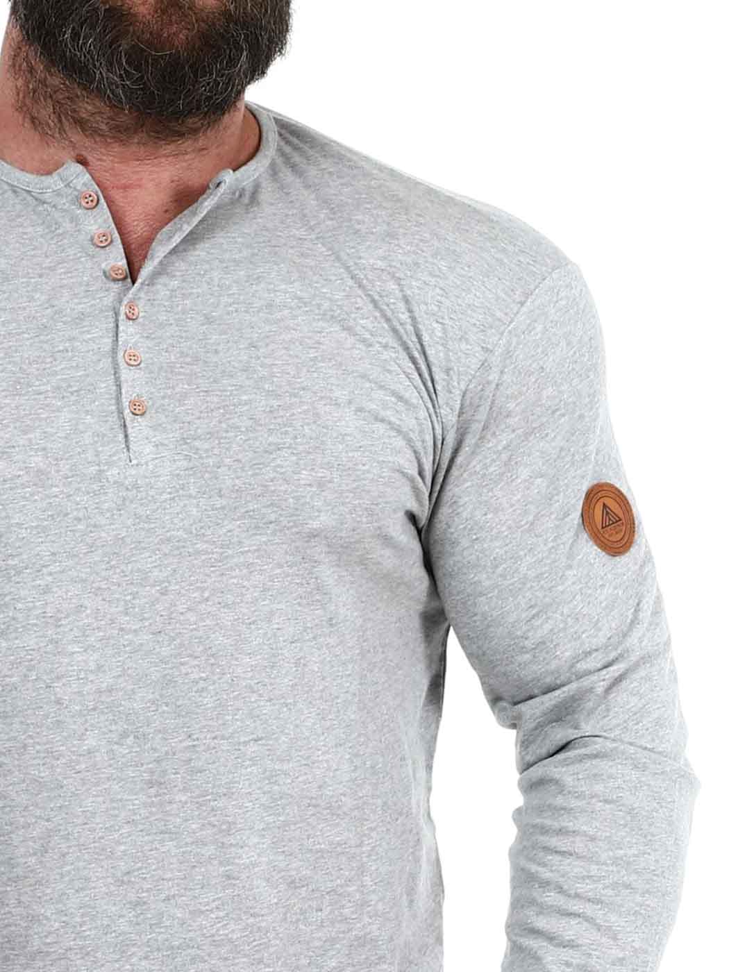 Her har vi produsert vår egen longsleeve i 100% bomull. Den har en klassisk passform og er designet med en knappeåpning foran. Imitert skinnlapp med logo på venstre erme.