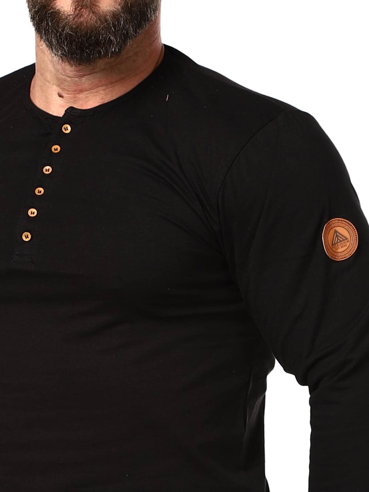 Her har vi produsert vår egen longsleeve i 100 % bomull. Den har en klassisk passform og er designet med en knappelukking foran. På venstre erme er det en lapp i imitert skinn med logo.