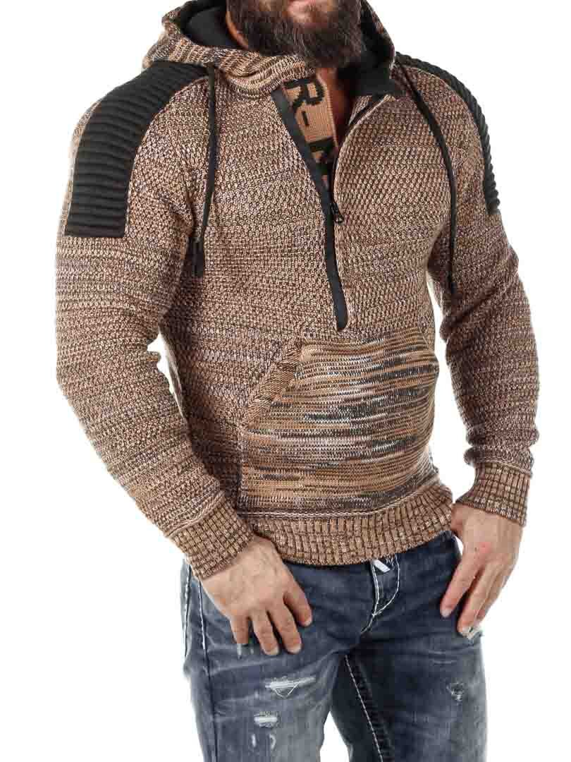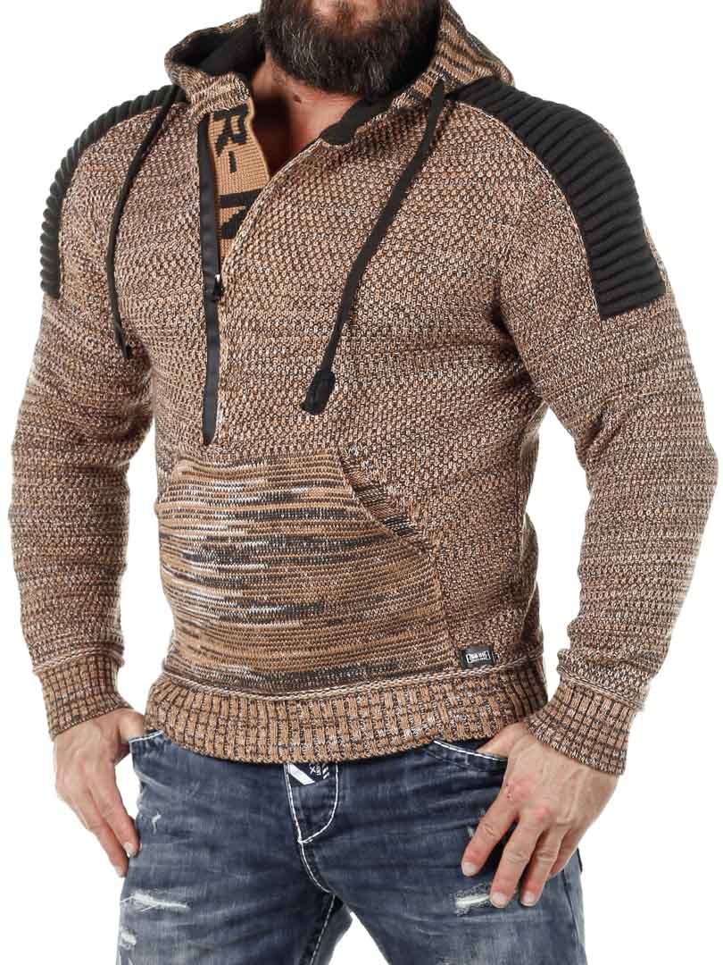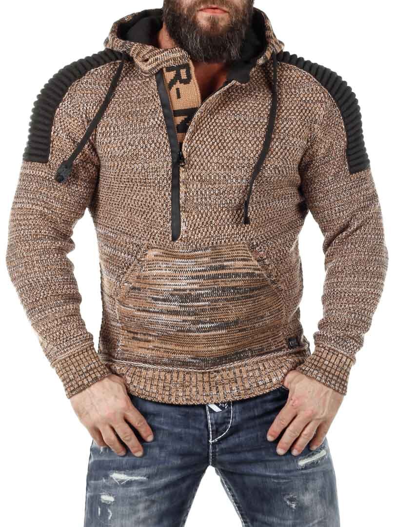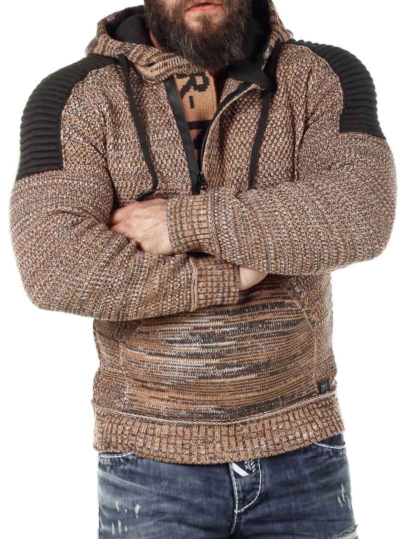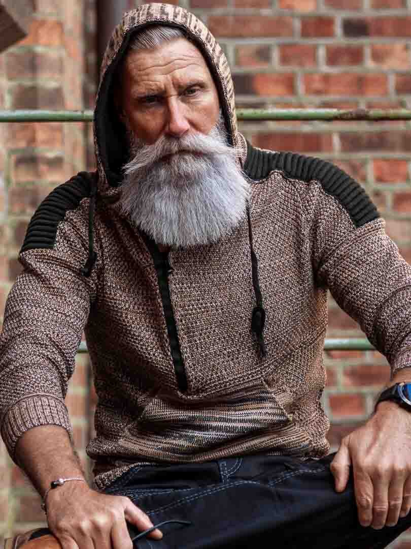 Hettegenser i strikket stretch med rips på sidene som gir et maskulint uttrykk. Unik glidelås foran som går ned over brystet og skjulte bokstaver i strikk som er synlige når glidelåsen er åpen. Tykk, komfortabel hette med snøring og hel lomme foran. Finnes i flere farger!
