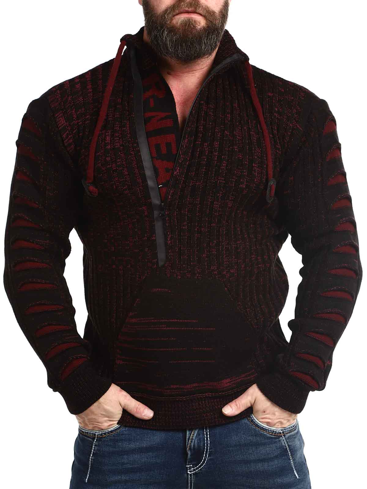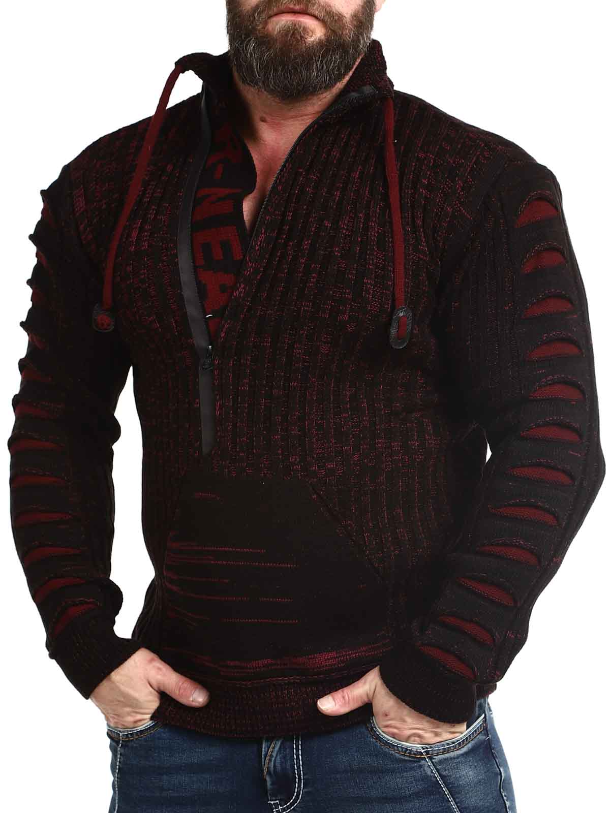 Høy hals med snøring og glidelås. Åpner du kragen, er en strikket tekst synlig som en fin detalj. Stor frontlomme og strikkede rifter i stoffet på ermene. Finnes i flere farger!
